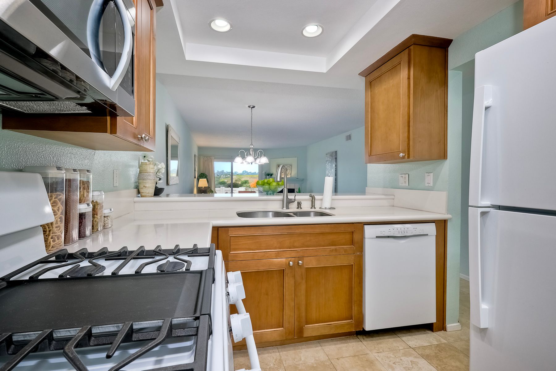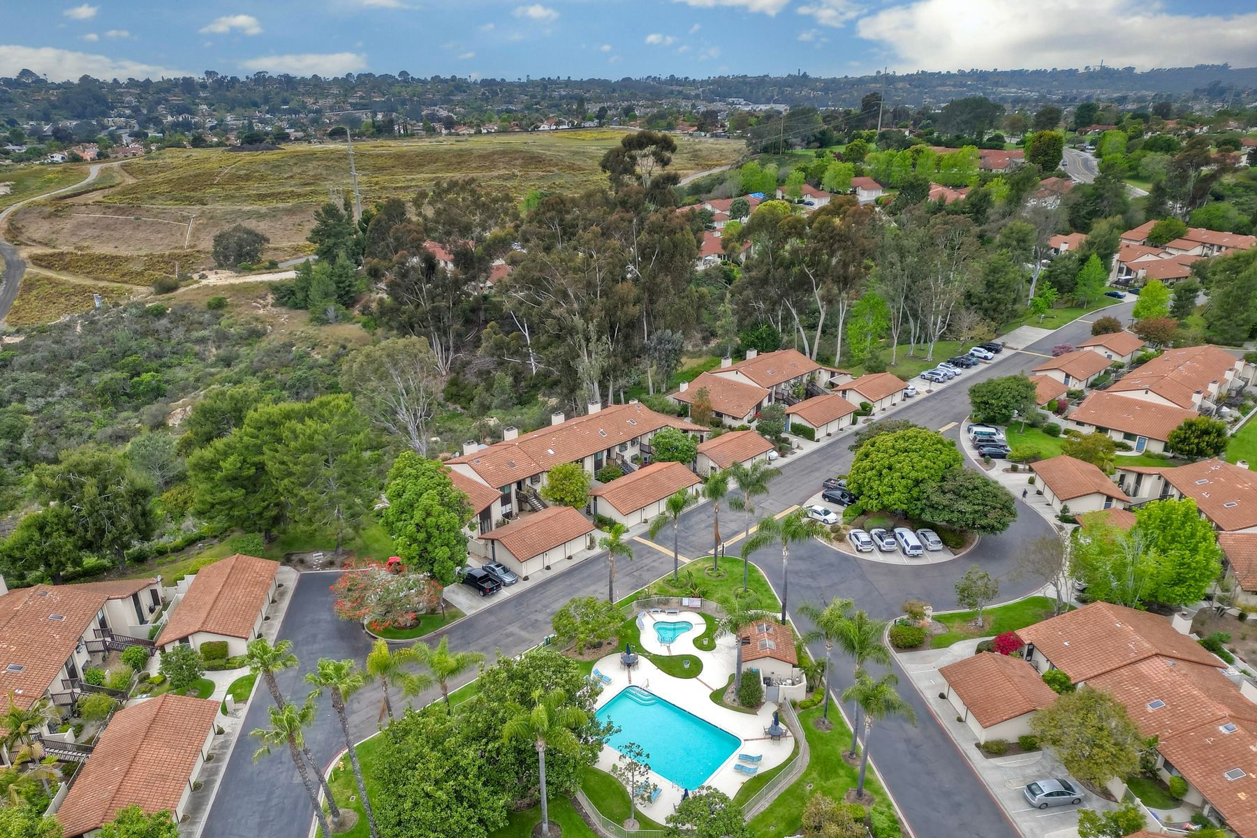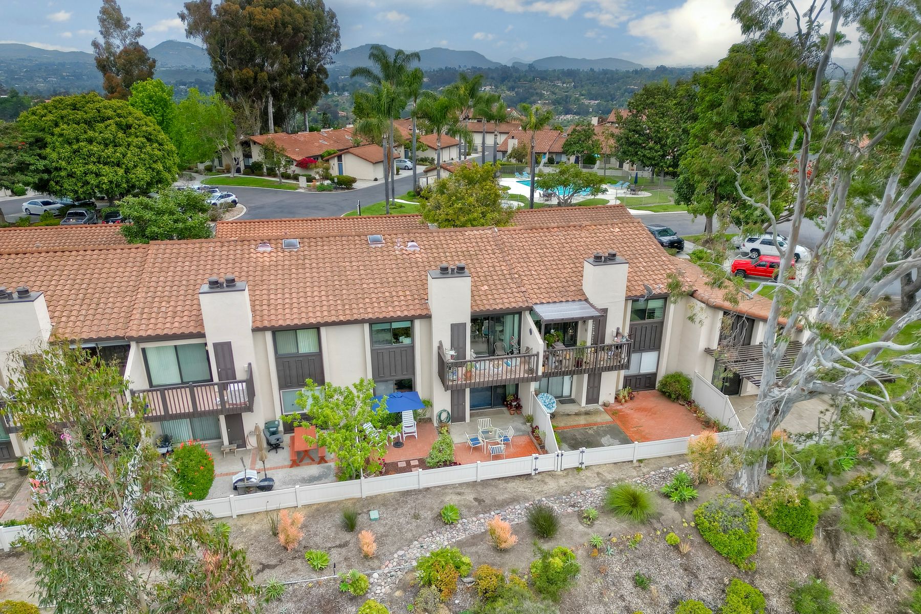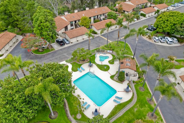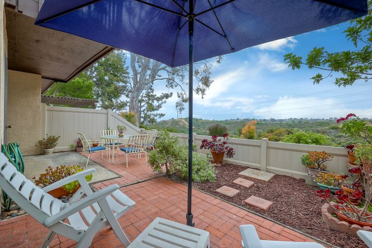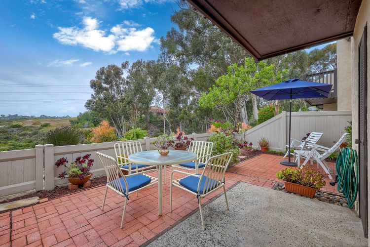 Encinitas GROUND-LEVEL condo features unobstructed sunset VIEWS over a canyon that is visible the moment you step through the front door ** Country View Collections is a well-cared for complex of one-story units nestled in lushly landscaped grounds ** 3 miles from the beach & just west of Village Park ** The primary bedroom offers views from bed & includes a large mirrored closet with private tub/shower ** 2nd bedroom is currently staged as an office ** Private Front & Back Patios ** A detached ONE-CAR garage is just steps from the entry ** UPGRADES --- custom pullout kitchen cabinet drawers, sink, extra built-in storage under bar counter & newer dual paned windows ** Residents enjoy resort-like amenities featuring 2 pools, jacuzzi's, 9 hole exec golf course, pickleball, bocce & HOA clubhouse ** SO CLOSE TO ALL --- Less than 3 miles to the Cardiff Farmer’s Market & downtown Encinitas' restaurants / nightlife ** NOTE --- All ages welcome (this is not 55+) ** Highly sought after SCHOOL District: ENCINITAS / SAN DIEGUITO