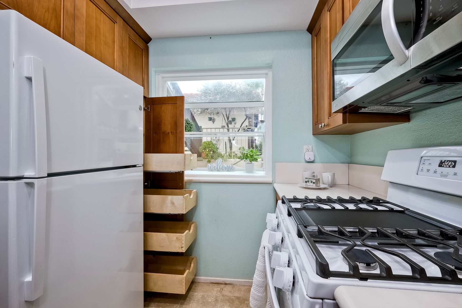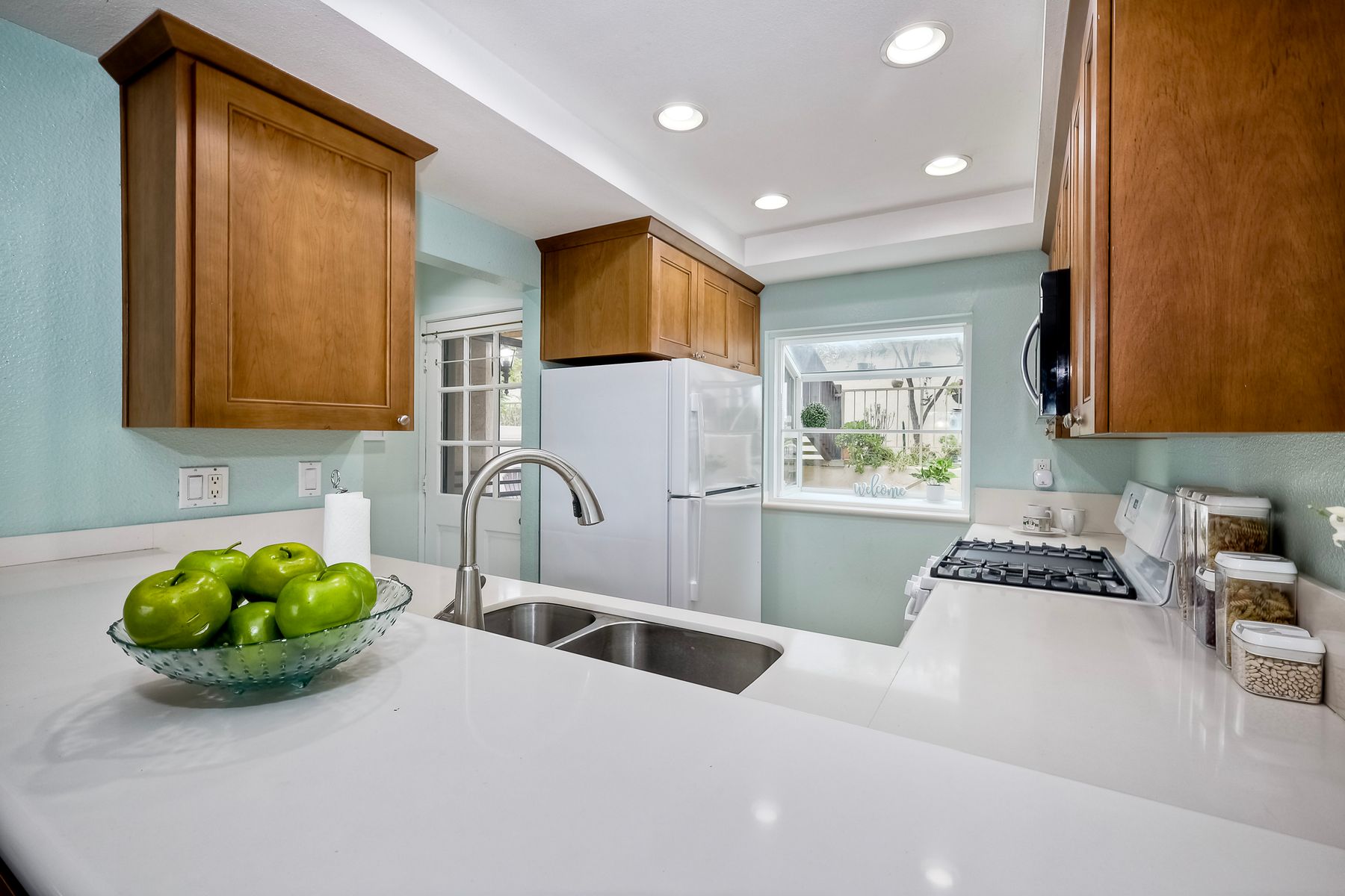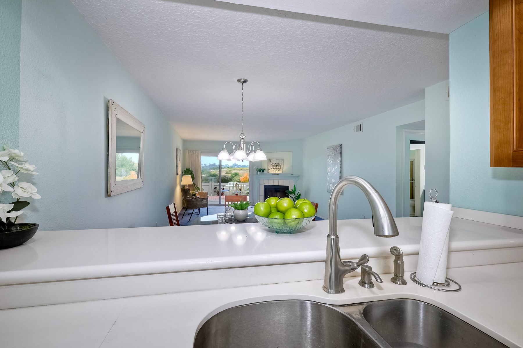 Encinitas GROUND-LEVEL condo features unobstructed sunset VIEWS over a canyon that is visible the moment you step through the front door ** Country View Collections is a well-cared for complex of one-story units nestled in lushly landscaped grounds ** 3 miles from the beach & just west of Village Park ** The primary bedroom offers views from bed & includes a large mirrored closet with private tub/shower ** 2nd bedroom is currently staged as an office ** Private Front & Back Patios ** A detached ONE-CAR garage is just steps from the entry ** UPGRADES --- custom pullout kitchen cabinet drawers, sink, extra built-in storage under bar counter & newer dual paned windows ** Residents enjoy resort-like amenities featuring 2 pools, jacuzzi's, 9 hole exec golf course, pickleball, bocce & HOA clubhouse ** SO CLOSE TO ALL --- Less than 3 miles to the Cardiff Farmer’s Market & downtown Encinitas' restaurants / nightlife ** NOTE --- All ages welcome (this is not 55+) ** Highly sought after SCHOOL District: ENCINITAS / SAN DIEGUITO