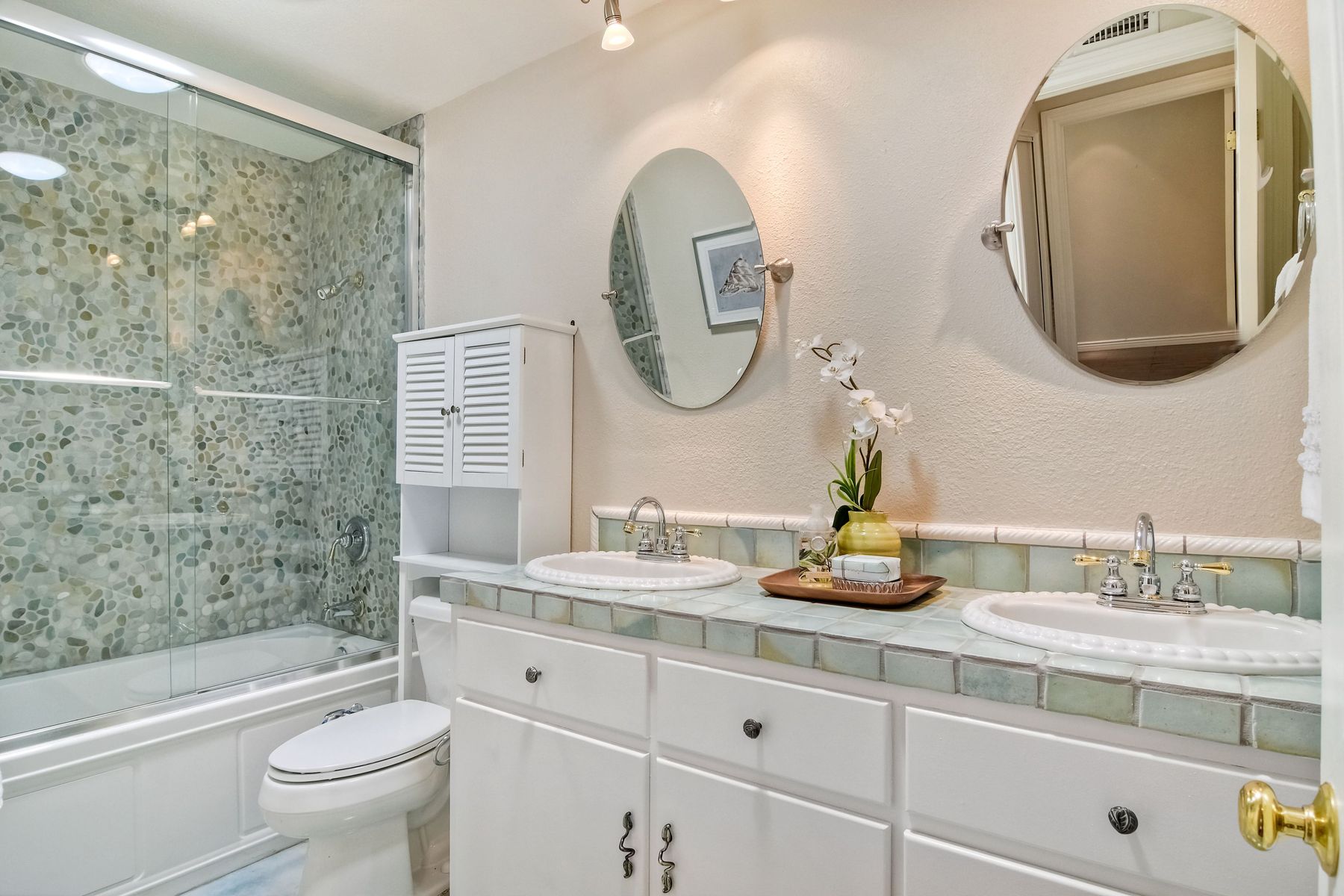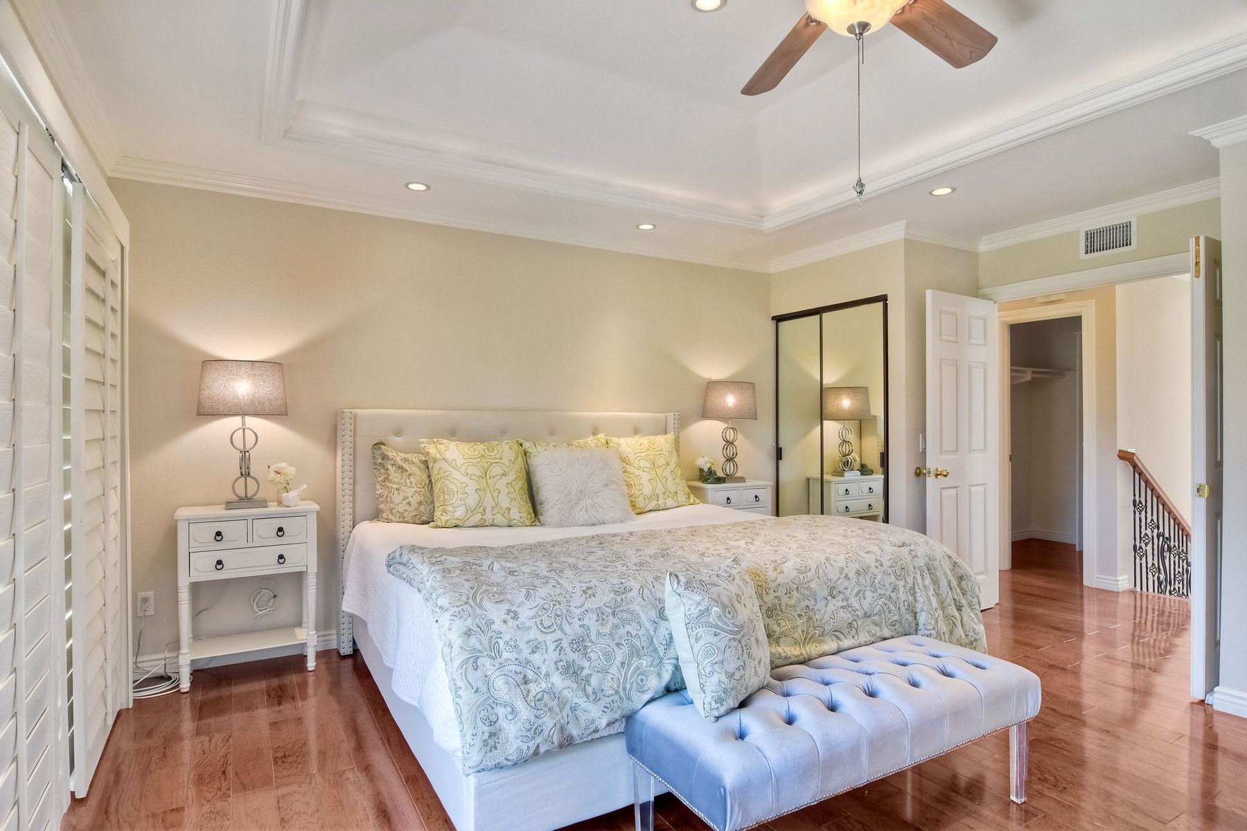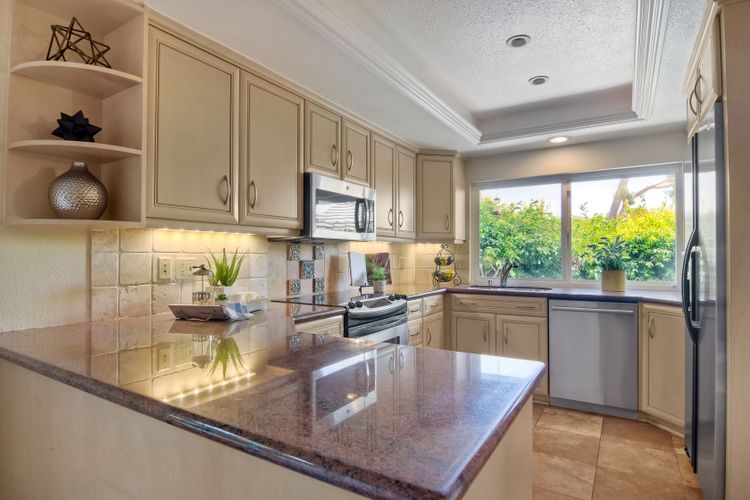 Resort style living in this lovely upgraded twinhome in Mt. La Jolla. This home offers a nice peaceful location within the complex, on a cul-de-sac, and has a peak ocean view! The interior offers many custom upgrades, including updated kitchen and baths, custom wine closet with decorative metal door, nice wood flooring, French panel doors, crown molding, plantation shutters and more! The HOA includes so much! Move in and you never have to worry - just enjoy resort style living! The following is included in the monthly HOA: Cable TV (Showtime/HBO/DVRBox), water, exterior building maintenance (including roofs & exterior painting), fire & earthquake insurance, termite, landscaping & street maintenance. There are so many wonderful amenities: 4 USLTA, night lit hardcourt specification tennis courts, multiple pools and spas, 7000SF clubhouse with two party rooms, state of the art fitness center, putting green, on site manager, maintenance and gardeners, walking trails and more!