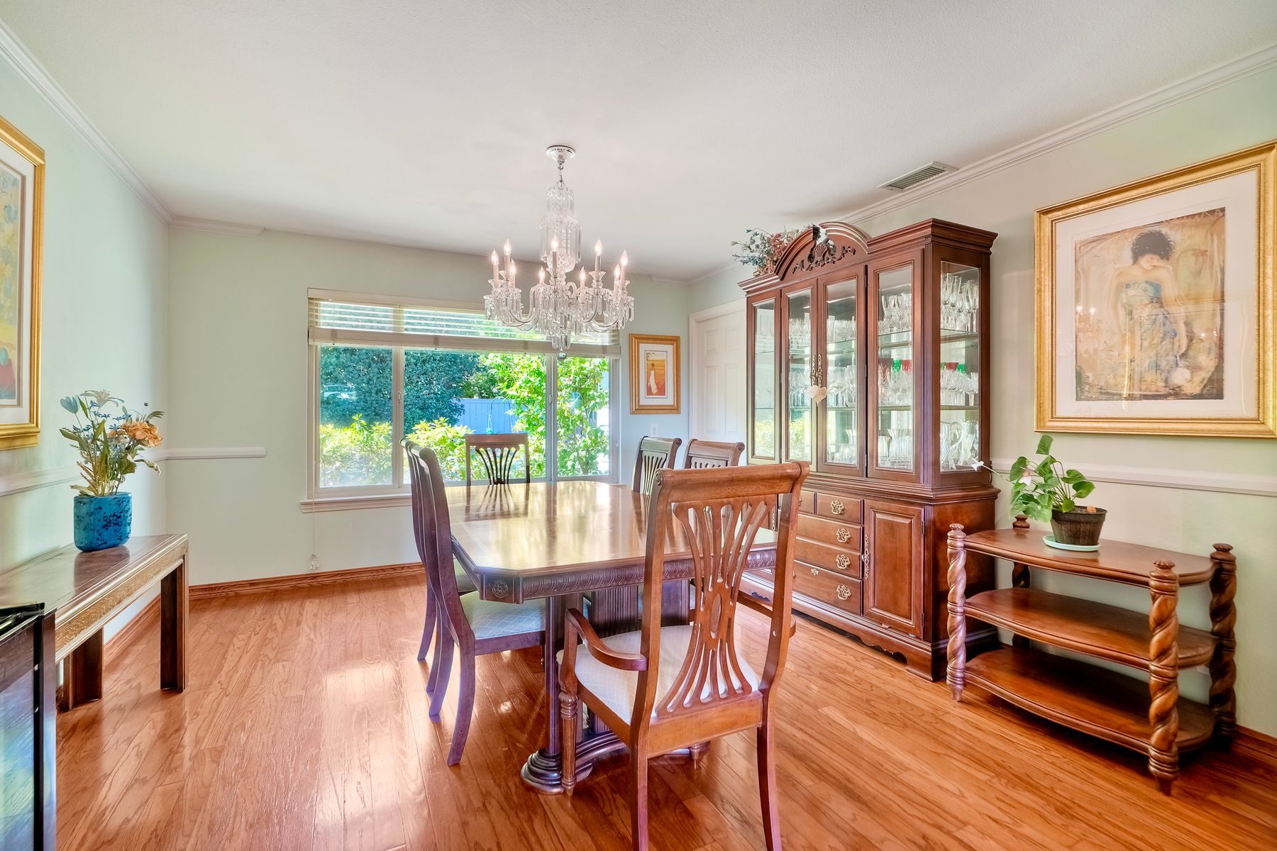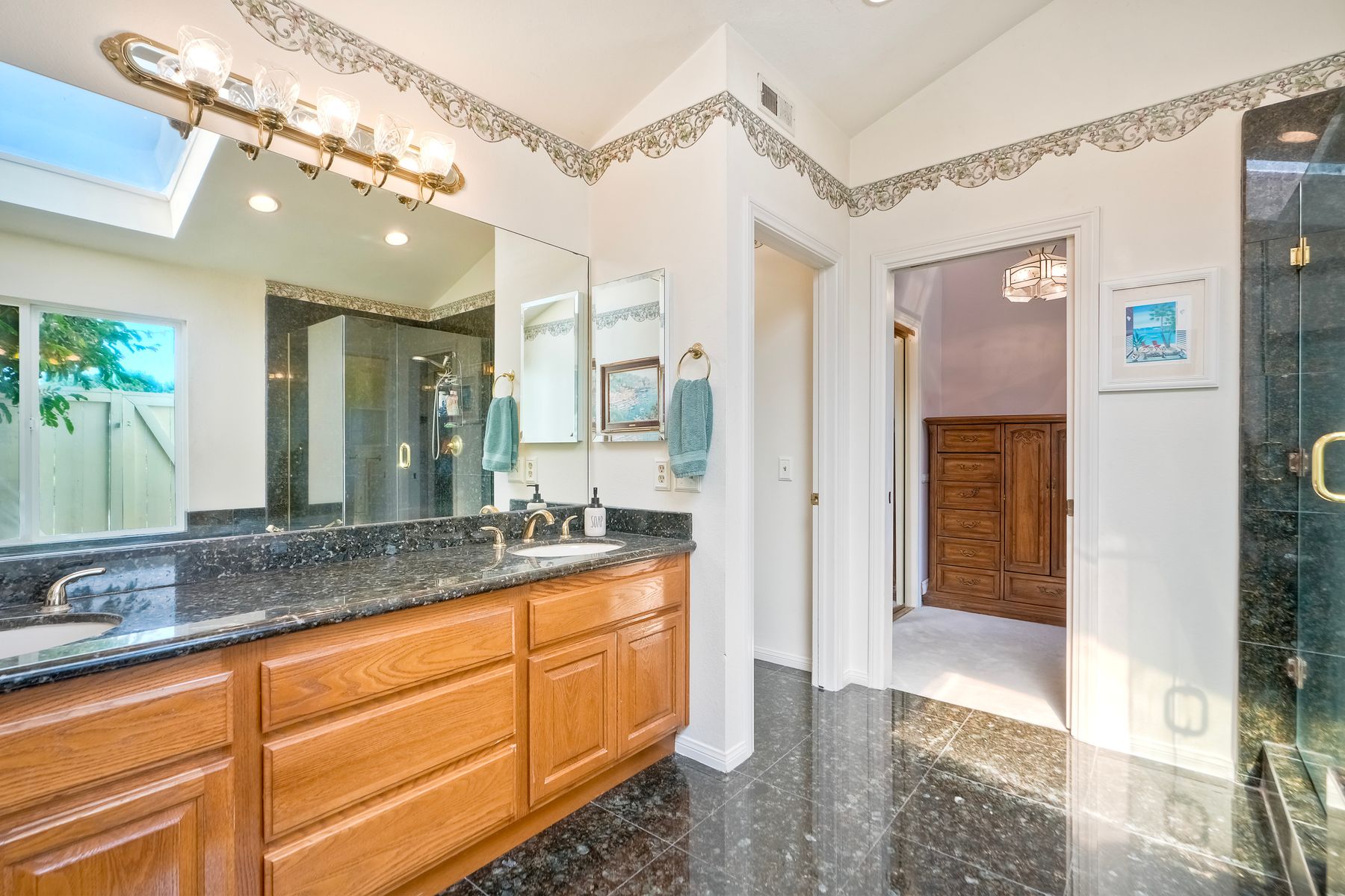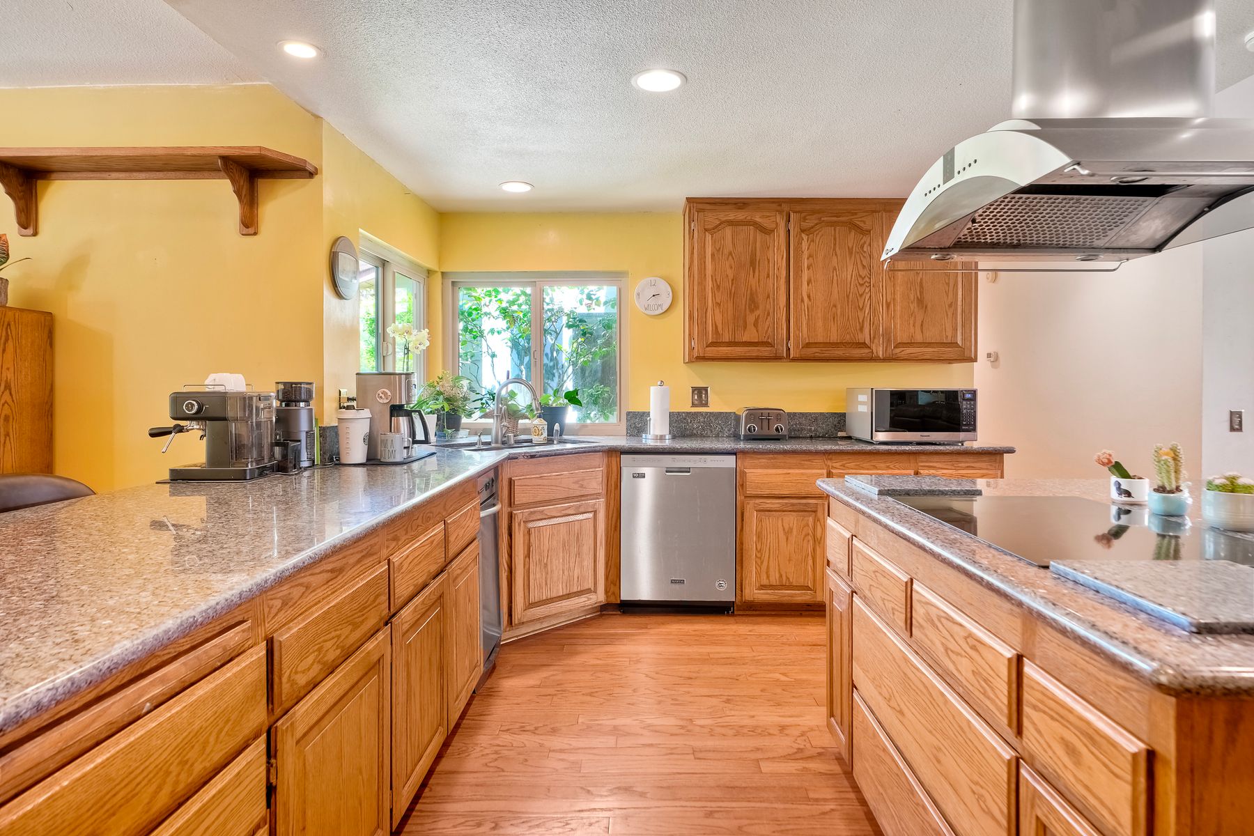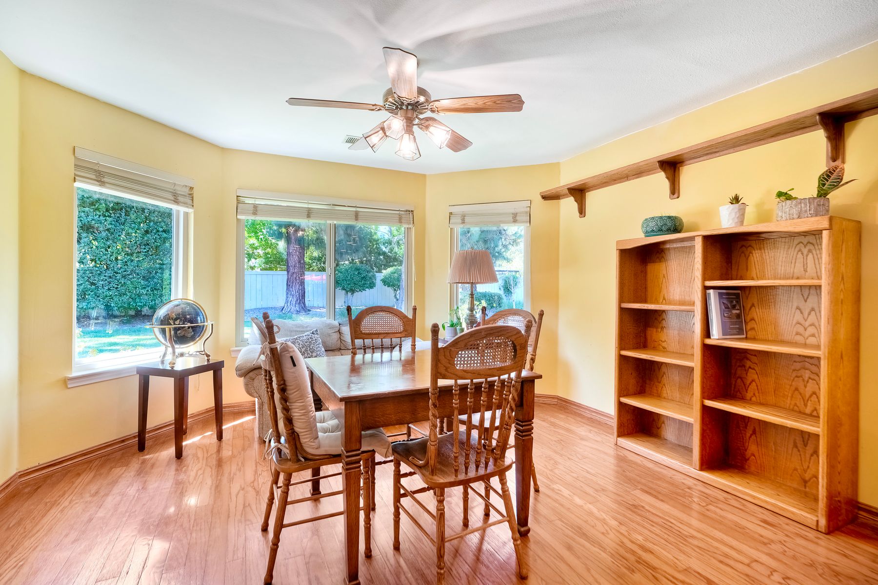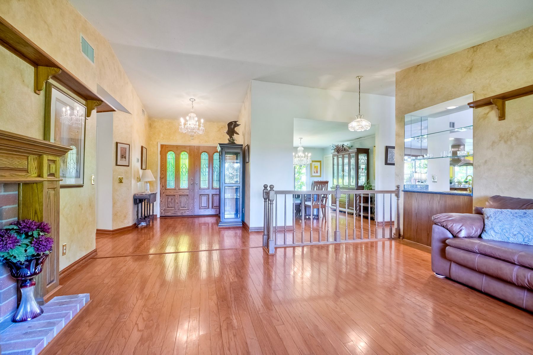 Discover functionality and comfort in this 5-bedroom, 3.5-bath single-story residence, boasting 3,510 square feet of living space. A double-door entry with leaded glass windows welcomes you with natural light and sets a warm, inviting tone. Wood flooring guides you through a thoughtfully designed floorplan with amazing potential to make it your own home. The entry hall separates the bedroom wing from the living and entertaining areas. The spacious living room with fireplace is open to the formal dining room, perfect for gatherings. The adjacent family room with a second fireplace and French doors open to the beautifully landscaped backyard. A versatile bonus room with built-in bookcases offers possibilities as a game room, library, playroom, or media room. The kitchen features stainless steel appliances, a center island with cooktop, ample cabinetry for storage items, a peninsula with bar stool seating options and a spacious dining nook with a bay window overlooking the landscaped yard. The bedroom wing of the home includes four bedrooms sharing two full bathrooms, strategically placed for privacy and convenience. The primary suite features vaulted ceilings, a third fireplace, direct backyard access, a spacious walk-in closet, and an ensuite bathroom with a skylight, dual-sink vanity, glass-enclosed shower, and a jetted tub framed by large windows showcasing a tranquil atrium view with amazing landscape potential. A dedicated laundry room at the opposite end of the hallway offers a window for natural light, a sink cabinet and two storage closets. A convenient half bathroom near the garage entry provides easy access to the backyard’s pool area. Step outside to a backyard perfect for entertaining, complete with an inground pool featuring a slide, a built-in Viking grill BBQ station, multiple seating areas, lamp posts with electrical outlets for evening ambiance, a gas fire pit, beautiful landscaping, a garden area, several fruit trees, and two storage sheds. The gated driveway creates both curb appeal and privacy. This exceptional single-story home offers a desirable floor plan with versatile spaces making it a rare gem for you to make your mark. Great floorplan and lot for entertaining and everyday living.