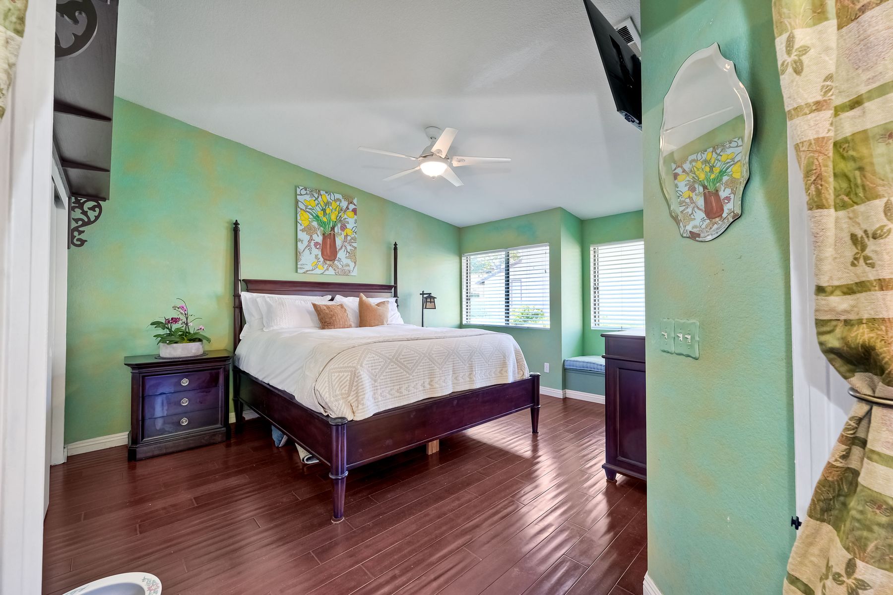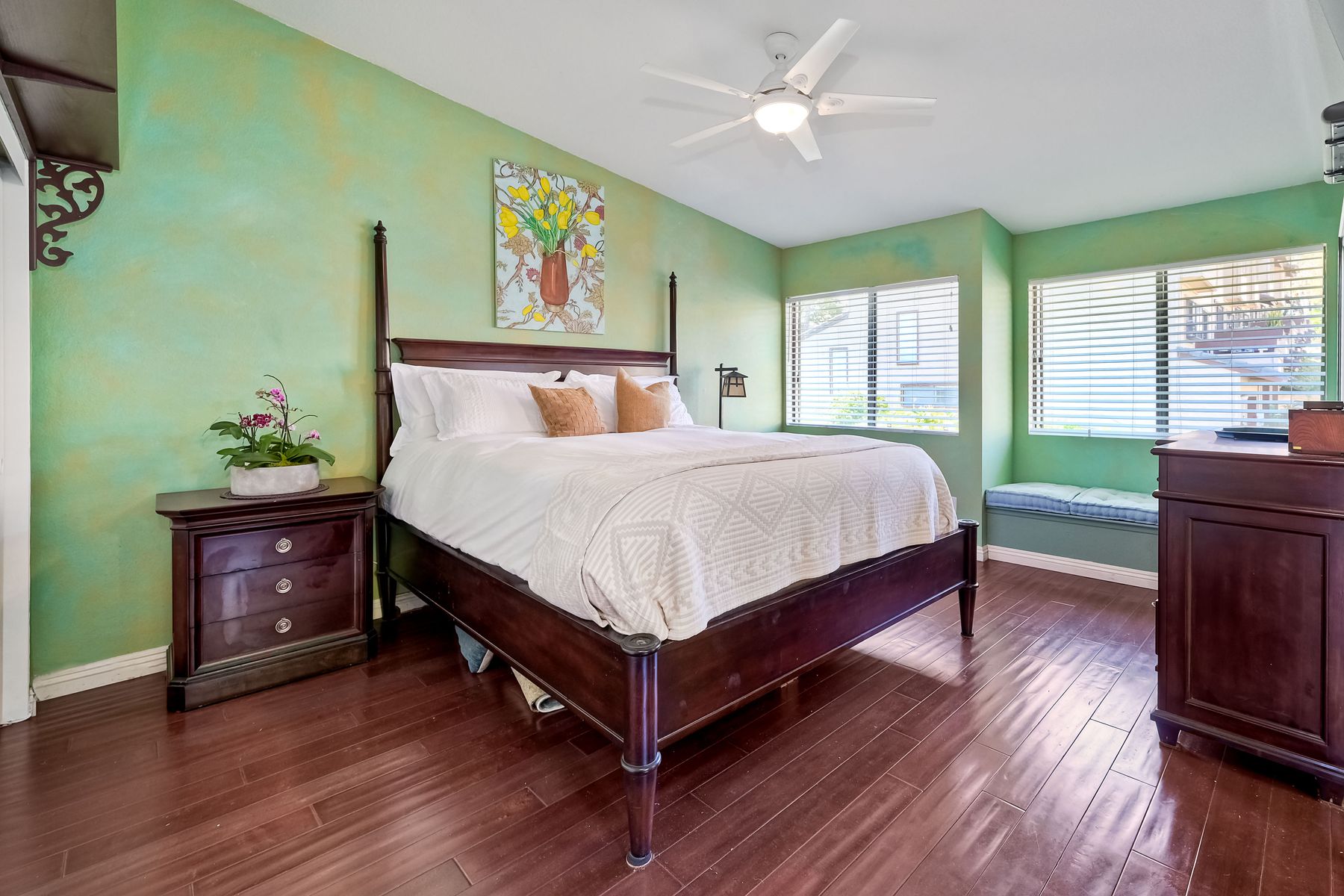 Spectacular opportunity to live in a turnkey, tastefully appointed end unit townhome nestled into the Woodlands community of Fire Mountain! Whether sipping coffee on the balcony, enjoying an adult beverage at the magical outdoor patio or relaxing inside - you will feel as though you've been whisked away to a Tuscan villa! Amazing Cherrywood flooring throughout with tile in bathrooms and kitchen, granite counters and custom faux painted walls are reminiscent of what you might find that Paris flat you've always dreamed of! Be assured -you will be more impressed in person that you are by the professionally taken photos. Every room has been thoughtfully painted to create warmth and an ambiance that wraps itself around you like a blanket! Add to that: a furnace that was replaced 2 years ago, a 3-yr old water heater and an attached 2-car garage with plenty of storage. The Woodlands community is within walking distance of Trader Joe's, Buffalo WW's, World Market, several coffee shops, multiple restaurants, banks, dry cleaners, The Shoppes at Carlsbad, not to mention - a 15-minute drive to either the bustling South O'Side community OR downtown Carlsbad. When it comes to location - you could hit the jackpot both with this home and the Woodlands location! HOA dues cover: Pool, trash, water, common area maintenance, exterior building maintenance, roof, termite inspection, exterior termite treatment.