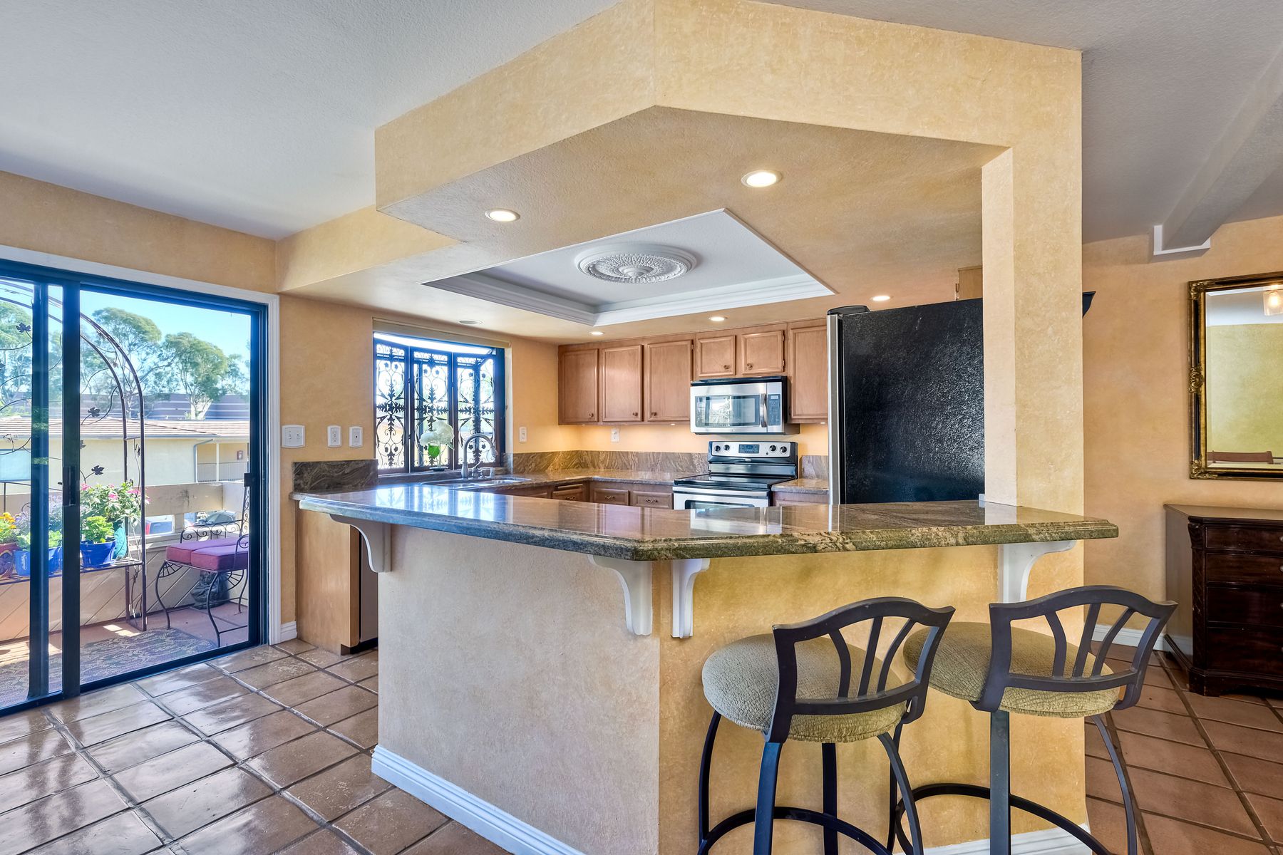 Balcony, Ceiling Fan(s), Granite Counters, High Ceilings
