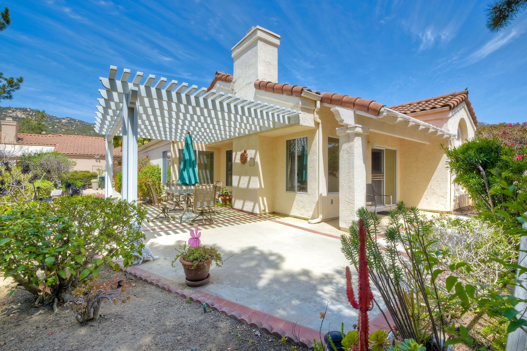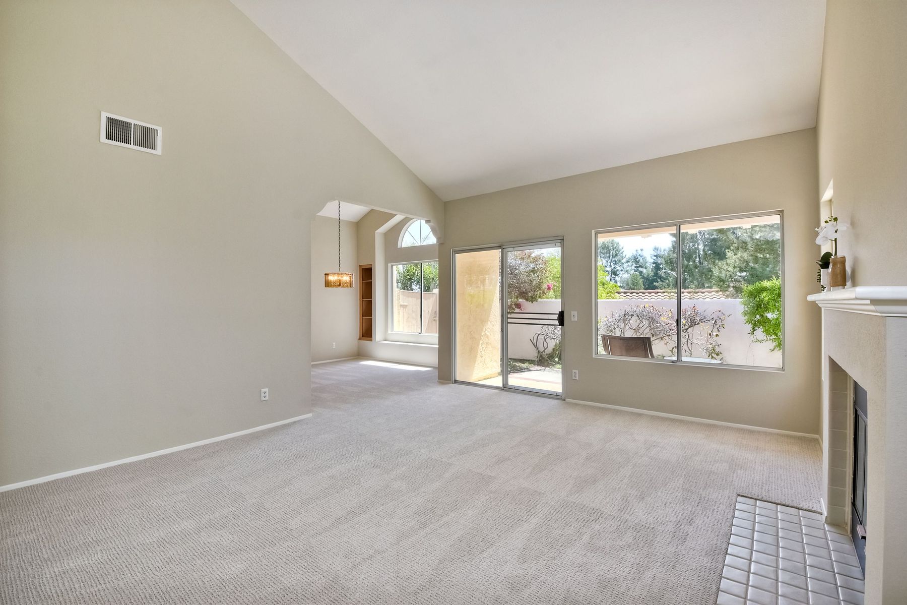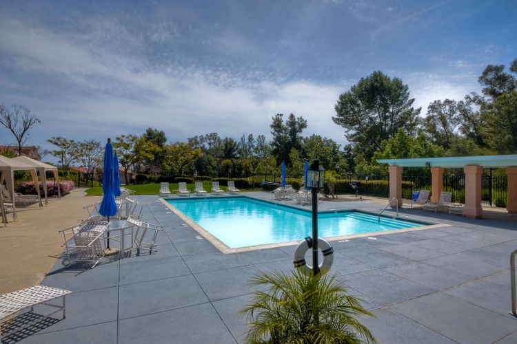 Charming 1 story home located in the peaceful community of Woodridge! ALL NEW paint and carpet throughout! Newer oven, neutral granite countertops and more. (New microwave coming next week) Light and bright home with lots of sun and plenty of windows. Dedicated dining room, adjacent to the kitchen. High ceilings in master and living room. Very large backyard, with pergola covered private patio area that's perfect for dining and entertaining outside, with amazing views to open space and mountains behind! Cozy fireplace in living room, A/C, mirrored closet doors in 2nd bedroom, and huge walk in closet in master. 2 car attached garage too. Community pool right across the street! HOA covers front exterior maintenance and landscaping. This home is ready for a new owner!
