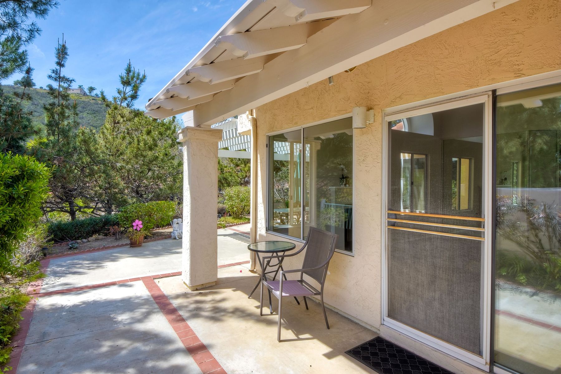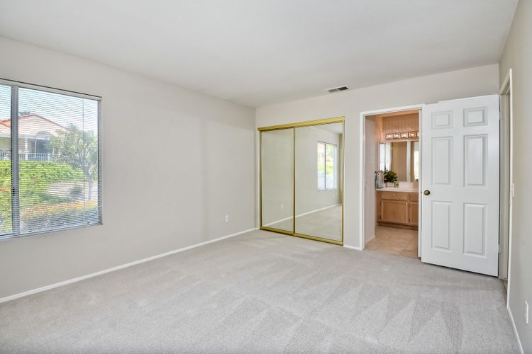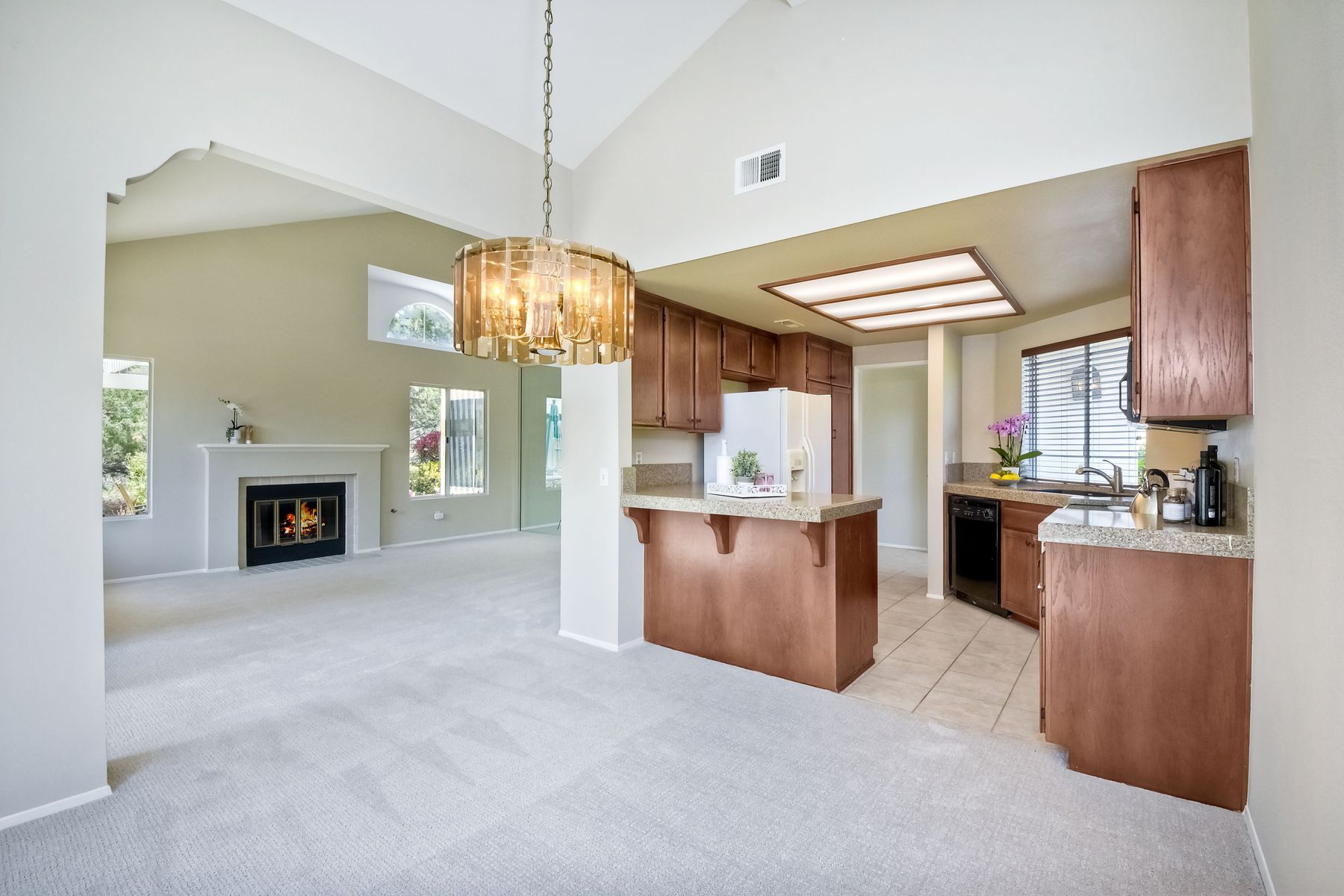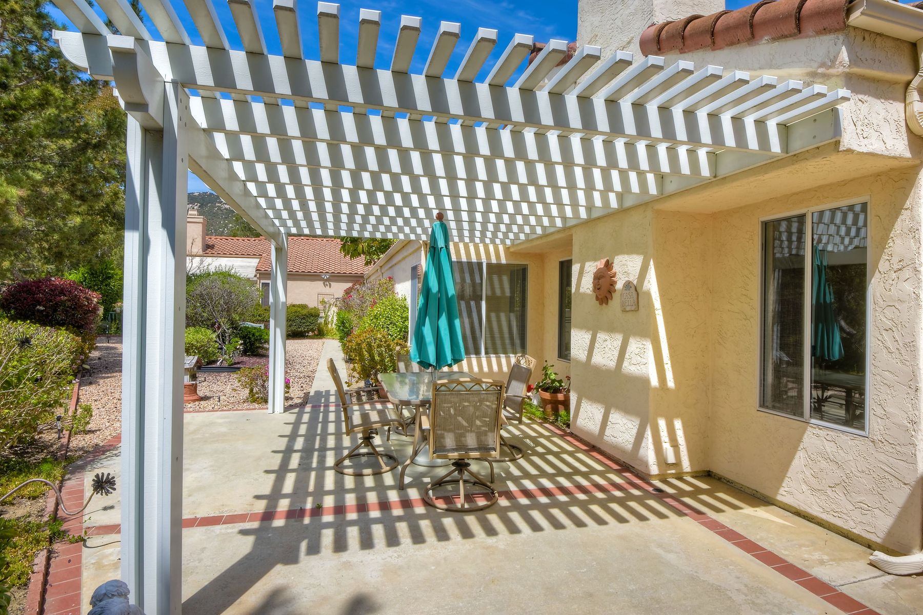 Charming 1 story home located in the peaceful community of Woodridge! ALL NEW paint and carpet throughout! Newer oven, neutral granite countertops and more. (New microwave coming next week) Light and bright home with lots of sun and plenty of windows. Dedicated dining room, adjacent to the kitchen. High ceilings in master and living room. Very large backyard, with pergola covered private patio area that's perfect for dining and entertaining outside, with amazing views to open space and mountains behind! Cozy fireplace in living room, A/C, mirrored closet doors in 2nd bedroom, and huge walk in closet in master. 2 car attached garage too. Community pool right across the street! HOA covers front exterior maintenance and landscaping. This home is ready for a new owner!