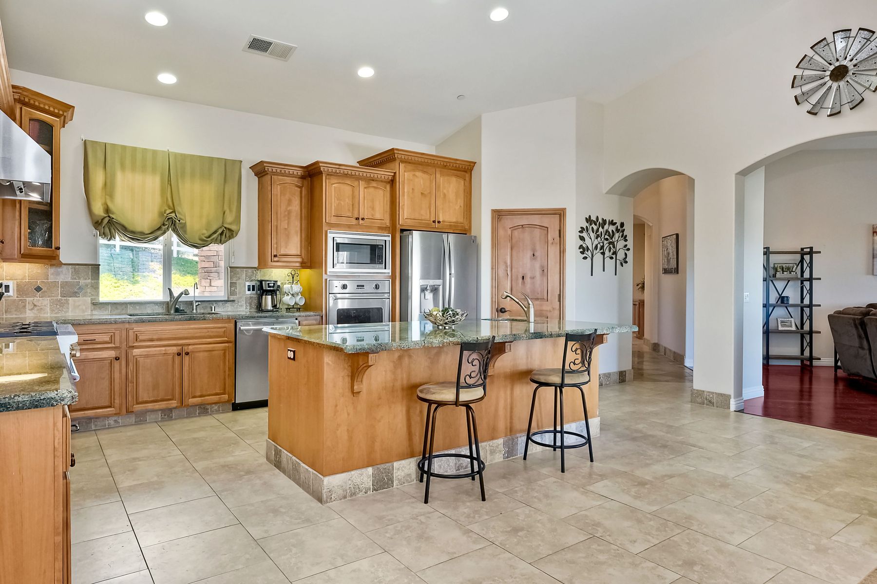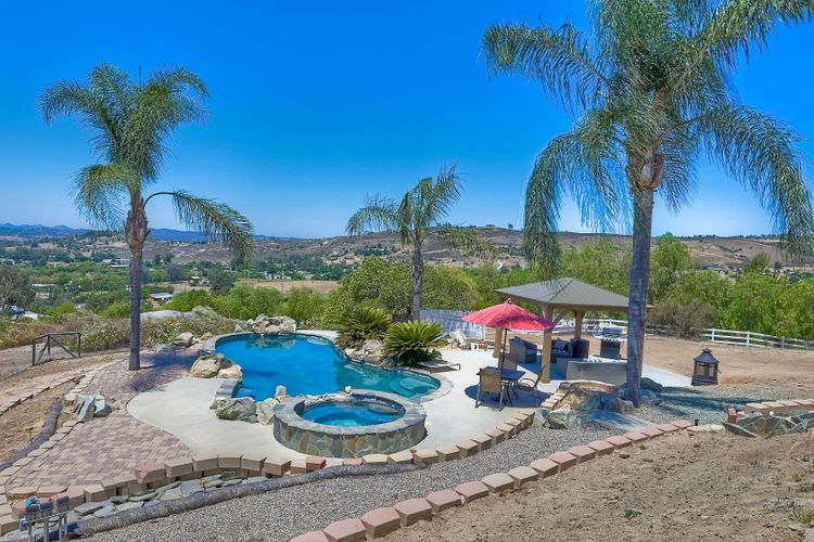 Absolutely stunning 2008 built home with an amazing a 180 degree panoramic view! Home is completely upgraded head to toe with Travertine floors, granite counters, High end cabinetry with self closing drawers, Viking 6 burner stove and oven, Bosch dishwasher, Plantation shutters, Totally dialed in bathrooms with travertine and granite. Master bath offers dual showerheads in huge shower, jetted tub, plus more. Views are for miles but focusing on your private in ground pool and large useful lot. Upgrading tile flooring, large pantry closet, stunning gas burning stone fireplace, high vaulted ceilings though out, plus arched doorways. Paid off Solar home lets you enjoy the dual zoned air conditioning, whole house fans, ceiling fans, plus all you want to do in this spacious custom home. Also you can go off the grid with the newly installed panel switch and portable generator! 4.38 private acres gives you plenty of room to roam. Also a separate shop garage is already in place for the hobbyist. So much more- this is a must come and see home!!
