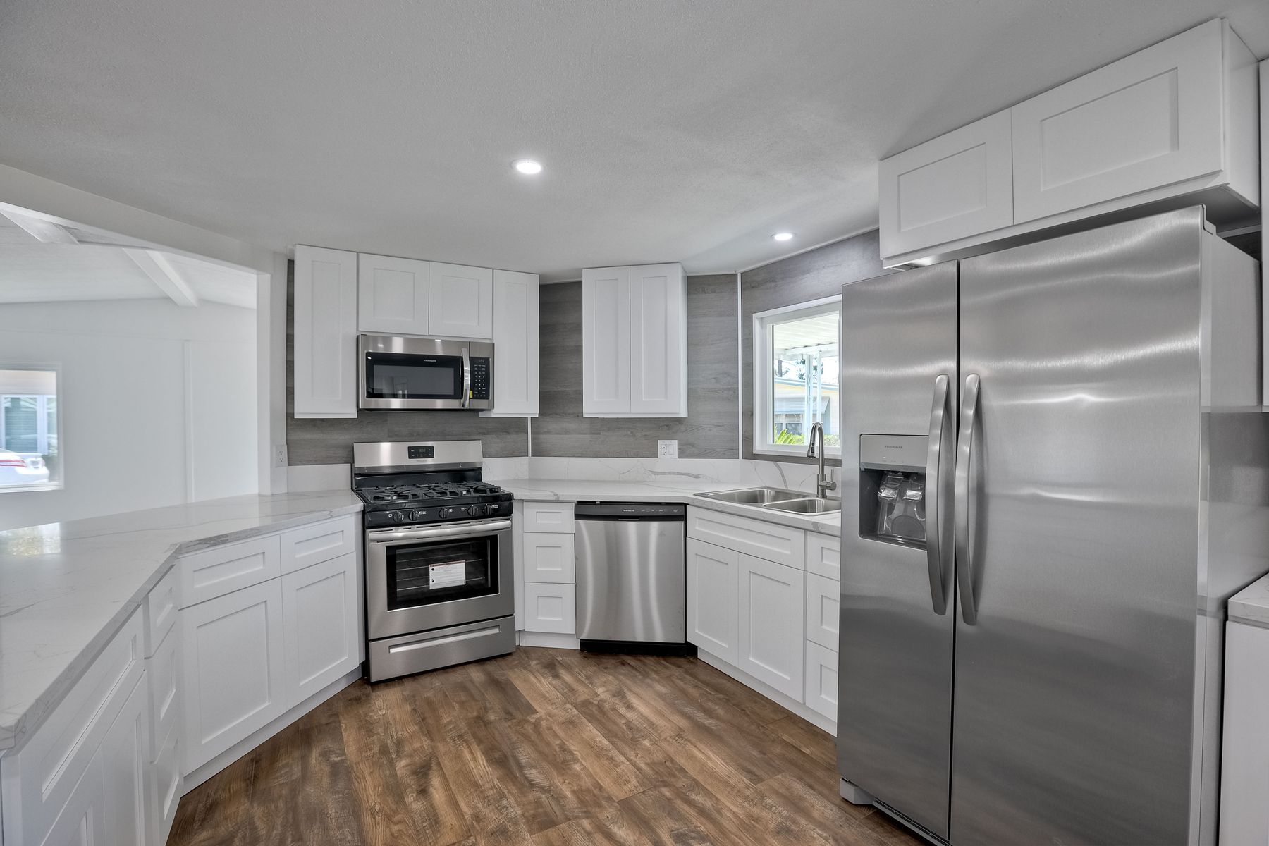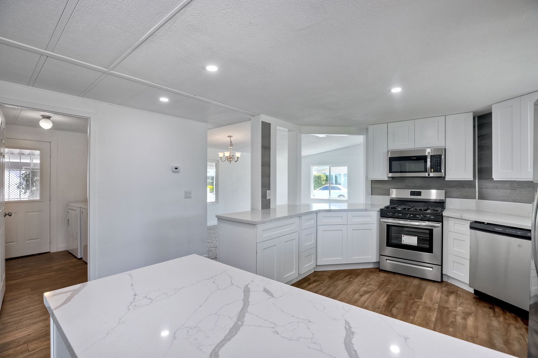 Welcome to 5 STAR rated Sundance Mobile Home Park, an EXCLUSIVE 55+ Active Community with Palm Trees lining up the driveways. A FULLY Remodeled and Fully Upgraded to ALL Brand New home exquisitely elegant 1440 Sq. Ft 2, bed/2 bath Home. ALL Kitchen Appliances of: Stove, Oven, Refrigerator, Dishwasher, Microwave are Brand New and convey along with Washer and Dryer. Recessed Lighting, Celling Fans, Carpet and Laminate Flooring throughout as well as a 2 Car Carport. The Dining room has a built cabinet, and opens onto the spacious Living room. A large master bedroom and a dual sink bathroom. The Second bedroom with its own bathroom. NO Property Taxes! Space Rent is $1550 and covers ALL: Land Lease, usage of Community Amenities of Clubhouse, Heated Pool, Spa, Saunas, Event Space, Kitchen, Fitness Room, Billiards Room, Library, Game Room, Shuffleboard Courts & Green Space. Pet Friendly and is located near local dining, shopping, entertainment and the Reidy Creek Golf Course. This home is spacious, happy and bright. For those seeking Relaxation, Recreation and the Good Life. 20 minutes from the Ocean!. It's all here For the Discerning you!
