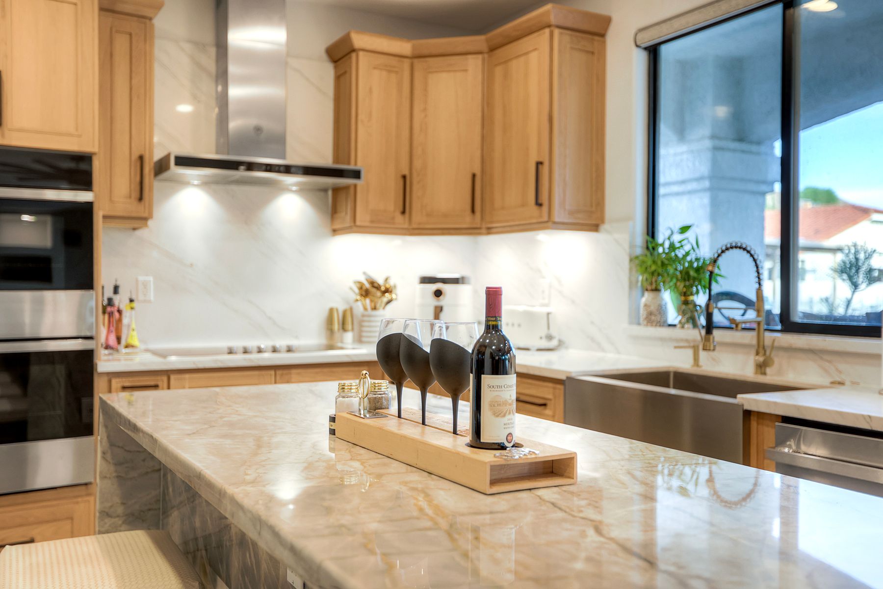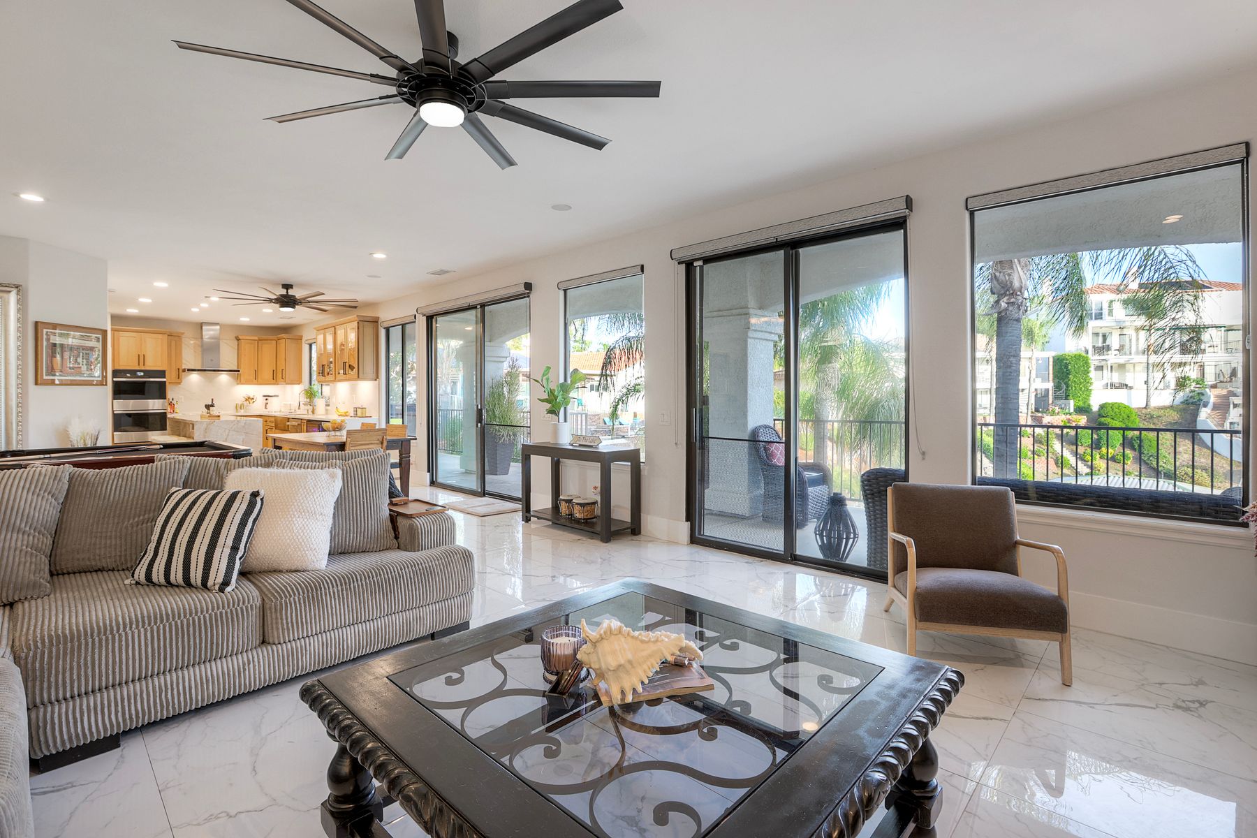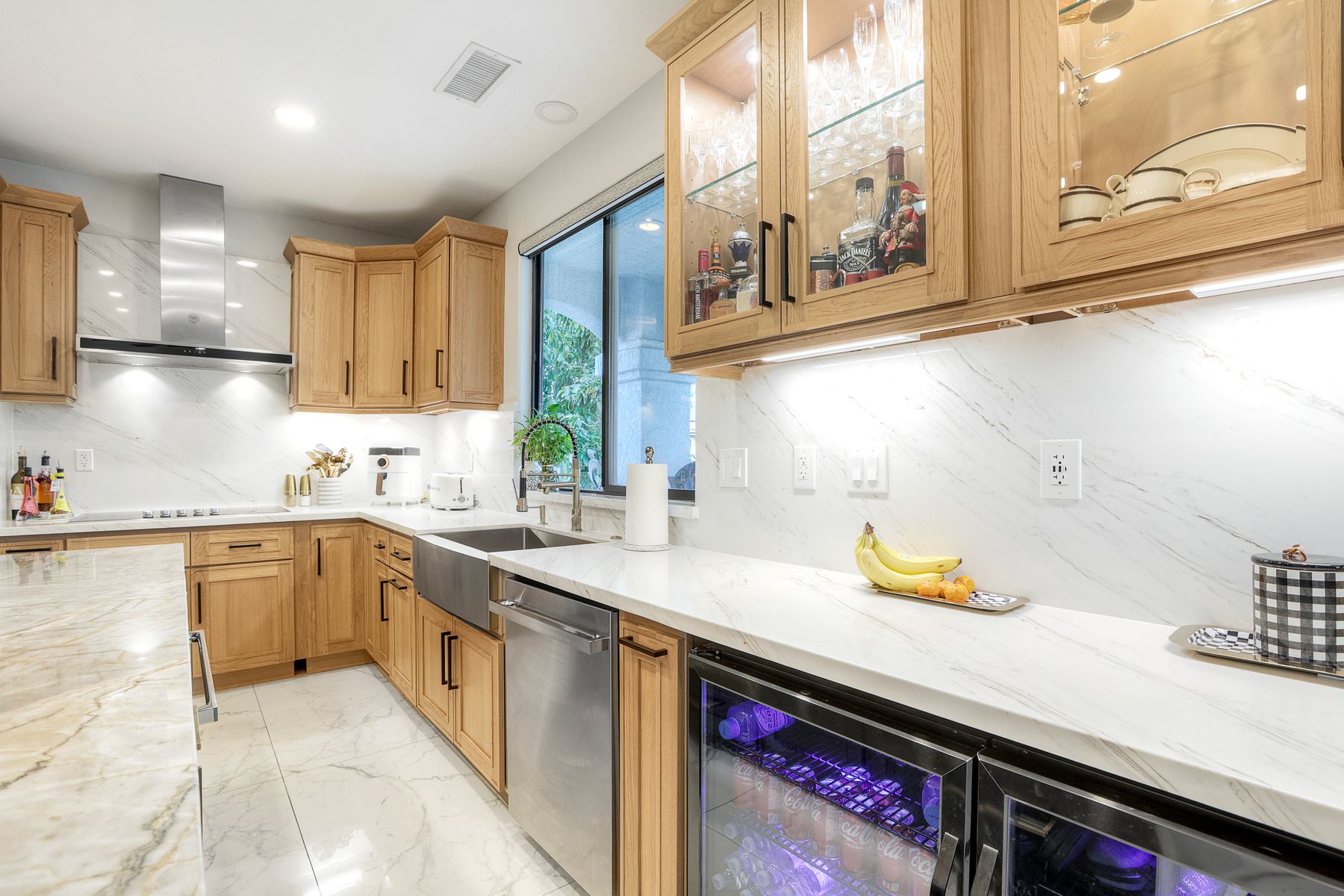 The remodeled kitchen is a standout, showcasing high-end appliances, custom cabinetry, and an expansive quartz island with ample seating, perfect for both everyday living and entertaining. The open-concept design flows seamlessly into the main living areas, filled with natural light and designed to capture the surrounding views. Buyer to assume solar lease.