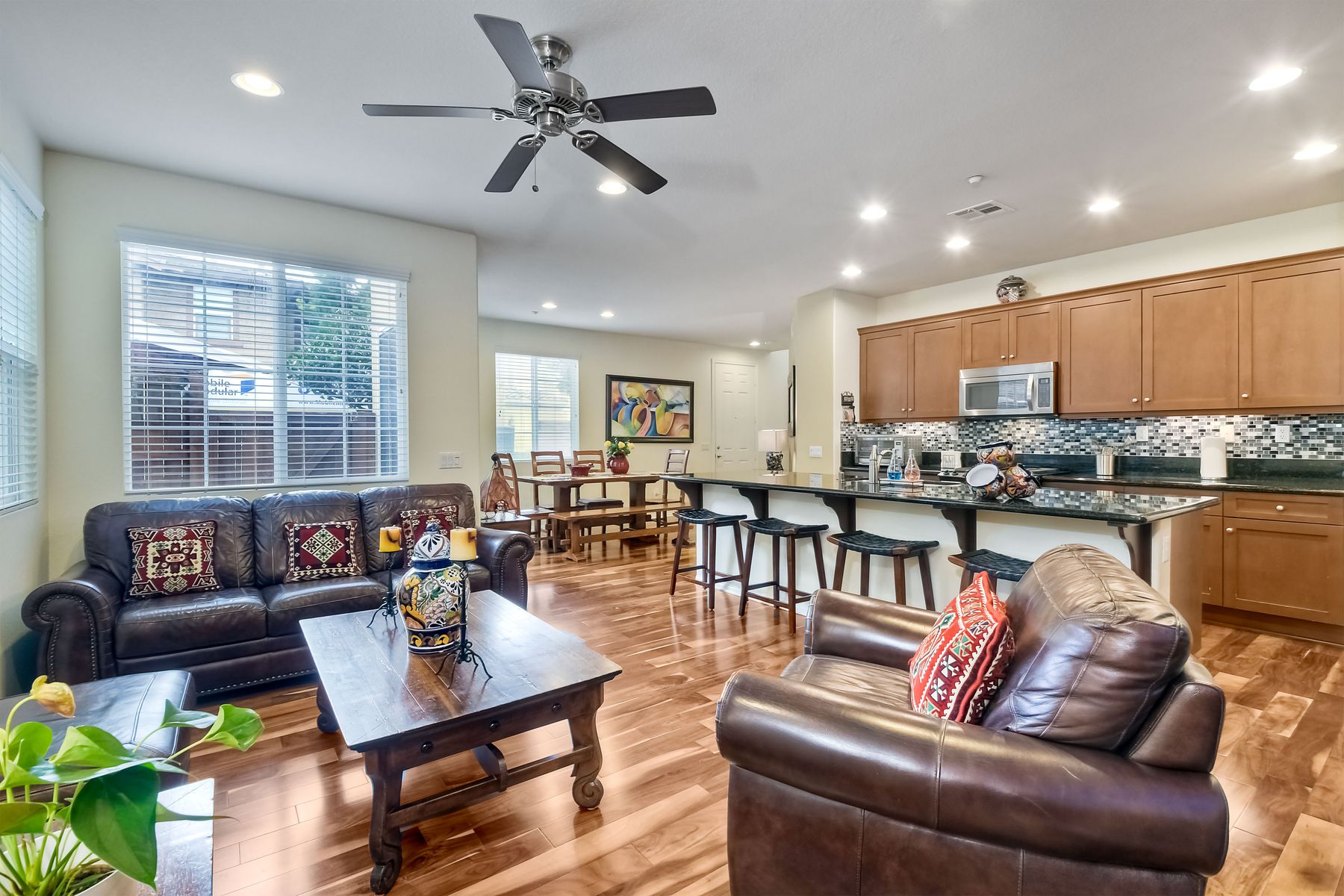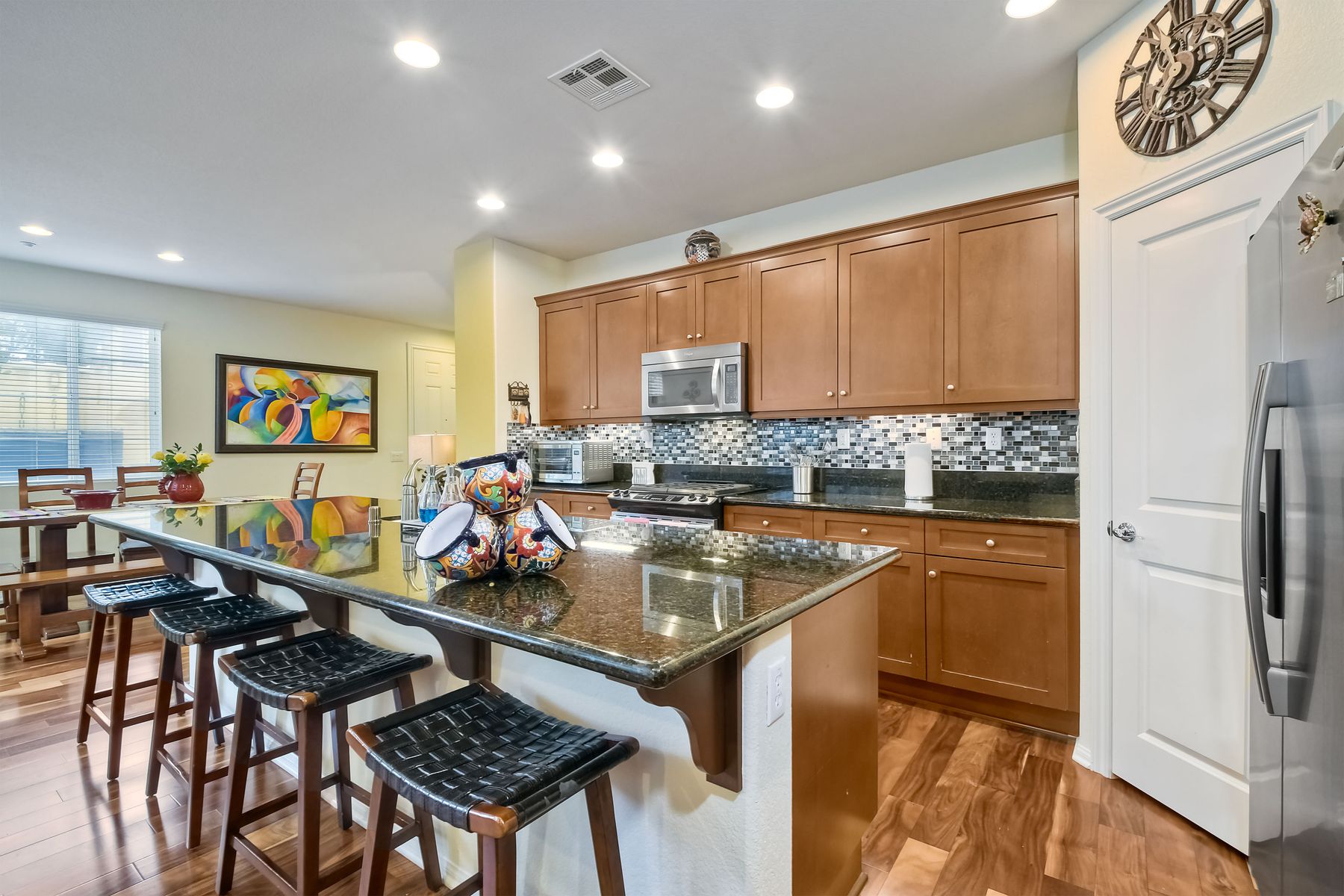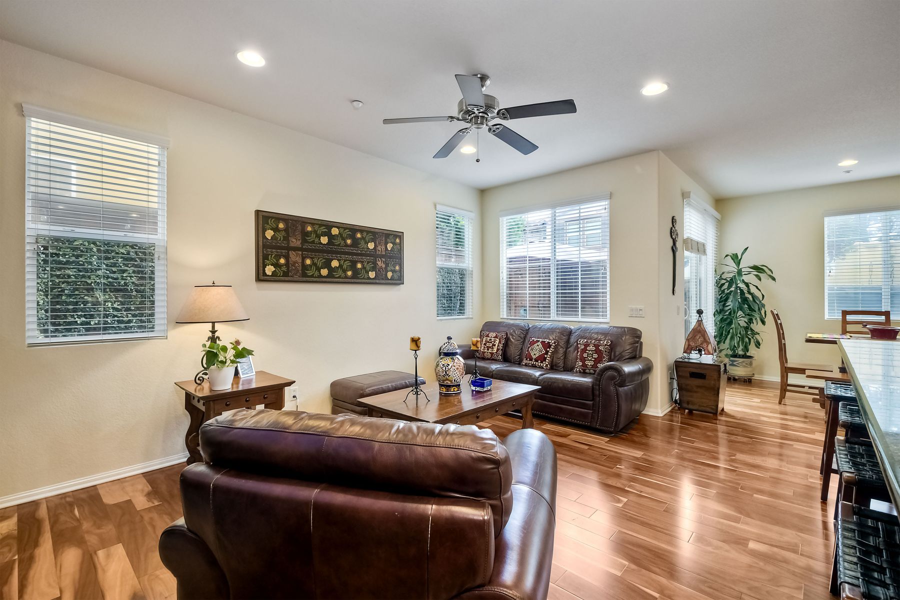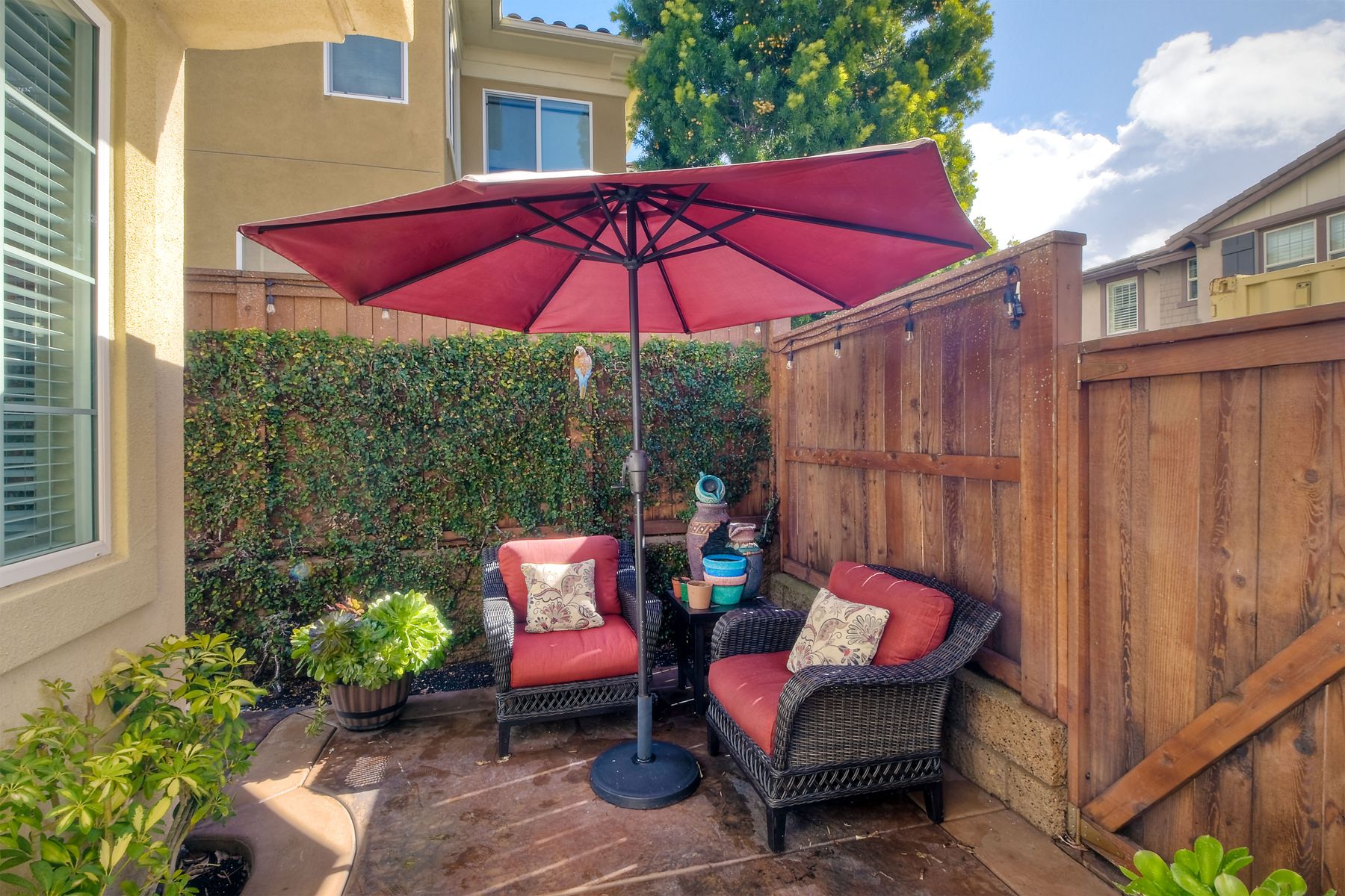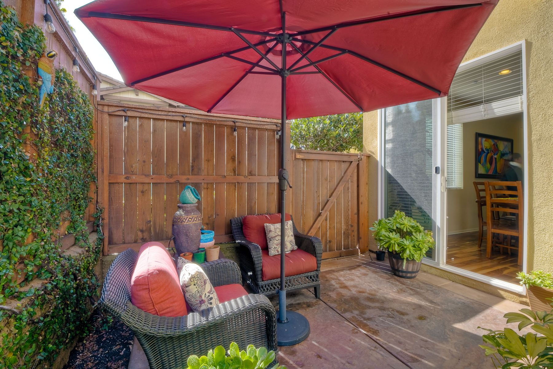 Welcome to this stunning premium & move-in ready corner townhome situated in the sought-after Laurel neighborhood in Old Creek Ranch! You'll love the pride of ownership (original owners) this immaculate Beauty offers. This exquisite & bright residence has many upgrades; freshly vivid designer paint, cozy gas burning granite fireplace, ceiling fans, water softening system, epoxied garage floor, dual pane windows & A/C. The heart of the home, the spacious gourmet kitchen, boasts a large island with bar seating, granite countertops, stainless steel appliances, walk-in pantry, plenty of dark wood cabinets, custom backsplash & a functional family room with hardwood flooring, floating wood shelves & built in cabinets; creating a delightful & enjoyable area to gather. Sliding glass door off the dining area leads to a private low maintenance cozy flag-stone enclosed patio with automated sprinklers for the garden. The home's second level reveals newer luxury laminate 'hardwood' flooring, the laundry room with a deep sink & ample storage cabinets for your convenience, a versatile loft (May be used as a home office, playroom, gym or enclose it for a 4th bedroom) & all three bedrooms plus two bathrooms. Master suite features 2 walk-in closets, separate shower, soaking tub & dual sinks. Best of all, the low HOA fee includes water, roof, exterior maintenance & offers resort-style amenities for the entire family; heated swimming pool, tiny pool, oversized spa, outdoor shower, tot playground, 2 BBQ areas, firepit, paved walkways with pet stations surrounded by majestic mountain views. Enjoy coastal living in North County San Diego, centrally located just minutes from some of the best beaches, top- rated schools, fine dining, shopping, hospitals & hiking/bike trails to La Costa & San Elijo Hills & miles of protected open-space. Don't delay, your new home awaits you, schedule a showing today!