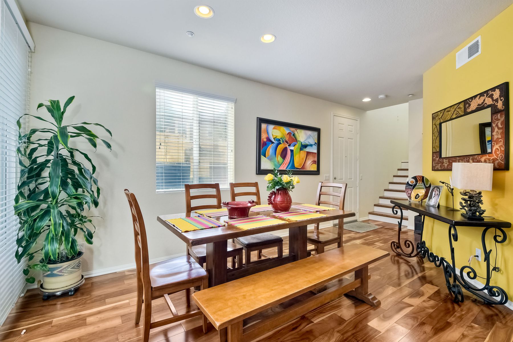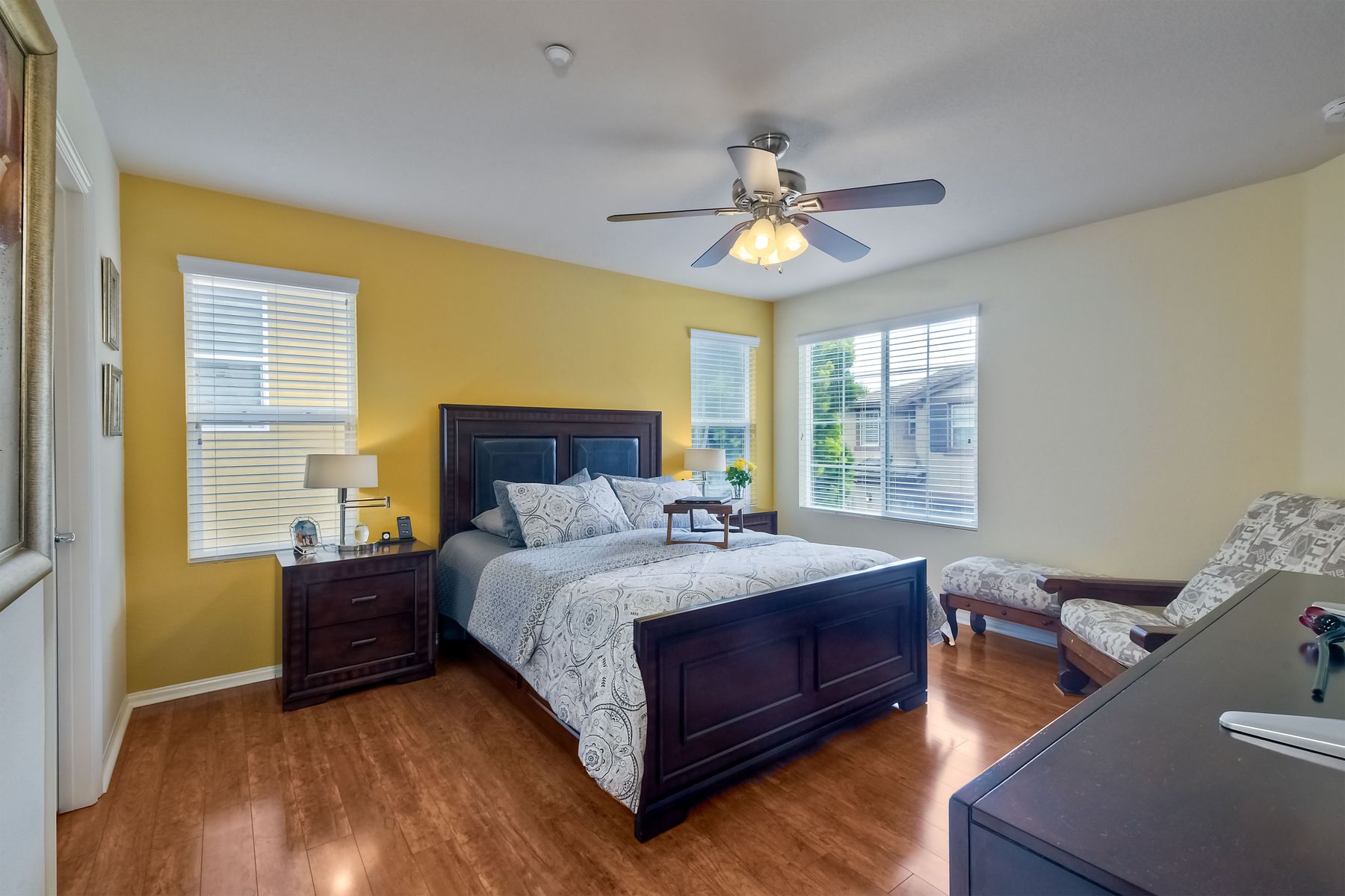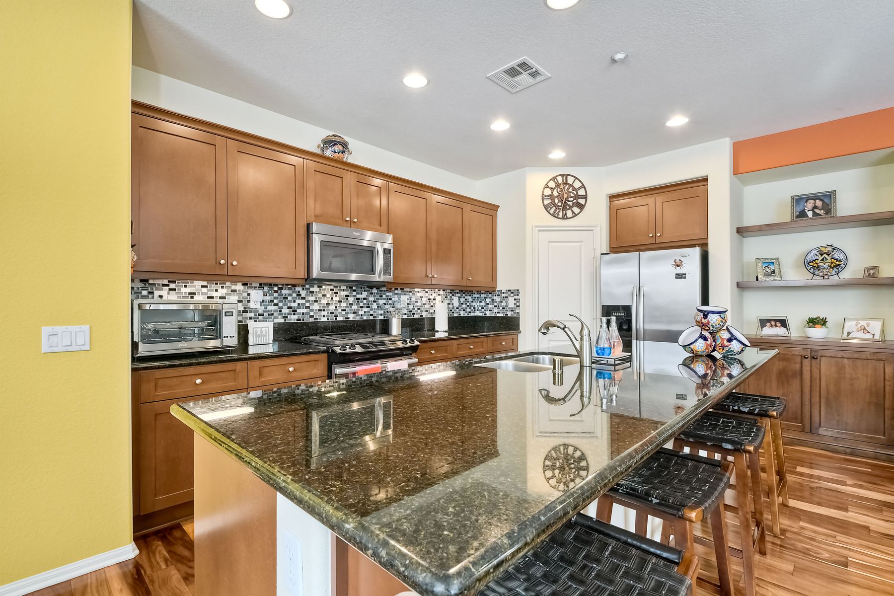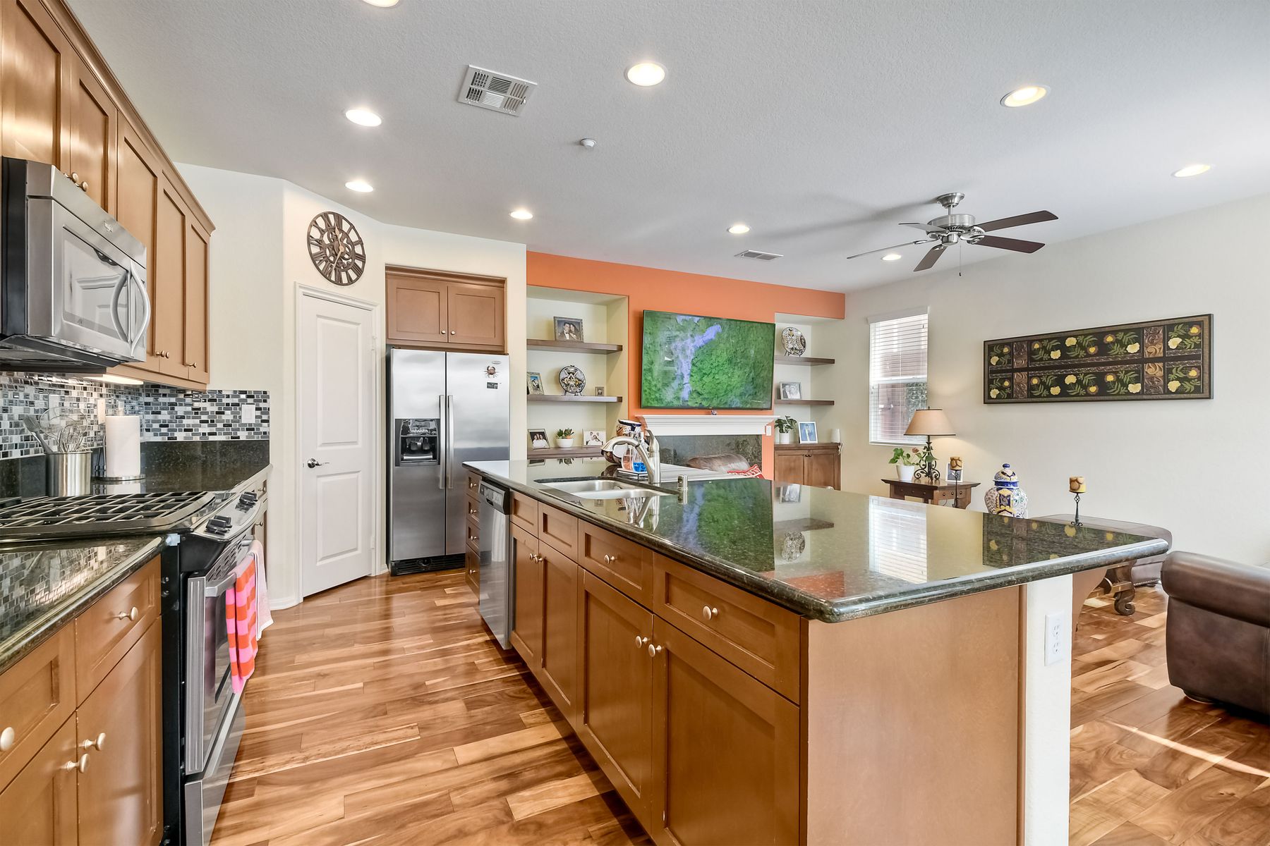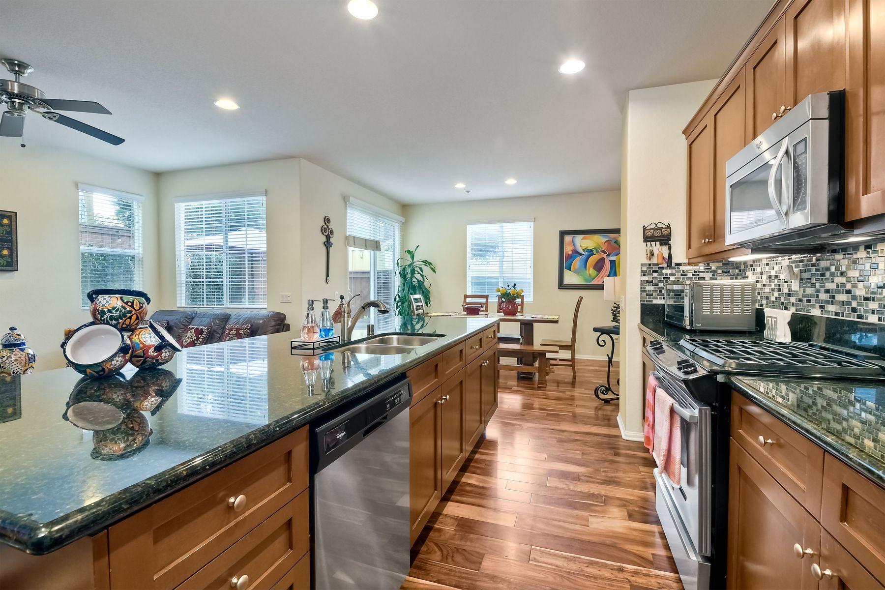 Welcome to this stunning premium & move-in ready corner townhome situated in the sought-after Laurel neighborhood in Old Creek Ranch! You'll love the pride of ownership (original owners) this immaculate Beauty offers. This exquisite & bright residence has many upgrades; freshly vivid designer paint, cozy gas burning granite fireplace, ceiling fans, water softening system, epoxied garage floor, dual pane windows & A/C. The heart of the home, the spacious gourmet kitchen, boasts a large island with bar seating, granite countertops, stainless steel appliances, walk-in pantry, plenty of dark wood cabinets, custom backsplash & a functional family room with hardwood flooring, floating wood shelves & built in cabinets; creating a delightful & enjoyable area to gather. Sliding glass door off the dining area leads to a private low maintenance cozy flag-stone enclosed patio with automated sprinklers for the garden. The home's second level reveals newer luxury laminate 'hardwood' flooring, the laundry room with a deep sink & ample storage cabinets for your convenience, a versatile loft (May be used as a home office, playroom, gym or enclose it for a 4th bedroom) & all three bedrooms plus two bathrooms. Master suite features 2 walk-in closets, separate shower, soaking tub & dual sinks. Best of all, the low HOA fee includes water, roof, exterior maintenance & offers resort-style amenities for the entire family; heated swimming pool, tiny pool, oversized spa, outdoor shower, tot playground, 2 BBQ areas, firepit, paved walkways with pet stations surrounded by majestic mountain views. Enjoy coastal living in North County San Diego, centrally located just minutes from some of the best beaches, top- rated schools, fine dining, shopping, hospitals & hiking/bike trails to La Costa & San Elijo Hills & miles of protected open-space. Don't delay, your new home awaits you, schedule a showing today!