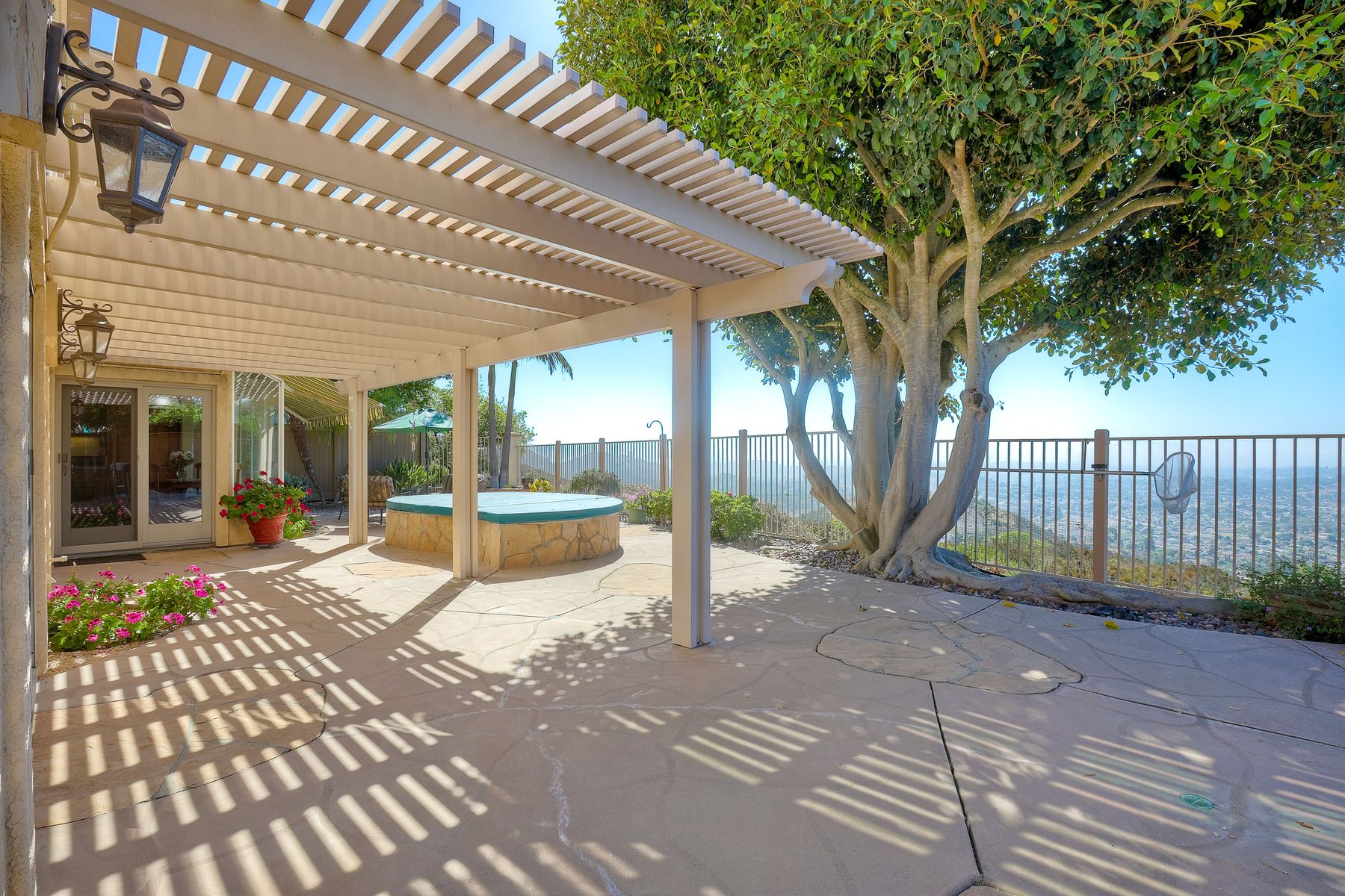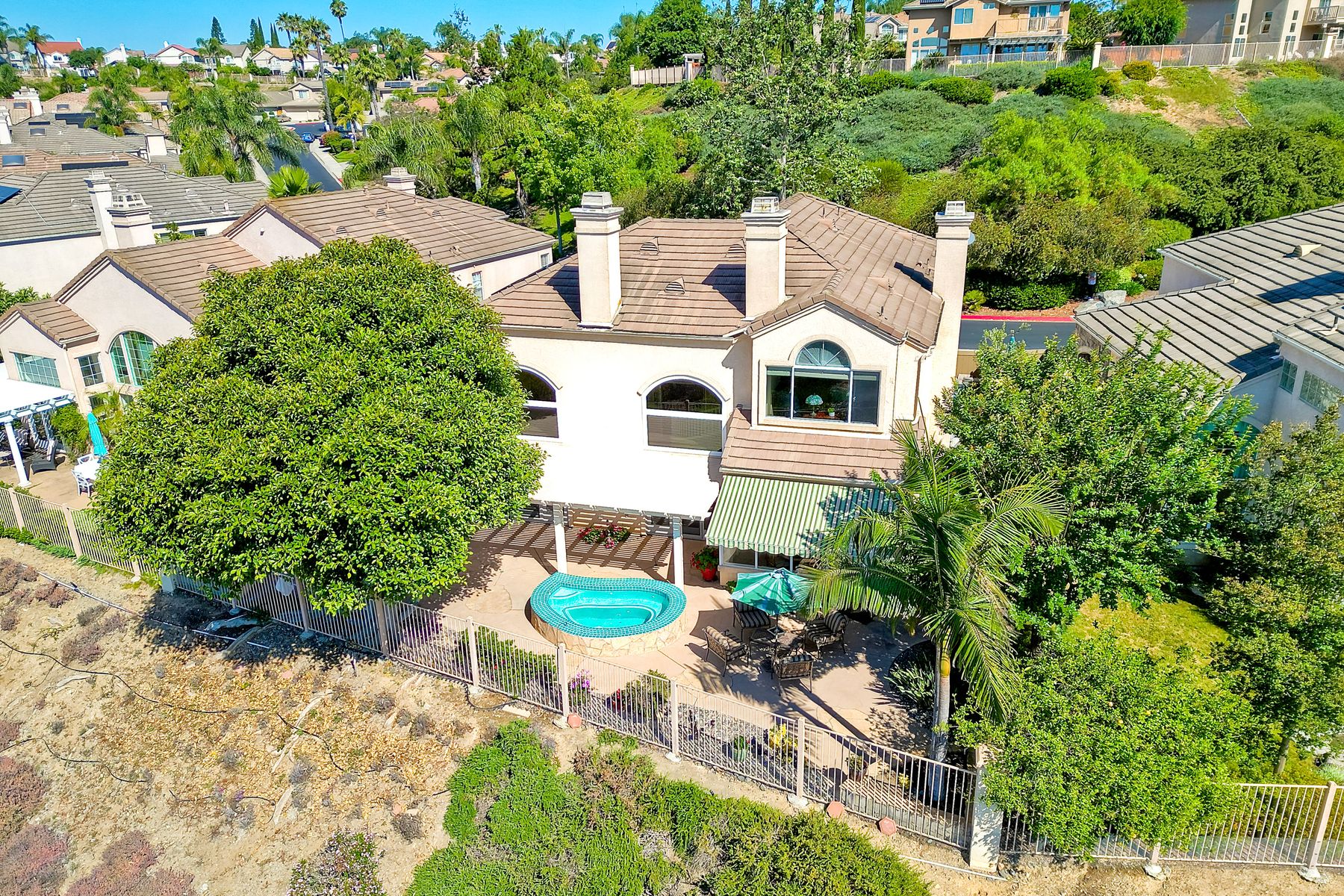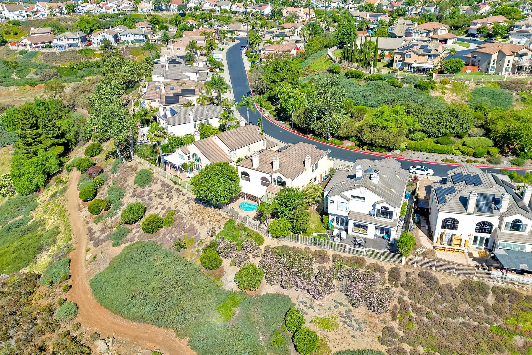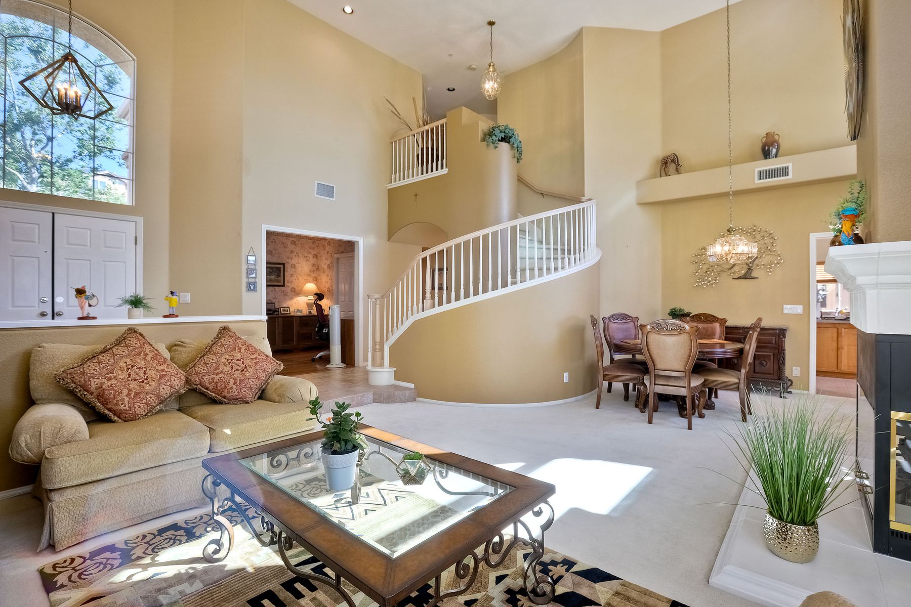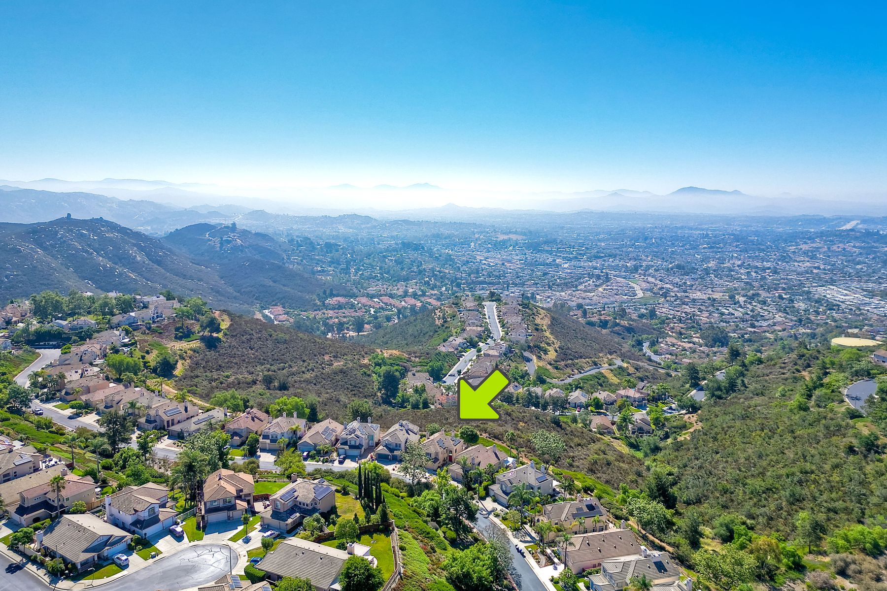 Welcome home and be prepared to have the panoramic views take your breath every day! This beautiful pride of ownership home is located in the guard gated community of Emerald Heights. As you enter the home through the double door entry you'll see the beautiful staircase, the light and bright home and enjoy the views through the high arched windows. This four bedroom three full bath home, enjoys the primary bedroom upstairs, along with two additional bedrooms and with a first floor bedroom that is presently configured as an office. The spacious primary suite enjoys the incredible views, a huge mirrored closet area, dual vanities, makeup/dressing area, soaking tub and separate Glass Block shower. The two additional bedrooms upstairs have an Hollywood style Jack & Jill bathroom. You'll be inspired to cook in this gourmet kitchen with custom cabinetry, granite countertops, and newer stainless steel appliances. You'll be a part of the party with this great room style area that includes an atrium breakfast nook, kitchen and family room. Start your morning with a cup of coffee taking in the spectacular view, and end your day in the jacuzzi enjoying the city light views. Step outside through the Anderson patio doors to the patio with the jacuzzi and large patio area for your entertaining pleasure. Enjoy plenty of shade under the Aluma wood cover, as well as the Retractable awning. Both the front and backyard areas are beautifully landscaped with convenient drip irrigation. The solar is leased. Enjoy resort style living in the Emerald Heights community. Get your exercise in the Olympic sized pool that is heated year round, spa, or on the pickleball, tennis and basketball courts. The little ones will have fun in the play ground, wading pool and the picnic area too! The HOA organizes events like Adult parties, Music at Sunset, Easter Egg Hunts, 4th of July parades and many many more fun activities!