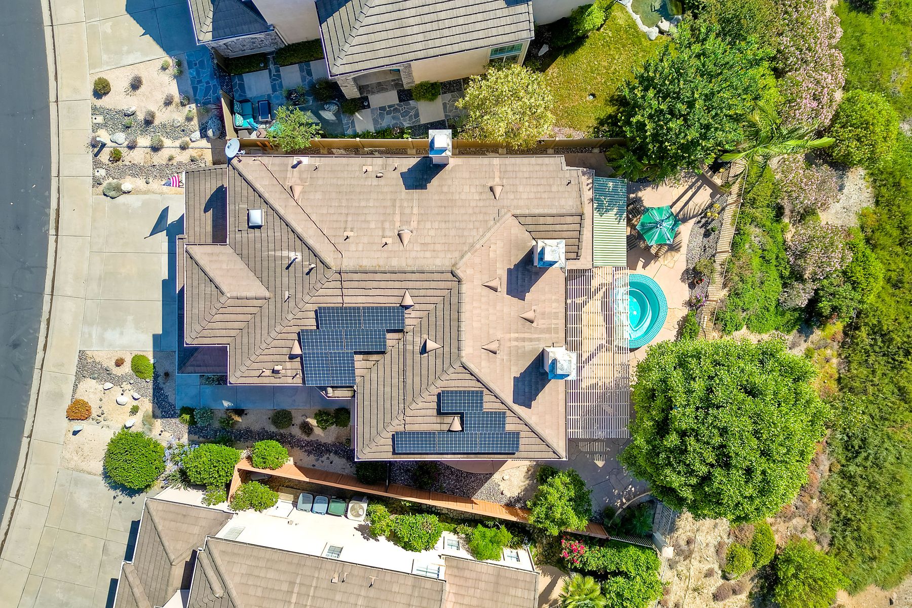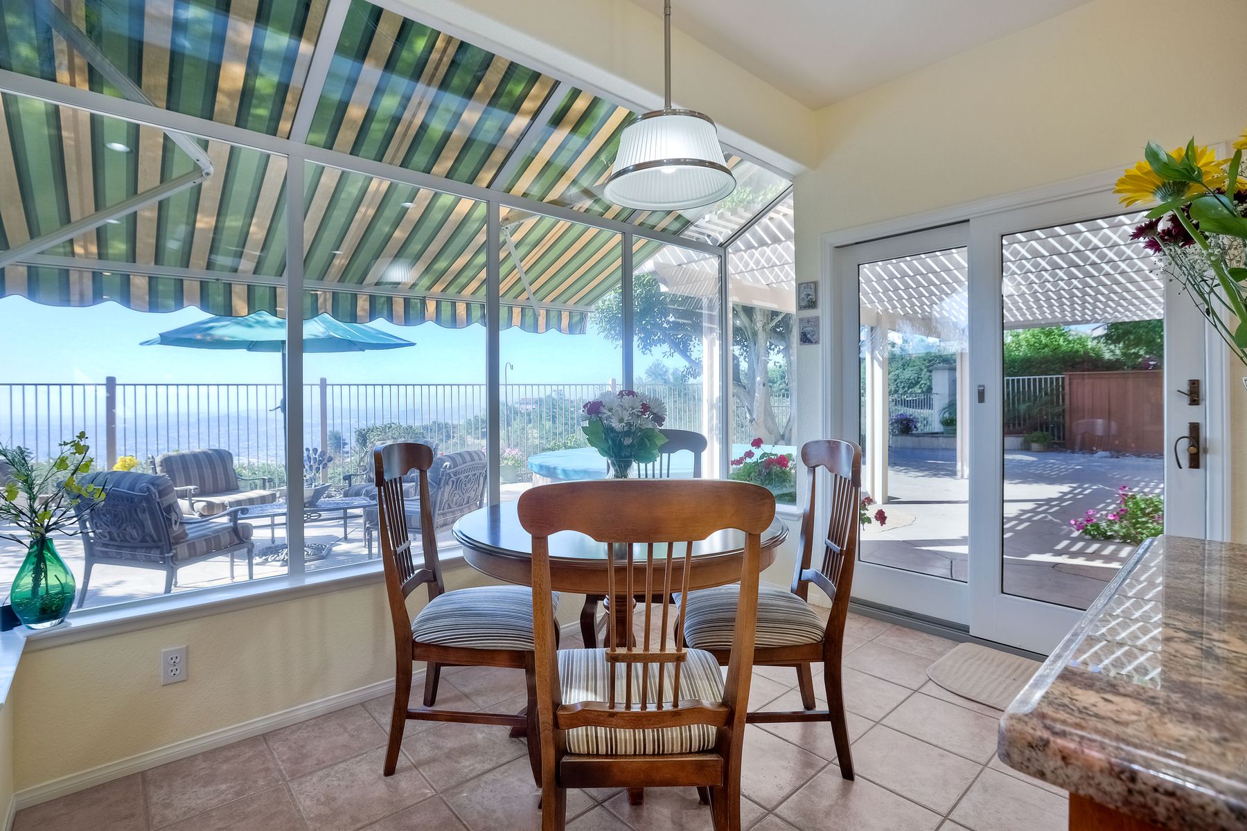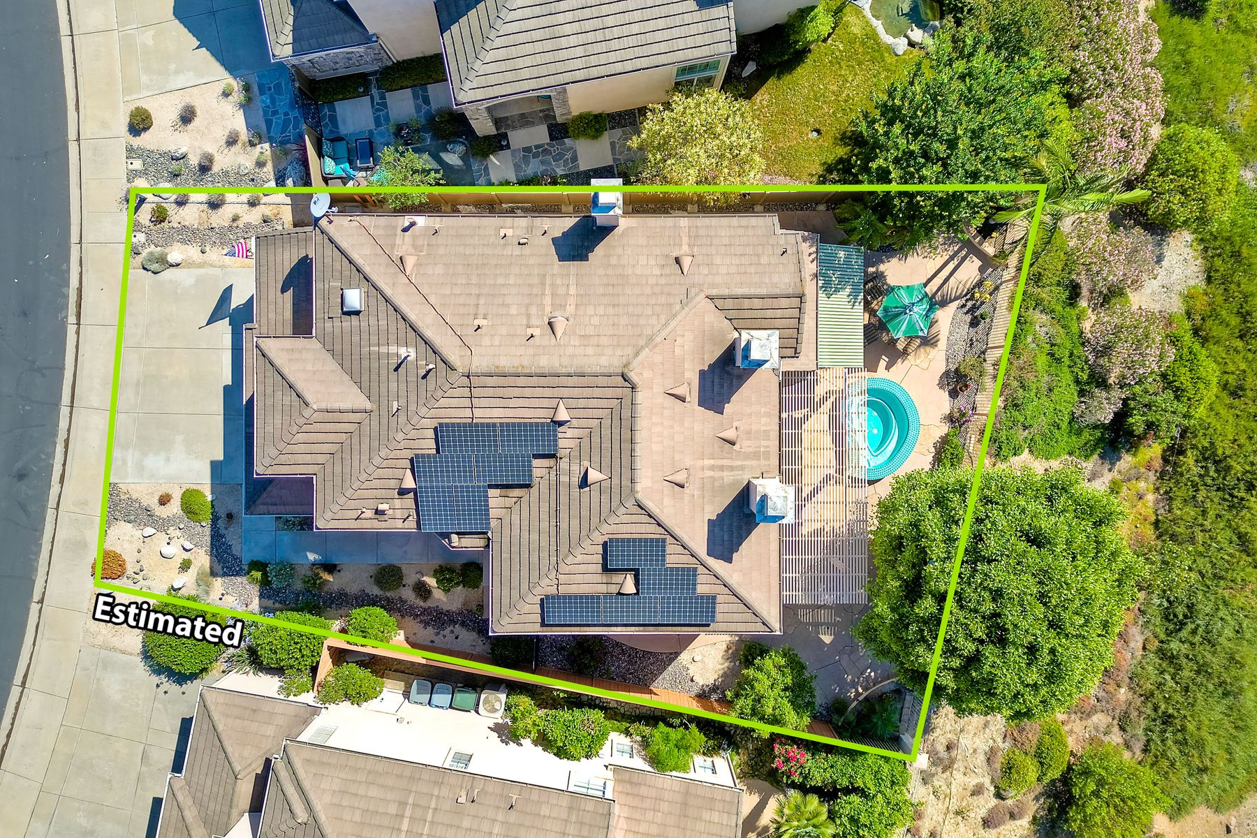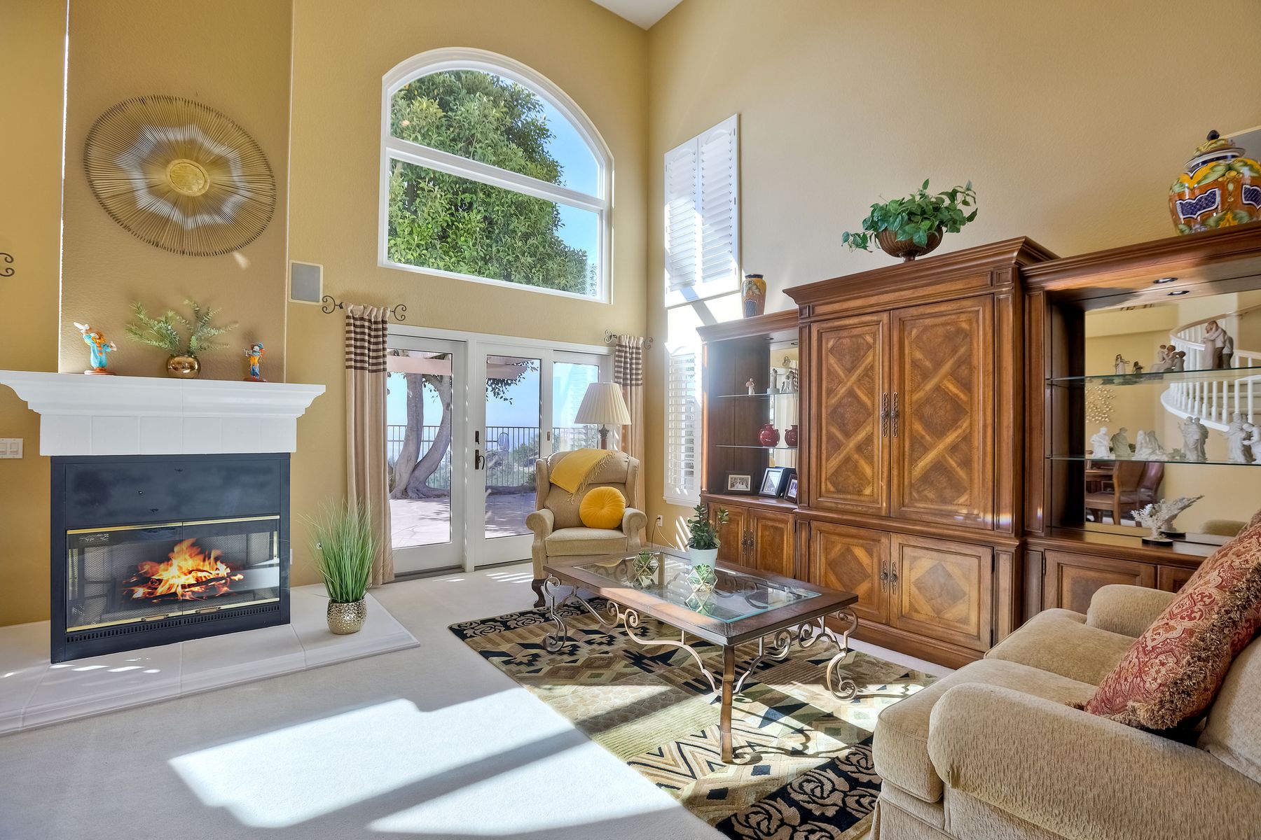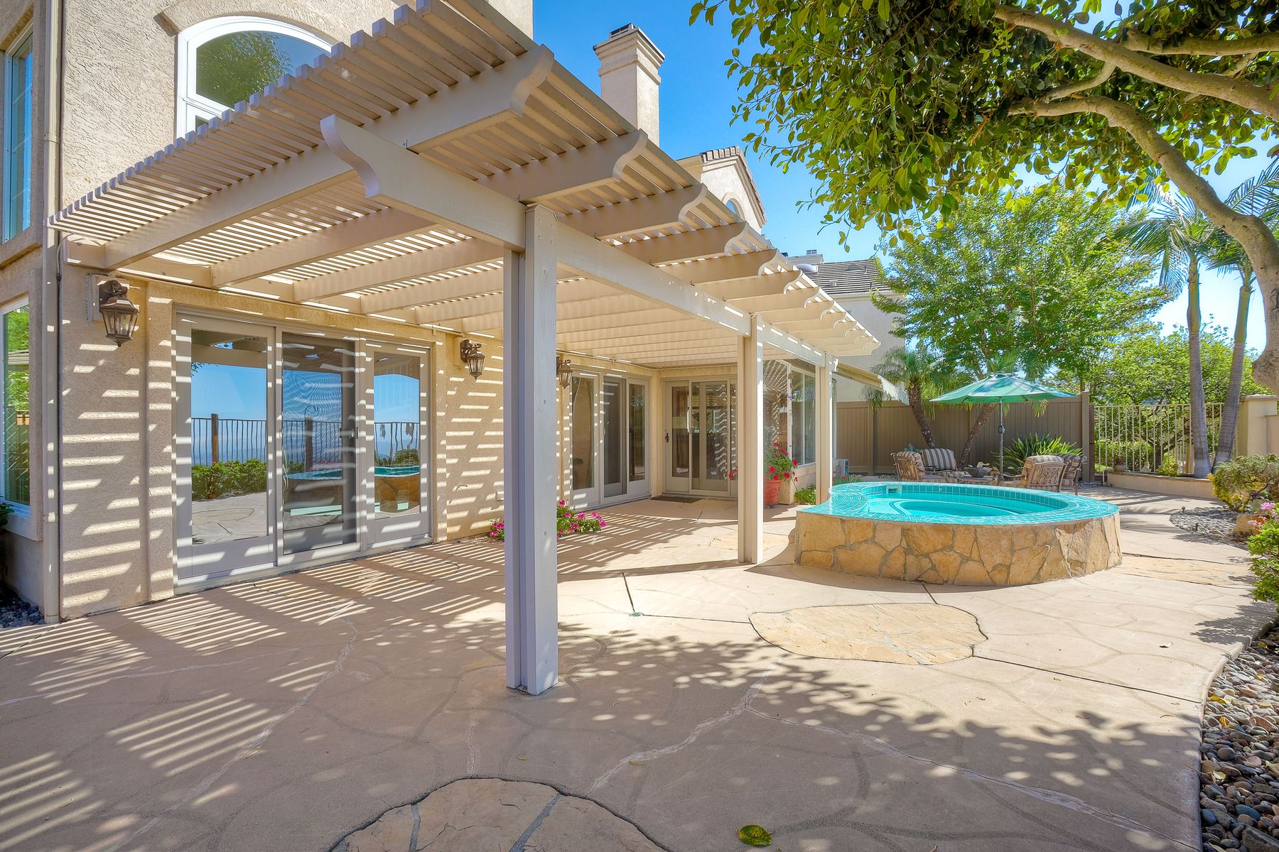 Welcome home and be prepared to have the panoramic views take your breath every day! This beautiful pride of ownership home is located in the guard gated community of Emerald Heights. As you enter the home through the double door entry you'll see the beautiful staircase, the light and bright home and enjoy the views through the high arched windows. This four bedroom three full bath home, enjoys the primary bedroom upstairs, along with two additional bedrooms and with a first floor bedroom that is presently configured as an office. The spacious primary suite enjoys the incredible views, a huge mirrored closet area, dual vanities, makeup/dressing area, soaking tub and separate Glass Block shower. The two additional bedrooms upstairs have an Hollywood style Jack & Jill bathroom. You'll be inspired to cook in this gourmet kitchen with custom cabinetry, granite countertops, and newer stainless steel appliances. You'll be a part of the party with this great room style area that includes an atrium breakfast nook, kitchen and family room. Start your morning with a cup of coffee taking in the spectacular view, and end your day in the jacuzzi enjoying the city light views. Step outside through the Anderson patio doors to the patio with the jacuzzi and large patio area for your entertaining pleasure. Enjoy plenty of shade under the Aluma wood cover, as well as the Retractable awning. Both the front and backyard areas are beautifully landscaped with convenient drip irrigation. The solar is leased. Enjoy resort style living in the Emerald Heights community. Get your exercise in the Olympic sized pool that is heated year round, spa, or on the pickleball, tennis and basketball courts. The little ones will have fun in the play ground, wading pool and the picnic area too! The HOA organizes events like Adult parties, Music at Sunset, Easter Egg Hunts, 4th of July parades and many many more fun activities!