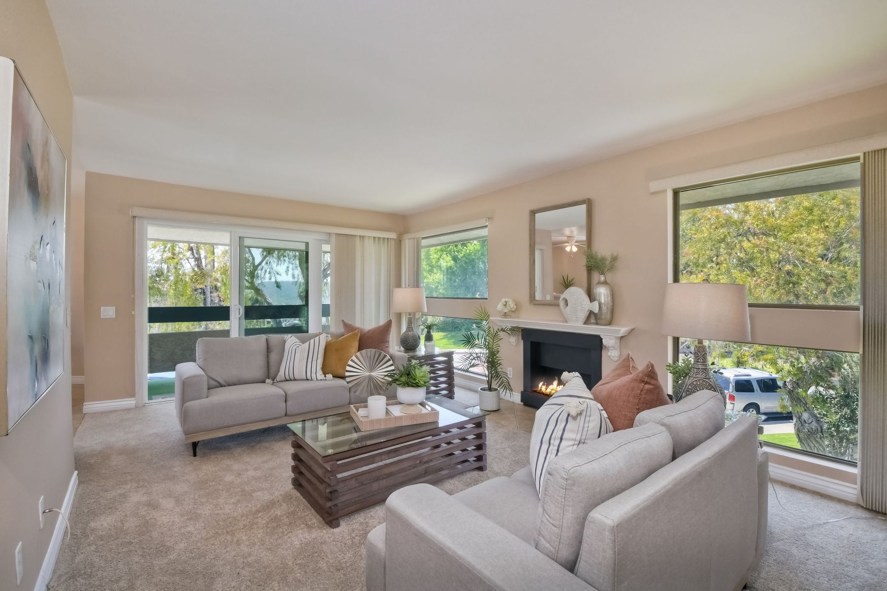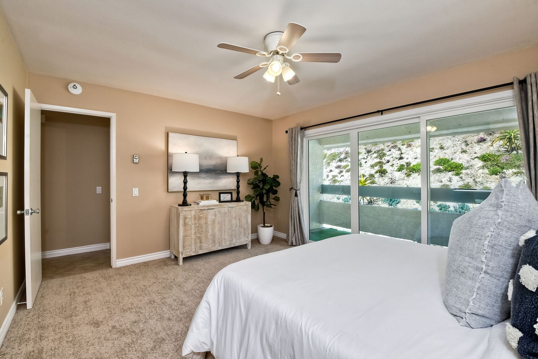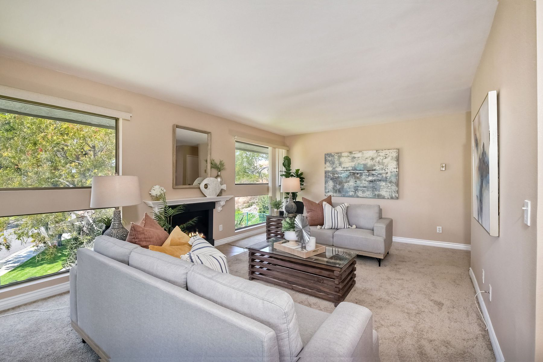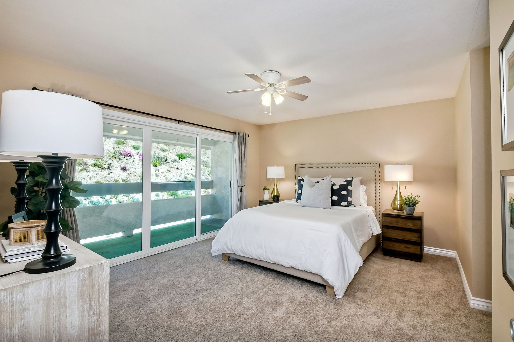 Southern California coastal living at it's best at this move-in ready beautifully kept specious and desirable Carlsbad/La Costa single level first floor end corner unit with no neighbors above! New Carpeting and fresh paint through out. This light and bright specious dual aspect condo with abundance of natural lights and views from the living room and surround. 2 generous dual main bedrooms with en-suite and huge walk-in closets are ideally situated away from the living area creating much privacy. Both bedrooms open onto the good size balcony with large sliding double pane doors ideal for relaxing with that morning coffee. The good size kitchen with granite countertops and plenty of cabinets opens into the dinning nook and into the specious living room with it's cozy fire place and large sliding double pane patio doors to the front balcony for relaxing and enjoying the great views of the lush green neighborhood and hills of La Costa! Unit benefits from indoor laundry in addition to the community laundry facilities, one car garage/storage, plus one assigned covered parking space and plenty of street parking with easy access to the unit. Short distance to beautiful beaches, shopping centers, great restaurants, Omni resort and Aviara championship golf, cinemas, easy freeway access, award winning schools and so much more. This is a great place to make it your home or a lucrative investment! Recomend an early viewing appointment, this one won't last!