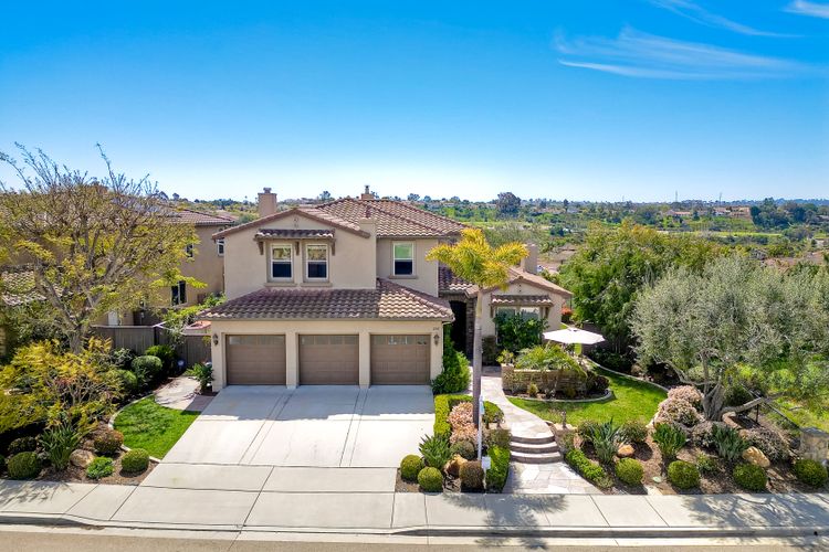 Move in ready home in sought after La Costa Valley. The home location is awesome and rests on one of the best lots in the community! You’ll love relaxing in the rear yard with its south-west and westerly views that overlooks the state and city protected CA Oak Preserve. Since the lot adjoins the preserve you’ll enjoy the privacy that we all are looking for in a home. The 2 level home features include 5 bedrooms (one on ground floor with full bath), 3.5 baths, 3 car garage, Family room, Formal dining room, Breakfast area and bar, 4 Fireplaces including outdoor patio, Custom built-in BBQ, Outdoor fireplace, pool size backyard with both permitted electric & underground gas lines extensions for potential future pool already completed, Mature landscaping with fruit & avocado trees, Full home water filter system, Wall and/or ceiling speakers in FR, LR, primary bedroom & primary bath & rear yard covered patio. The La Costa Valley master community HOA offers: Large Clubhouse, Junior Olympic sized swimming pool, Wading pool, Jetted spa, Lighted tennis courts, Fitness center, Walking & biking trails. Located in the San Dieguito school district with its top rated schools is the cherry on top of the home's great location. A short walk to El Camino Creek Elementary as well. Come live the La Costa lifestyle today.