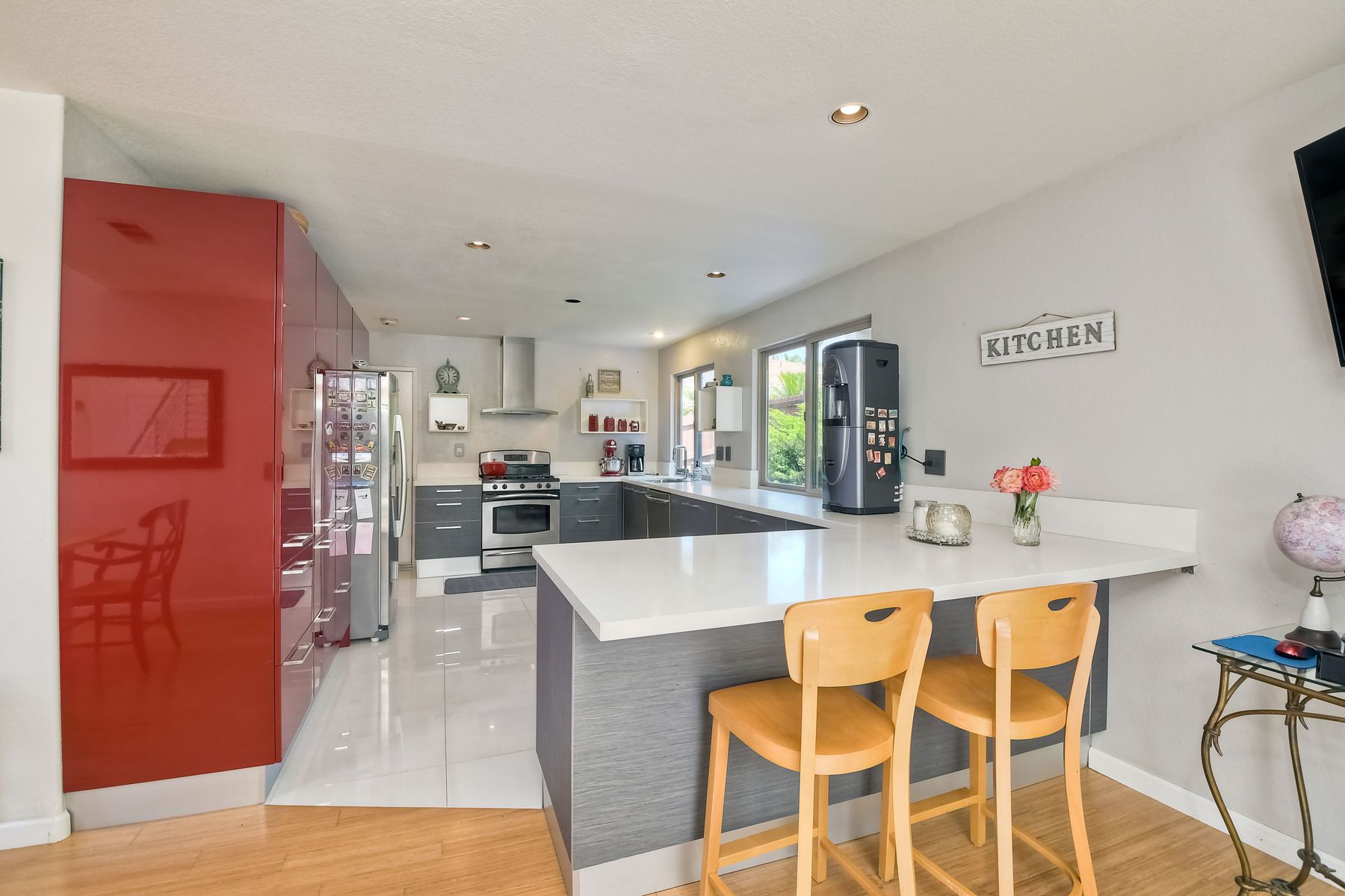 Multiple offers! No more showing. Beautiful modern twist in a special area about 4.5 miles to the beach. Imported Pedini Italian kitchen with Caesarstone Quartz counter top. Ann Sacks designer fireplace. Stainless steel GE Samsung appliances, built in wine refrigerator. No HOA No Mello Roos. Detached home on the border of Carlsbad and Vista. Lots of high end upgrades! Lg Back yard w/ detached shed/art studio. New Pictures Coming Soon! These are from before the tenants occupied. This home has all the modern flare and fun upgrades. The entryway has a custom modern birch and stainless steel staircase. The slider is a newer extra-wide Andersen patio door. Sellers added a Built-in breakfast bar. Fixtures in kitchen are high end Grohe. Microwave is in the garage. Bamboo wood flooring and large Spanish Porcelain flooring. Custom made glass modern closet sliders. Modern Legrand Adorne light switches and outlets on the first floor. They beautifully remodeled the upstairs bathrooms with granite and new fixtures as well. This is the last home on a small cul-de-sac. Close to Carlsbad and San Marcos! The neighbors are amazing too! All measurements are estimates. Buyer and buyer's agent to satisfy them selves of all information prior to removing Contingencies.. Neighborhoods: California Summit Equipment: Garage Door Opener, Range/Oven Other Fees: 0 Sewer: Sewer Connected Topography: LL