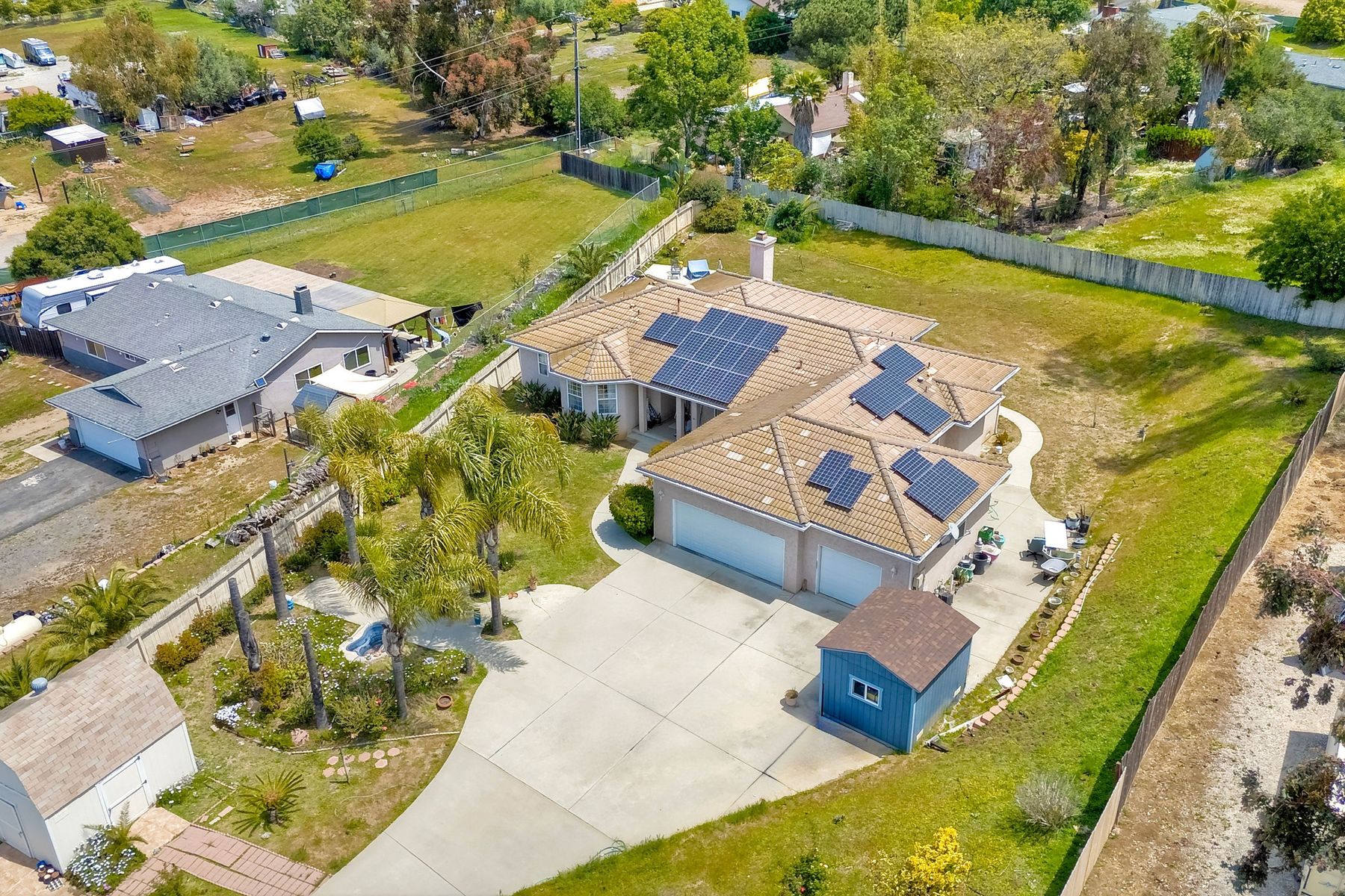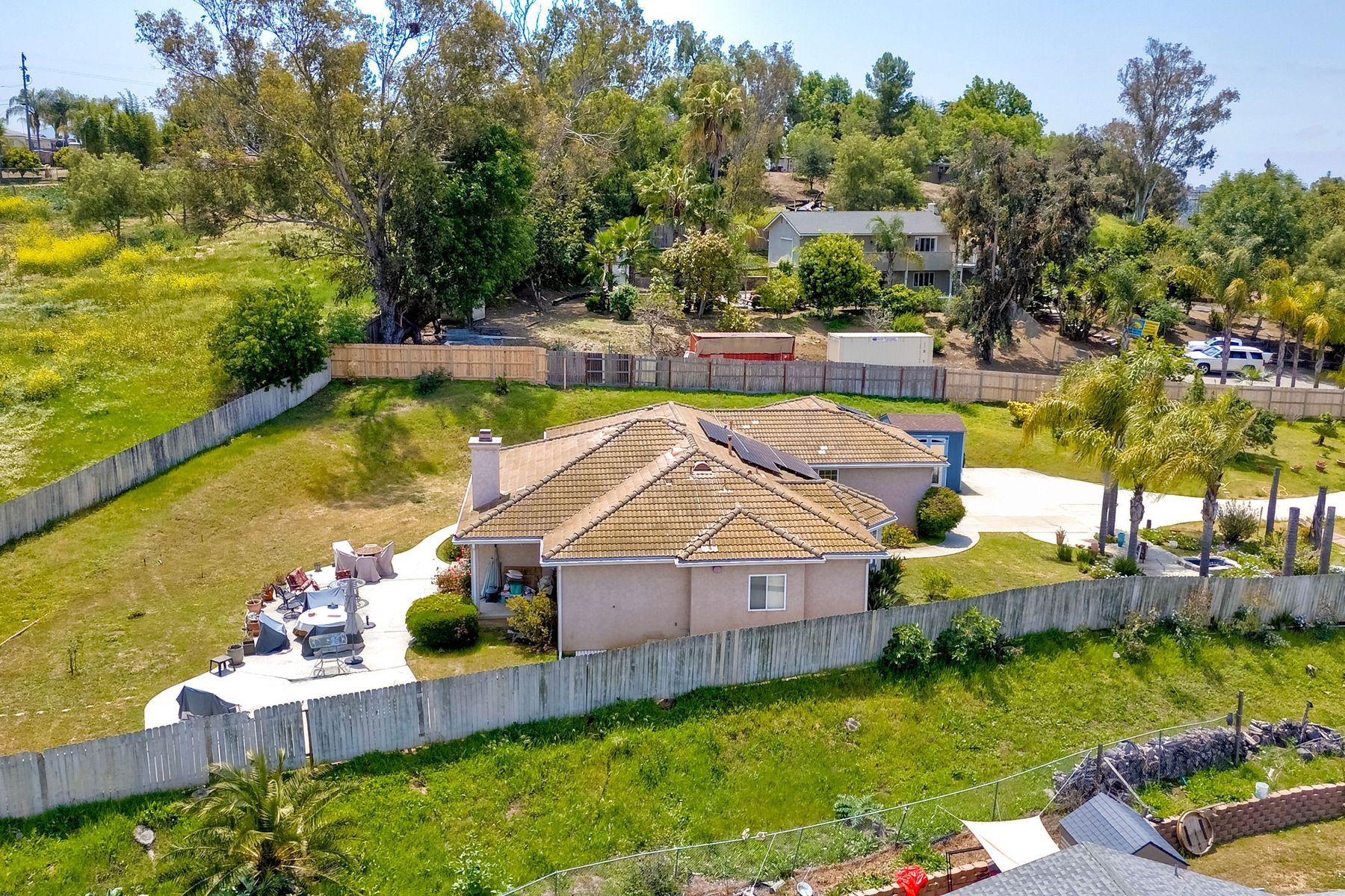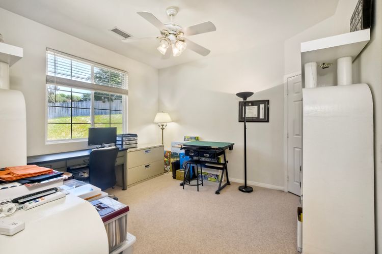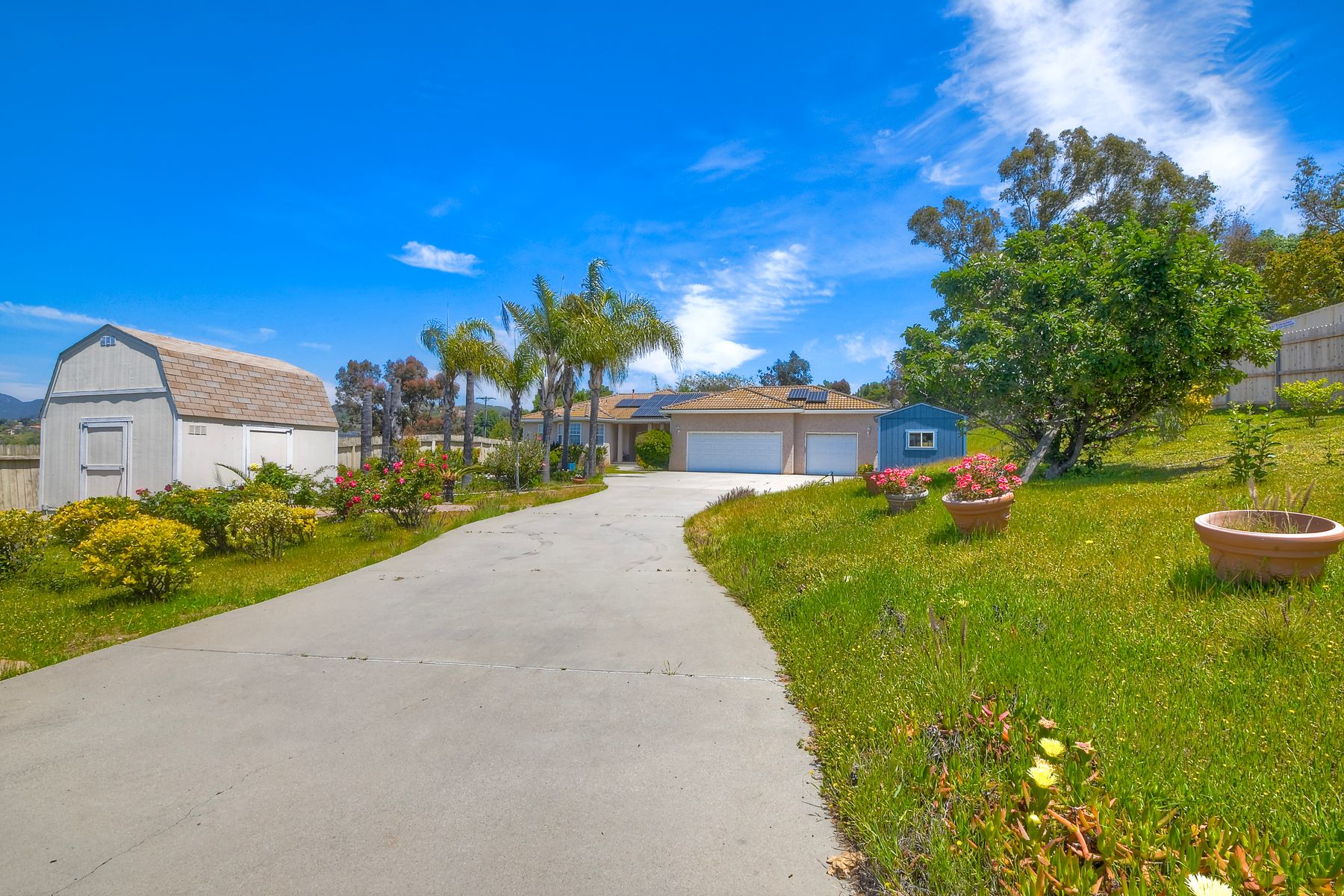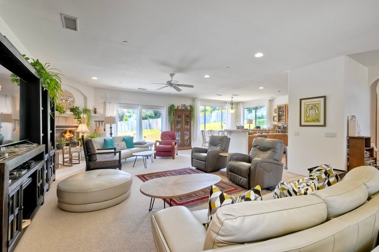 SOPHISTICATED SINGLE-LEVEL RETREAT IN COVETED CALIFORNIA ENCLAVE! Making its market debut! Nestled on a generous 0.67-acre lot where tranquility meets convenience, this custom-crafted single-level sanctuary offers a rare combination of privacy and sophisticated living. The thoughtfully designed floor plan showcases 4 bedrooms and 3 full bathrooms, with an intuitive layout that places the luxurious owner's retreat at one end and a versatile Jack & Jill suite at the opposite wing for optimal privacy. Step inside to discover soaring ceilings, elegant archways, and walls of windows that bathe the interior in California's legendary natural light. The chef's kitchen serves as the home's vibrant heart, seamlessly flowing into inviting family and dining spaces—perfect for both grand entertaining and intimate gatherings. Work-from-home professionals will appreciate the impeccably converted garage bay, now a sophisticated private office with bespoke built-ins, offering endless possibilities for remote work or creative pursuits. The property truly shines outdoors, where lush grounds showcase mature fruit trees (apple, grapefruit, lemon, and loquat), vibrant rose gardens, and multiple storage options. Imagine the possibilities: ample space for vehicles, toys, or future enhancements like a sparkling pool, or recreational court. Savor peaceful moments on the expansive patio overlooking gentle canyon and city vistas, all while enjoying the refreshing coastal breezes that naturally cool this remarkable property. Modern conveniences include owned solar, with no HOA or Mello-Roos fees to burden your ownership. This is California living reimagined—where country tranquility meets urban accessibility. Discerning buyers know properties of this caliber are increasingly rare in today's market. Your legacy home awaits.