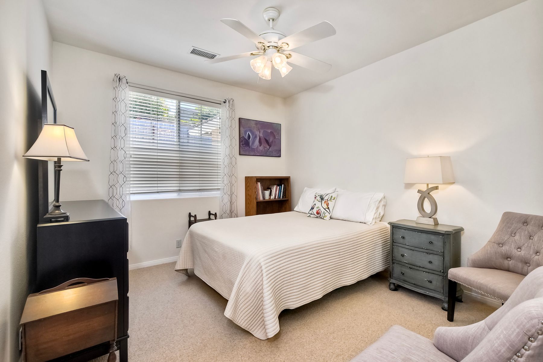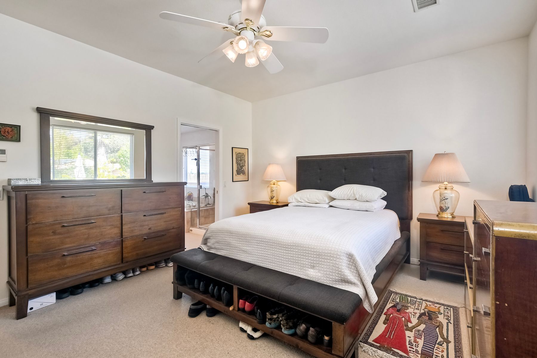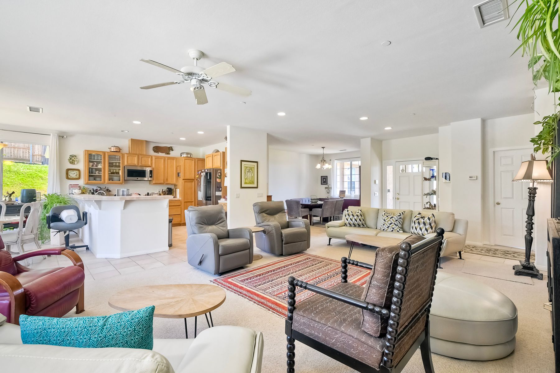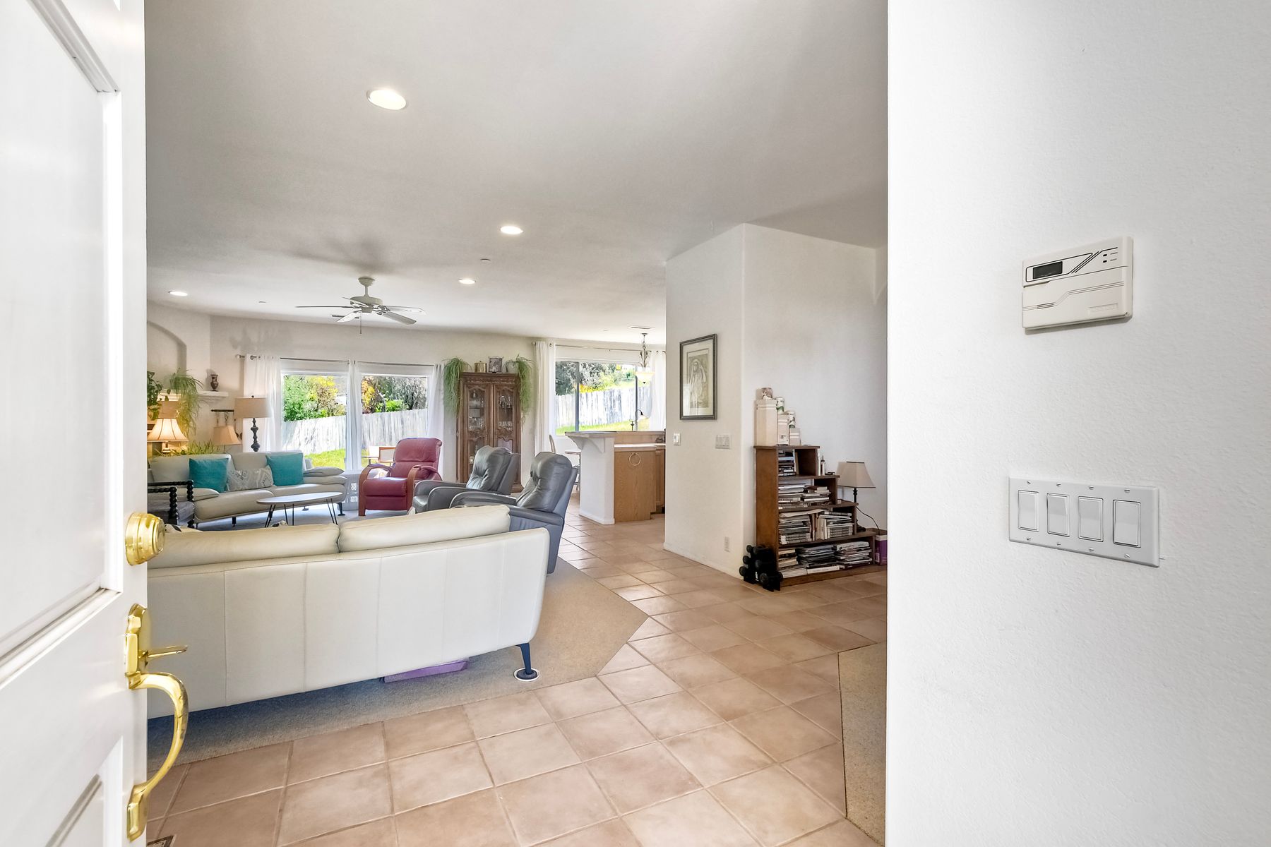 SOPHISTICATED SINGLE-LEVEL RETREAT IN COVETED CALIFORNIA ENCLAVE! Making its market debut! Nestled on a generous 0.67-acre lot where tranquility meets convenience, this custom-crafted single-level sanctuary offers a rare combination of privacy and sophisticated living. The thoughtfully designed floor plan showcases 4 bedrooms and 3 full bathrooms, with an intuitive layout that places the luxurious owner's retreat at one end and a versatile Jack & Jill suite at the opposite wing for optimal privacy. Step inside to discover soaring ceilings, elegant archways, and walls of windows that bathe the interior in California's legendary natural light. The chef's kitchen serves as the home's vibrant heart, seamlessly flowing into inviting family and dining spaces—perfect for both grand entertaining and intimate gatherings. Work-from-home professionals will appreciate the impeccably converted garage bay, now a sophisticated private office with bespoke built-ins, offering endless possibilities for remote work or creative pursuits. The property truly shines outdoors, where lush grounds showcase mature fruit trees (apple, grapefruit, lemon, and loquat), vibrant rose gardens, and multiple storage options. Imagine the possibilities: ample space for vehicles, toys, or future enhancements like a sparkling pool, or recreational court. Savor peaceful moments on the expansive patio overlooking gentle canyon and city vistas, all while enjoying the refreshing coastal breezes that naturally cool this remarkable property. Modern conveniences include owned solar, with no HOA or Mello-Roos fees to burden your ownership. This is California living reimagined—where country tranquility meets urban accessibility. Discerning buyers know properties of this caliber are increasingly rare in today's market. Your legacy home awaits.