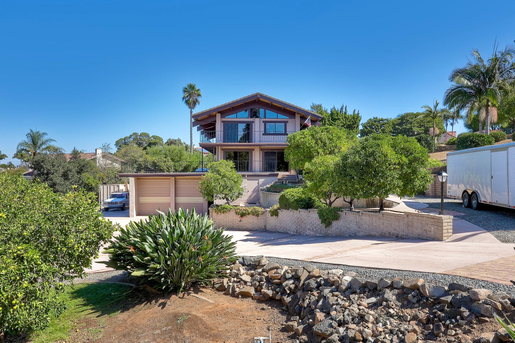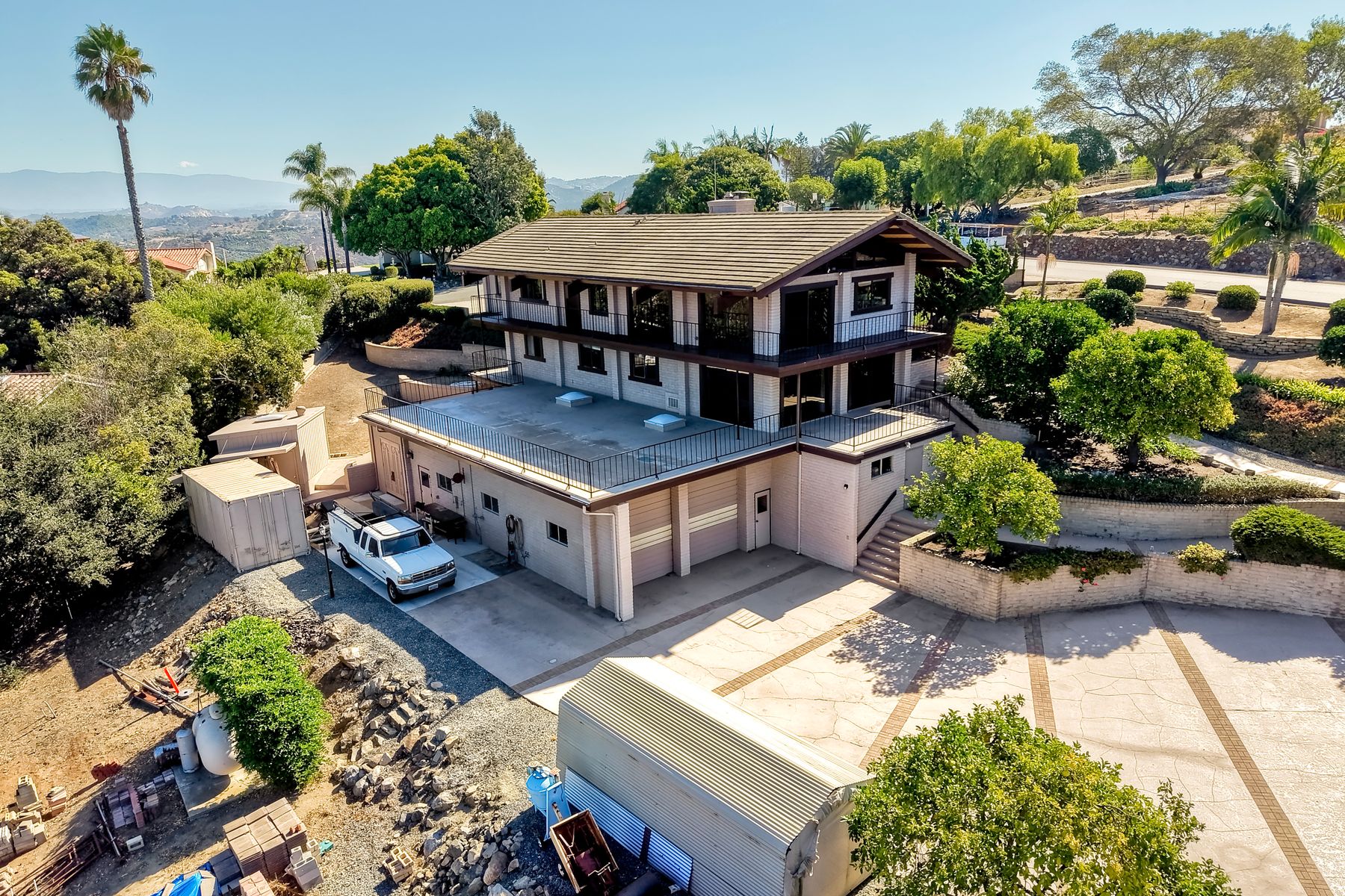 Live in a Master Craftsman’s Dream Home with Sweeping Ocean Views! Looking for a one-of-a-kind home with timeless craftsmanship, incredible views, & space for all your passions? Welcome home to this Vista “Propertunity” — a rare blend of character & functionality that’s nearly impossible to find in San Diego County today. Custom-designed & built by its original owner — a true master craftsman — this residence was created with care, comfort, & connection in mind. Set high on a scenic hillside, it offers breathtaking views stretching from the mountains to Catalina Island, in a peaceful neighborhood known for its ideal year-round climate & sense of community. The ocean views & sunsets are outstanding! With its strong architectural lines, warm natural materials, & thoughtful design, this home offers a Frank Lloyd Wright–inspired look — a timeless aesthetic that blends beautifully with its surroundings. The home’s stone fireplaces were built using rock gathered from the land it sits on — a stunning tribute to craftsmanship & connection to place. Built lovingly to last, this solidly constructed residence offers good sturdy bones & a blank canvas ready for your personal vision & modern updates. The design showcases vaulted wood ceilings, natural finishes, & open, light-filled spaces that flow onto a massive view deck — perfect for relaxing, dining outdoors, or hosting gatherings. Currently configured with 4 spacious bedrooms, the flexible floor plan offers options for up to 6 bedrooms within the home’s original design. The expansive lower-level room can easily be divided into 2 rooms, & the primary suite’s windowed walk-in closet — originally designed as a bedroom — can be reconverted if desired. The garage & workshop spaces are unmatched. The double RV garage features 2 oversized roll-up doors approximately 11 feet tall, interior ceilings even higher, & about 40 feet of depth — ideal for RVs, boats, or multiple vehicles — plus a ¾ bath & abundant workshop space filled with natural light. A detached upper 2-car garage with vaulted wood ceilings provides additional parking or hobby or office space, with potential for conversion into a guest suite with 7th bedroom, studio, or ADU (subject to permits). No HOA & no Mello-Roos! Outside, enjoy fruit-bearing trees including oranges, lemon, lime, grapefruit, & even macadamia nuts. A circular paver driveway, manicured landscaping, & owned solar panels make this property as practical as it is beautiful. Located near Vista’s revitalized downtown, local wineries, farm stands, the Moonlight Amphitheatre, shopping, & dining & only 20 minutes to the beach this home offers a rare combination of privacy, potential, & convenience. Termite, septic, & home inspections are already completed & available for review — giving you peace of mind as you envision your life in this beautiful one-of-a-kind home.