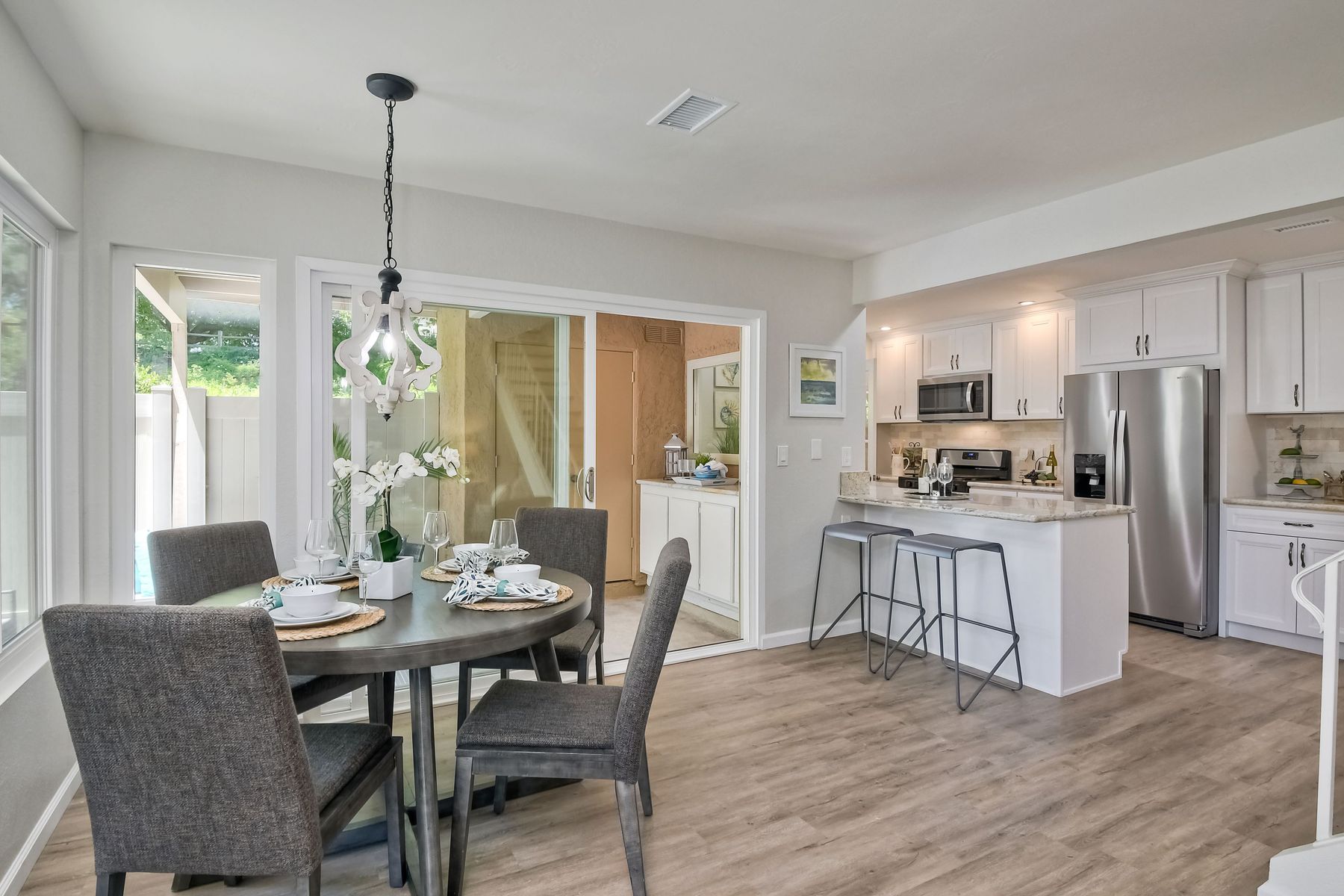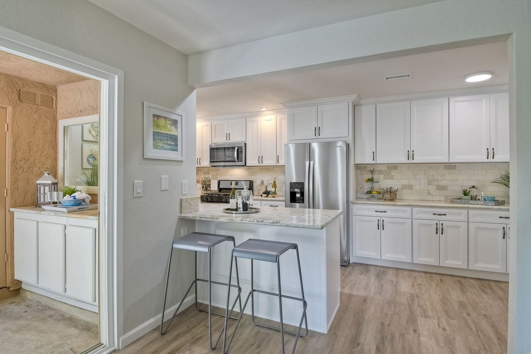 SPECTACULAR RENOVATIONS! Just completed. NEW for YOU! VIBRANT light interior. Rich, green foliage view from every window. Townhome style end unit (nobody above/ below). Dream kitchen with immense counter/ cabinet space. NEW appliances (including new refrigerator with water/ice). 2nd HUGE bedroom option to be divided into 2nd & 3rd bedroom by adding wall/door. Downstairs 8x5 room storage/hobby/office. EXQUISITE LOCATION! Serene/ peaceful back location surrounded by lush, mature trees. YES 2 car garage! SUPERIOR FLOOR PLAN... open / light / bright with oodles of space. See original builder floor plan option as MASTER BEDROOM and HUGE LEISURE ROOM or MASTER BEDROOM and smaller 2nd and 3rd bedrooms. Currently HUGE LEISURE ROOM. PERFECT for roommate (2 large bedrooms), makes a gorgeous office/work environment, kid(s) room with plenty of space to spread out and play, etc. Wall / door / closet can be installed to change option to 2nd & 3rd bedrooms.. Neighborhoods: Village Park Complex Features: ,,, Equipment: Garage Door Opener, Range/Oven Other Fees: 36 Sewer: Sewer Connected Topography: LL Frontage: Open Space