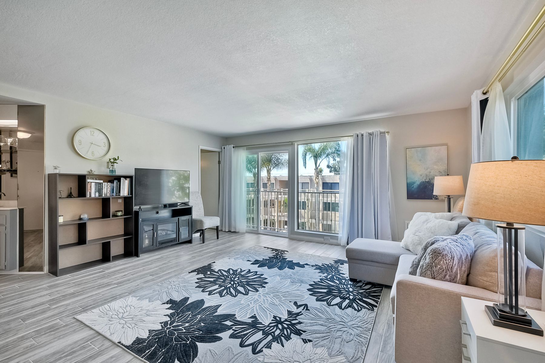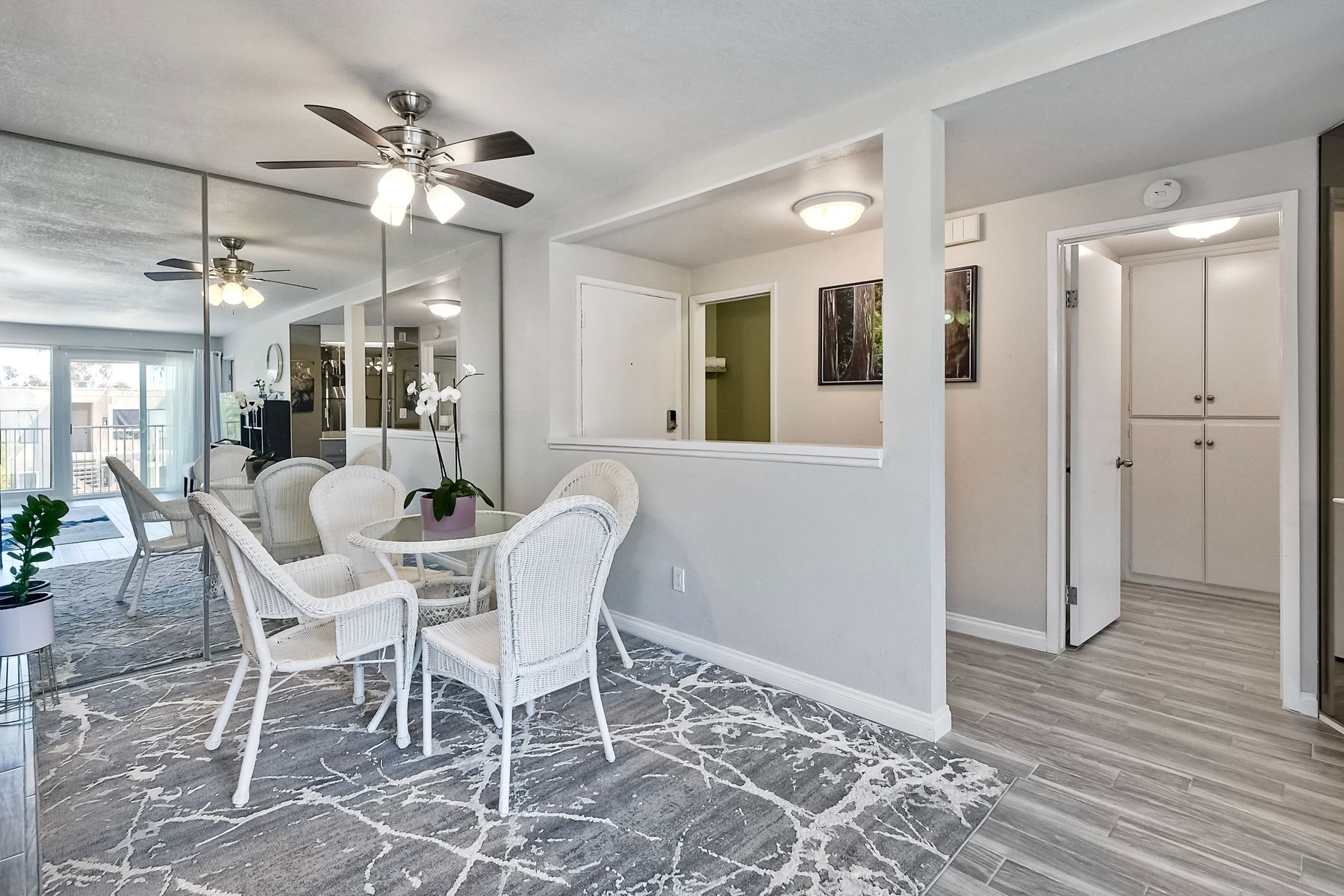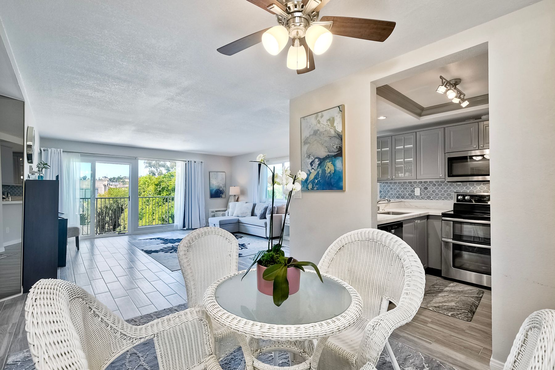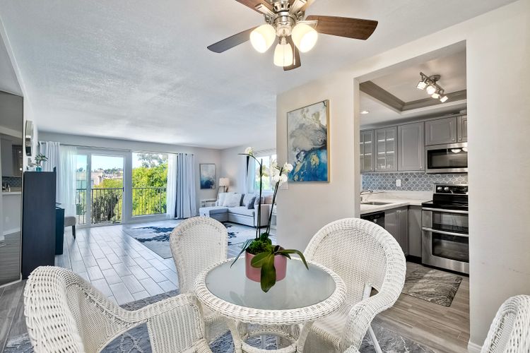 Priced to sell! Discover the lifestyle of modern Carlsbad living in the highly sought-after community of Tres Verde in La Costa. This stunning condo, located on the 2nd floor of an end unit, offers a single-level layout designed for comfort and style. The open floorplan is accentuated by dual pane windows and a charming wet bar, perfect for entertaining. Step into the updated kitchen, featuring newer stainless steel appliances, a beautiful lantern tile backsplash, soft grey cabinetry, and a breakfast counter that seamlessly opens into the living room. The living area extends to a balcony that overlooks the community pool and jacuzzi, providing a serene setting for relaxation. The spacious primary bedroom features dual closets and a beautifully updated en-suite bathroom with a walk-in shower. An additional updated bathroom adds to the condo's appeal. This unit includes one assigned space in the underground garage and offers guest parking for your convenience. The community amenities are exceptional, with a sparkling pool, spa, and laundry facility. Plus, pets are welcome in this community! The monthly HOA fee covers your trash, water and common area maintenance. Located in one of the best school districts, this condo is just minutes away from shopping, dining, parks, golf amenities, hiking trails, Omni Resort & Spa, Interstate 5, and less than 4 miles from the ocean. Don’t miss out on this incredible opportunity to enjoy the best of La Costa living!