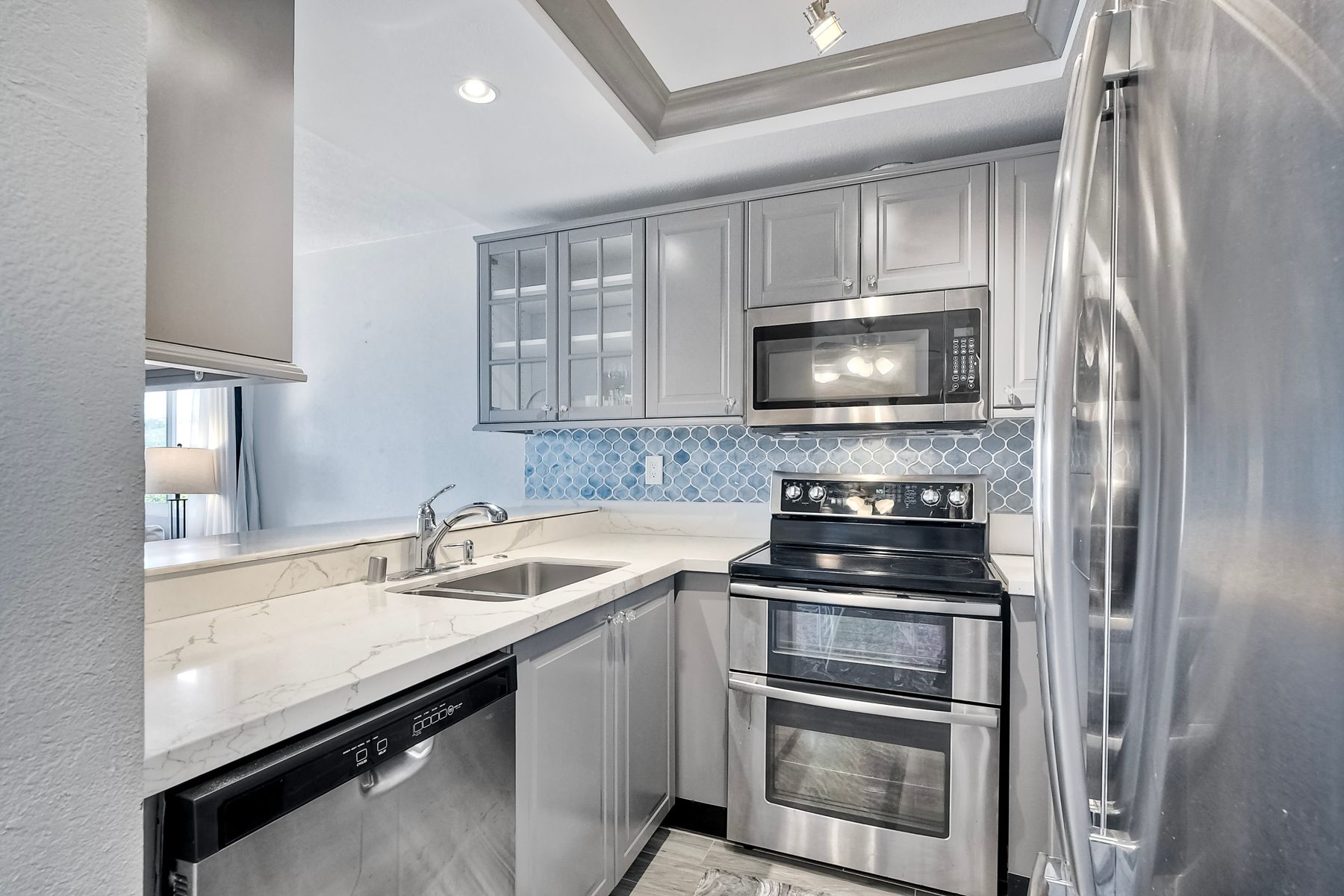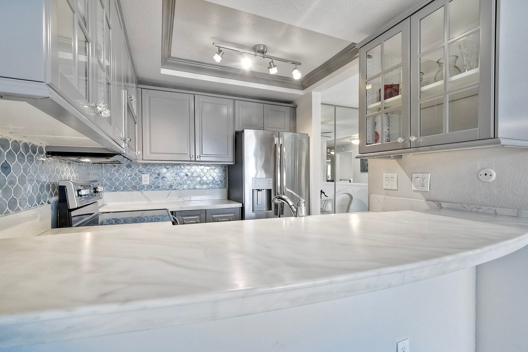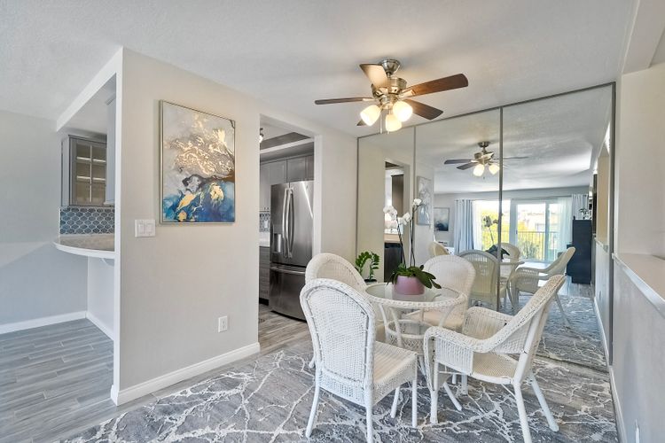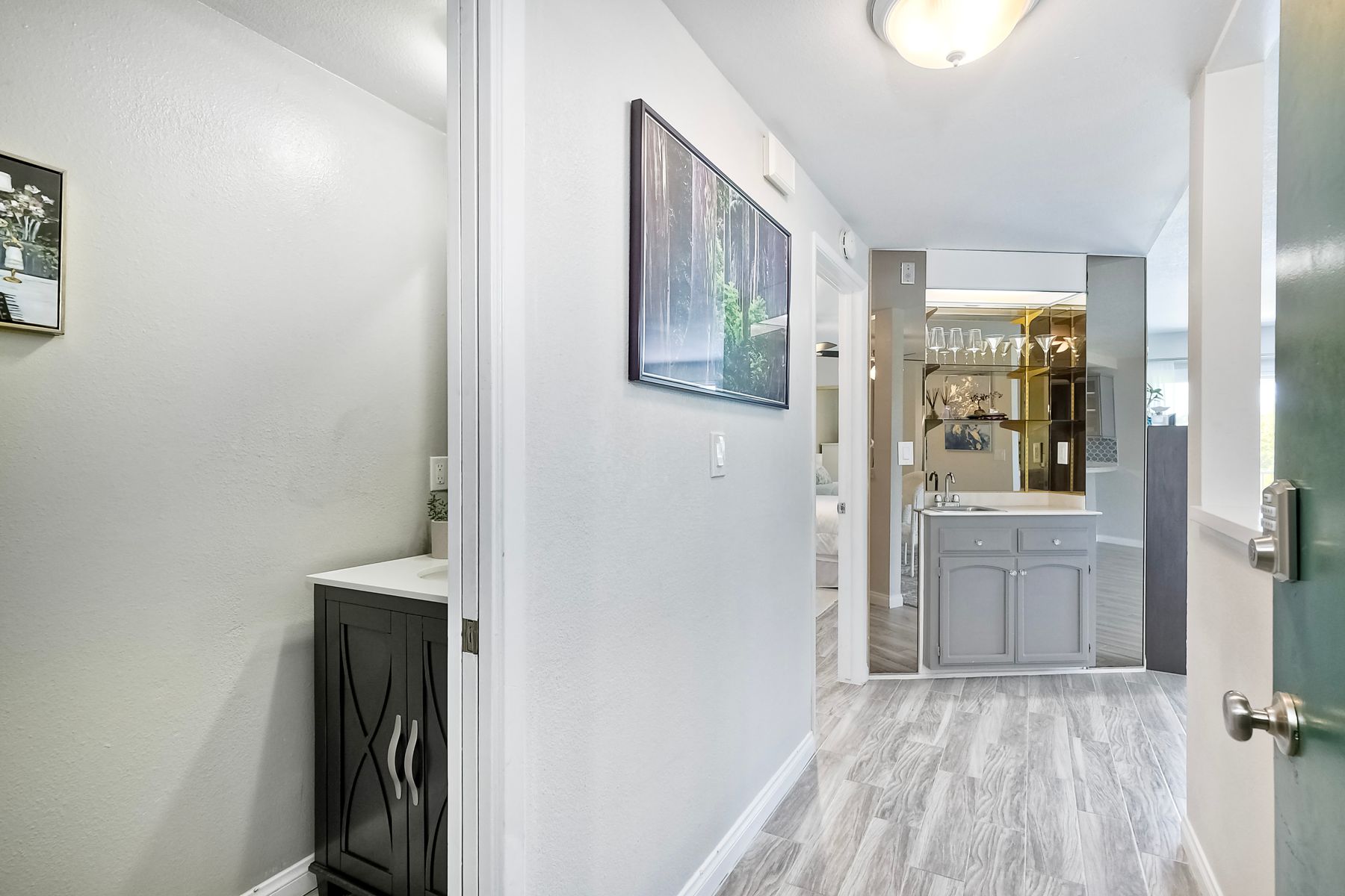 Priced to sell! Discover the lifestyle of modern Carlsbad living in the highly sought-after community of Tres Verde in La Costa. This stunning condo, located on the 2nd floor of an end unit, offers a single-level layout designed for comfort and style. The open floorplan is accentuated by dual pane windows and a charming wet bar, perfect for entertaining. Step into the updated kitchen, featuring newer stainless steel appliances, a beautiful lantern tile backsplash, soft grey cabinetry, and a breakfast counter that seamlessly opens into the living room. The living area extends to a balcony that overlooks the community pool and jacuzzi, providing a serene setting for relaxation. The spacious primary bedroom features dual closets and a beautifully updated en-suite bathroom with a walk-in shower. An additional updated bathroom adds to the condo's appeal. This unit includes one assigned space in the underground garage and offers guest parking for your convenience. The community amenities are exceptional, with a sparkling pool, spa, and laundry facility. Plus, pets are welcome in this community! The monthly HOA fee covers your trash, water and common area maintenance. Located in one of the best school districts, this condo is just minutes away from shopping, dining, parks, golf amenities, hiking trails, Omni Resort & Spa, Interstate 5, and less than 4 miles from the ocean. Don’t miss out on this incredible opportunity to enjoy the best of La Costa living!
