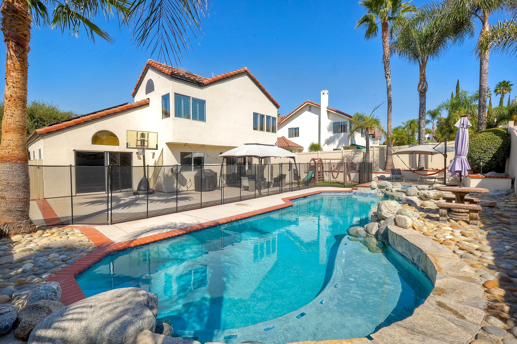 This turnkey POOL Home is ready for YOU!!!! Don't miss out on this 3 Bedroom, 2 1/2 Bath 1,912 Sq Ft home with an additional converted office and sewing room (5 Rooms total). Located in Central Murrieta, this gorgeous home features more than $75,000 in upgrades in the last 24 months. The curb appeal is dialed in with drought tolerant landscape, new surfacing on the pool, and newer exterior paint. Courtyard entry that opens up to the formal living room w/ soaring ceilings, Porcelain tile wood floors and cozy fireplace. The family room also features a fireplace with custom tile surround mantel, and plantation shutters. Pool equipment has been upgraded with Bluetooth technology for the pool at the palm of your hands. A safety pool fence has been installed and can easily be removed. Electric hook up for your vehicle is ready and this home has a new Tesla Wall Battery installed along with a 30 Panel Solar System (Buyer to assume Solar Lease of $249) New Water Softener System, Epoxy Floor in Garage and upgraded drywall and painting in the Garage. An upgraded Chefs kitchen awaits you with new basin sink, featuring stainless steel appliances, upgraded hood range and pantry. Enjoy warm summer days in the sparkling POOL AND SPA, large artificial turf area, and patio. New HVAC, tankless water heater, roof, and to many things to list. Need storage? This home features a 3-car garage w/ plenty of storage space. There is NO HOA, very LOW tax rate and close to shopping, dining, entertainment and easy freeway access. Feeds into highly rated schools. ** Check out the walkthrough video for more**