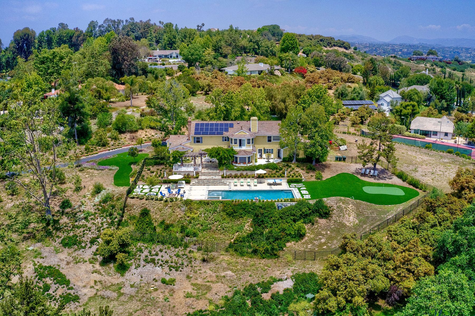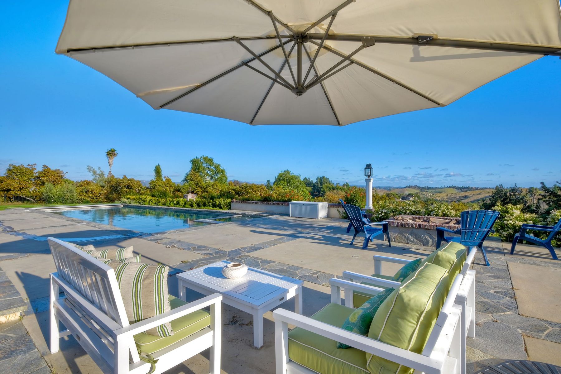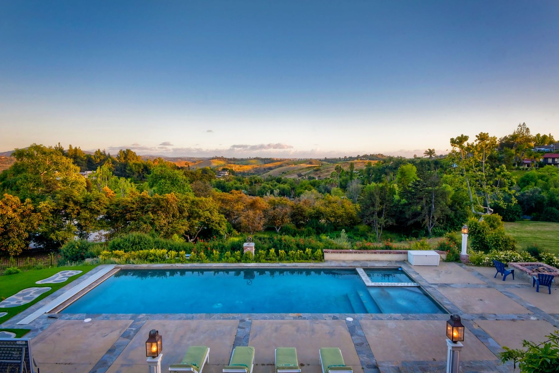 Resort living every day in Rolling Hills Estates, Fallbrook! Check out virtual tour and walk through video! Premier elevated lot to enjoy 360 degree panoramic views, privacy, an inviting sparkling salt water pool and spa, golf putting green, fully paid solar and a water well that covers all outdoor irrigation costs! Multiple balconies and slate stone patios for lots of outdoor entertaining and relaxing! 2.63 acres of usable land with room to build a guest house, detached garage, workshop, sport court. Open concept, chef's quality kitchen with amazing views featuring a Dual Sub Zero Refrigerator/Freezer and Dacor appliances, granite counters, expansive island with extensive storage and gorgeous wood flooring. Rolling Hills features 24-7 guard gated security, a clubhouse, 3 lighted tennis courts, horse and walking trails, RV storage. See virtual walk through tour! Amazing sunsets!