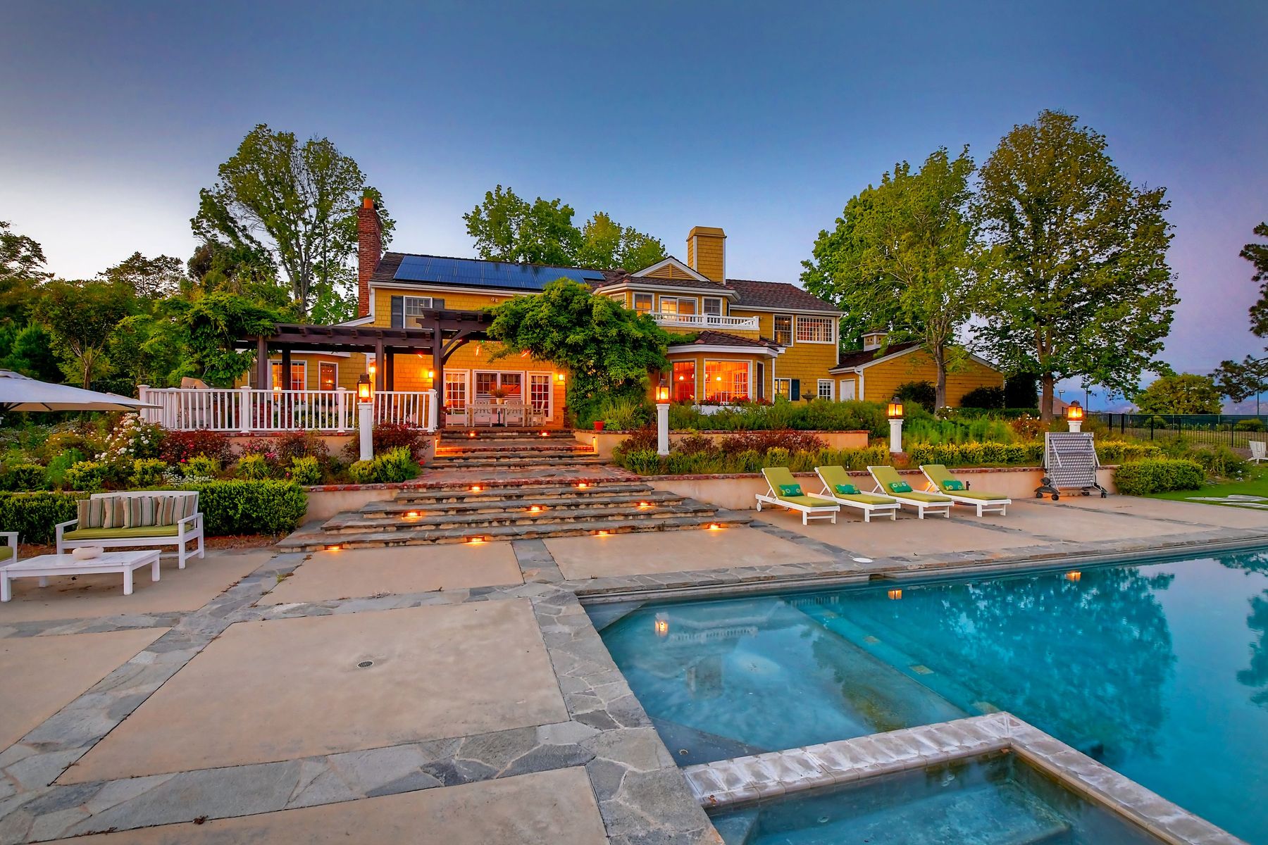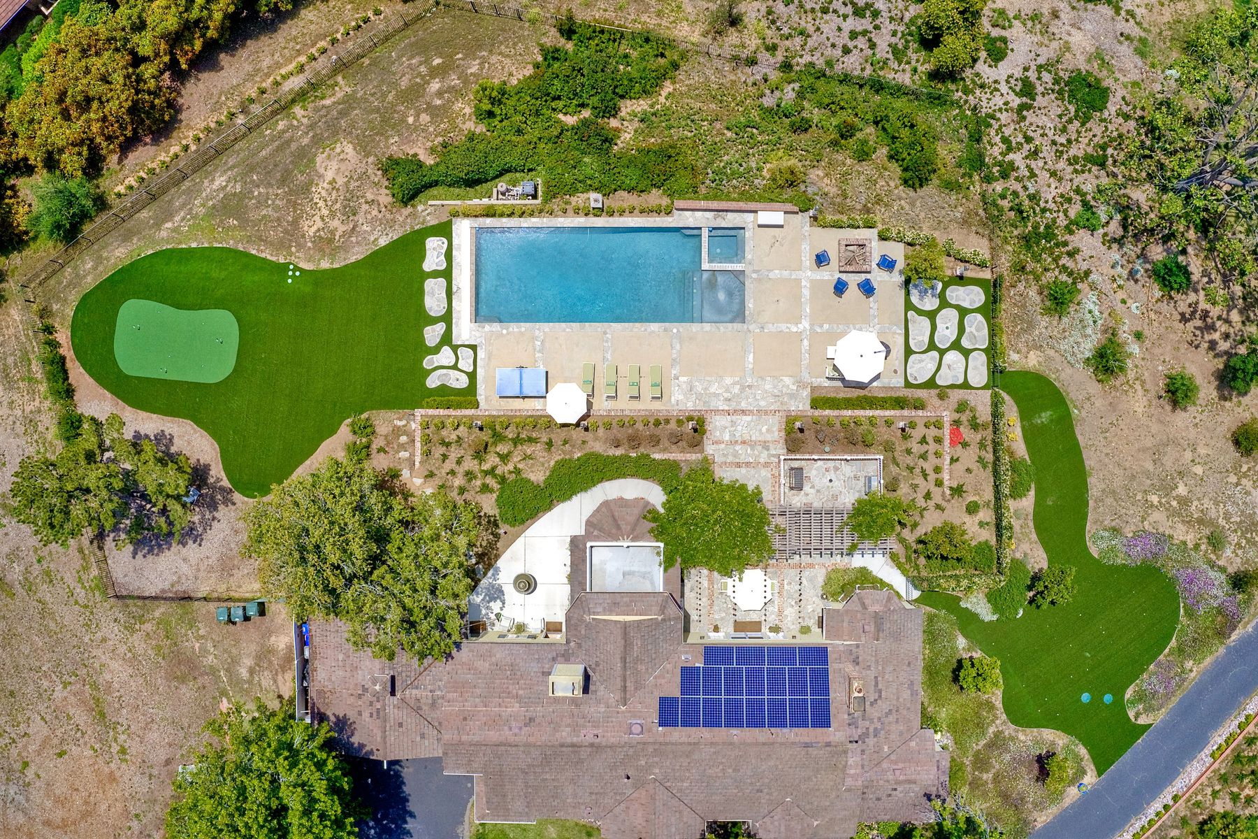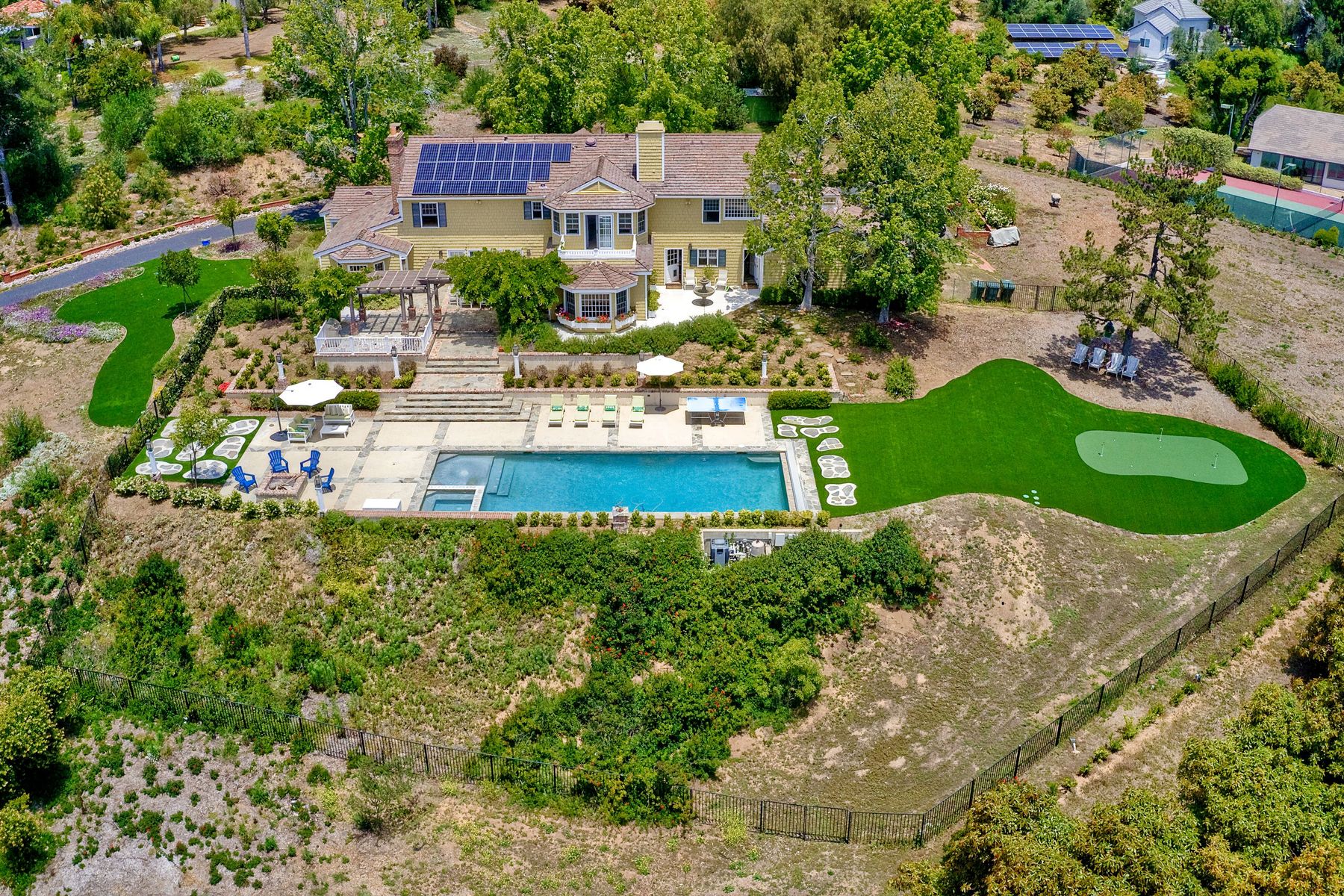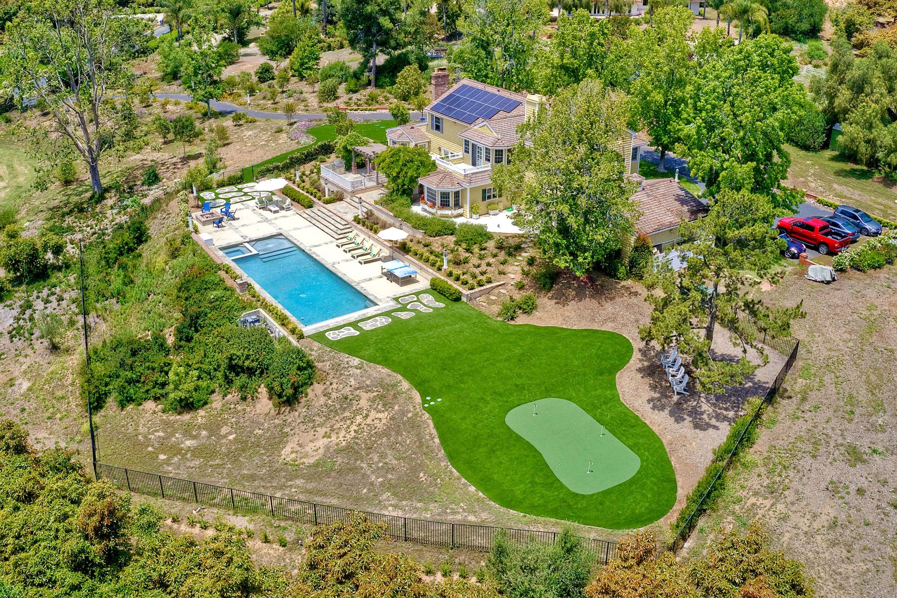 Resort living every day in Rolling Hills Estates, Fallbrook! Check out virtual tour and walk through video! Premier elevated lot to enjoy 360 degree panoramic views, privacy, an inviting sparkling salt water pool and spa, golf putting green, fully paid solar and a water well that covers all outdoor irrigation costs! Multiple balconies and slate stone patios for lots of outdoor entertaining and relaxing! 2.63 acres of usable land with room to build a guest house, detached garage, workshop, sport court. Open concept, chef's quality kitchen with amazing views featuring a Dual Sub Zero Refrigerator/Freezer and Dacor appliances, granite counters, expansive island with extensive storage and gorgeous wood flooring. Rolling Hills features 24-7 guard gated security, a clubhouse, 3 lighted tennis courts, horse and walking trails, RV storage. See virtual walk through tour! Amazing sunsets!