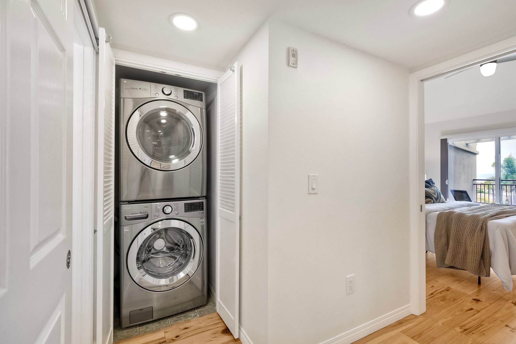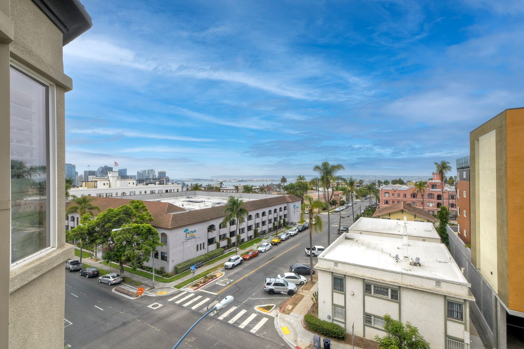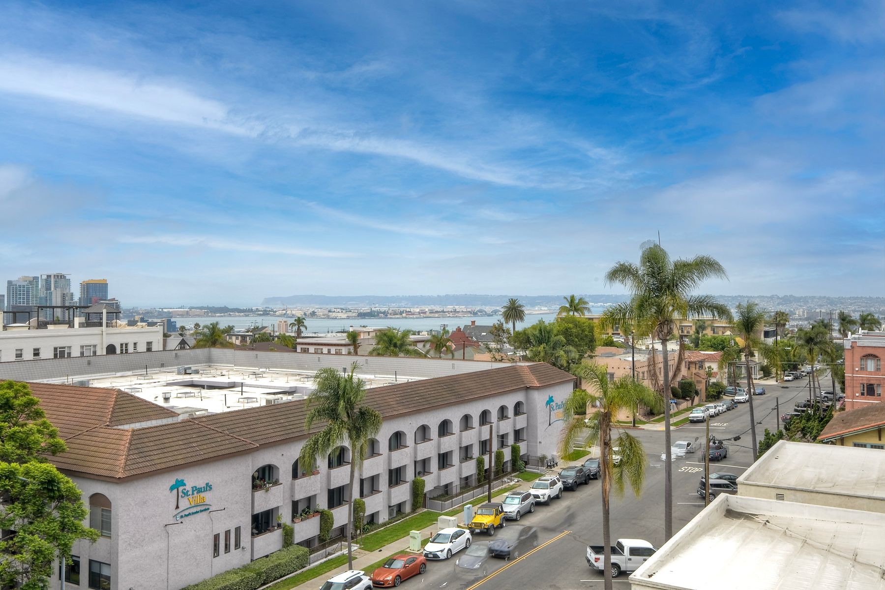 Premier Bay Views in the Heart of Bankers Hill. This top-floor residence at Laurel Bay offers sweeping westerly views of San Diego Bay and the city skyline from one of the community’s most desirable locations. Thoughtfully renovated, the home features an upgraded kitchen, refreshed bathrooms, new flooring, and fresh paint, creating a move-in-ready space with modern style. The open main level flows seamlessly from the updated kitchen to a bright living area with spectacular sunset views. Upstairs, the versatile loft -complete with its own en suite bathroom and closet - is ideal as a guest suite, home office, or additional bedroom. Additional highlights include two dedicated parking spaces, in-unit laundry, and access to Laurel Bay’s resort-style amenities with pool and gym. Located just steps from Balboa Park, Little Italy, the Gaslamp Quarter, and San Diego’s best dining, shopping, and entertainment. Enjoy the perfect blend of urban convenience, modern upgrades, and breathtaking views in this exceptional home.