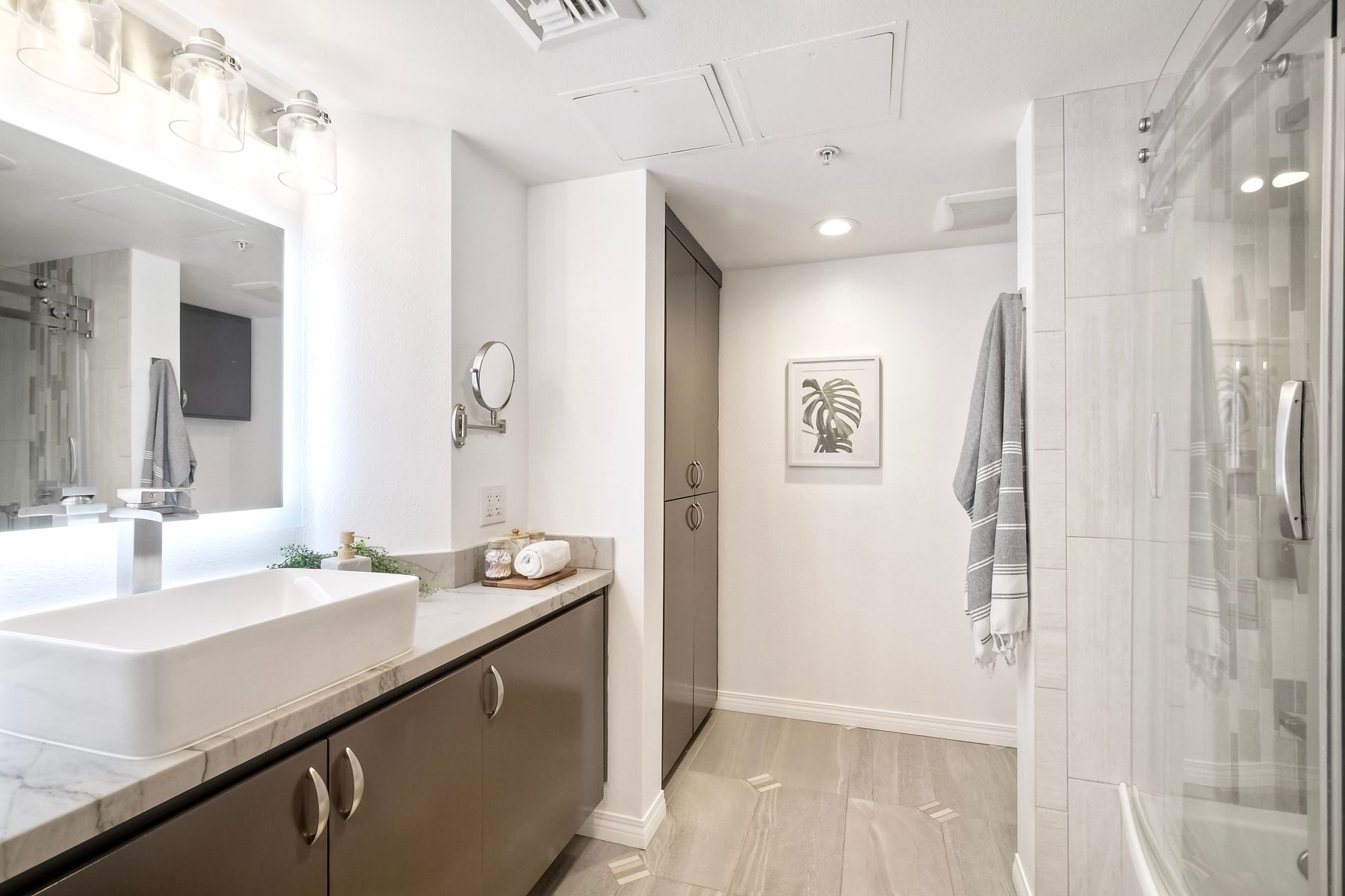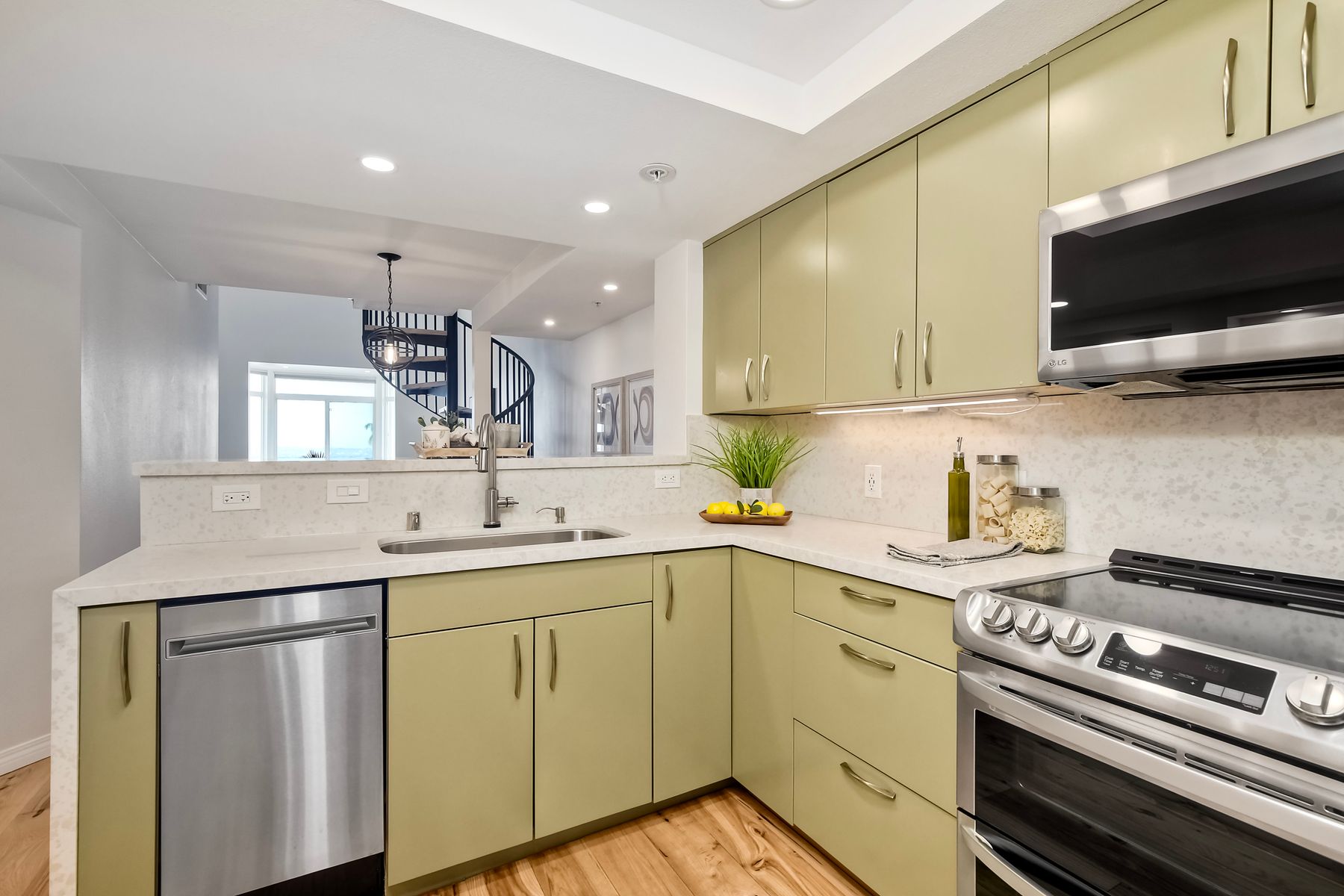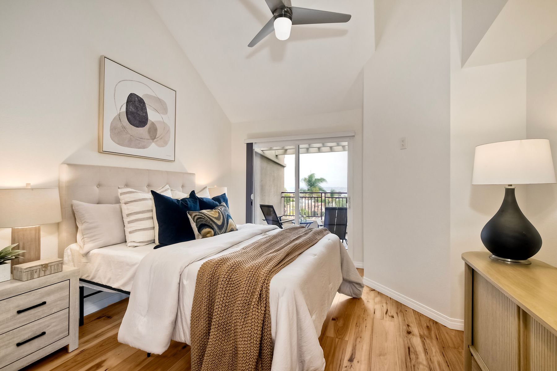 Premier Bay Views in the Heart of Bankers Hill. This top-floor residence at Laurel Bay offers sweeping westerly views of San Diego Bay and the city skyline from one of the community’s most desirable locations. Thoughtfully renovated, the home features an upgraded kitchen, refreshed bathrooms, new flooring, and fresh paint, creating a move-in-ready space with modern style. The open main level flows seamlessly from the updated kitchen to a bright living area with spectacular sunset views. Upstairs, the versatile loft -complete with its own en suite bathroom and closet - is ideal as a guest suite, home office, or additional bedroom. Additional highlights include two dedicated parking spaces, in-unit laundry, and access to Laurel Bay’s resort-style amenities with pool and gym. Located just steps from Balboa Park, Little Italy, the Gaslamp Quarter, and San Diego’s best dining, shopping, and entertainment. Enjoy the perfect blend of urban convenience, modern upgrades, and breathtaking views in this exceptional home.