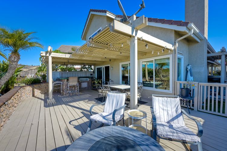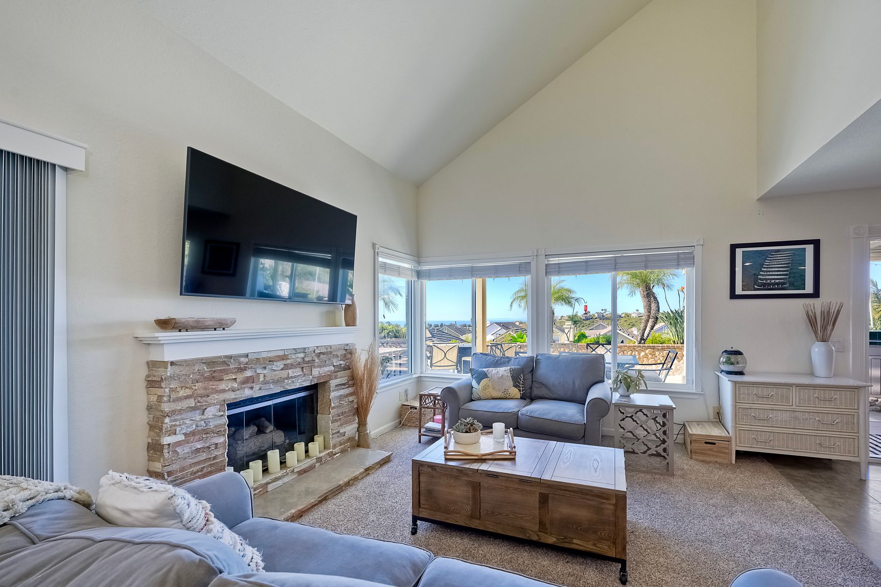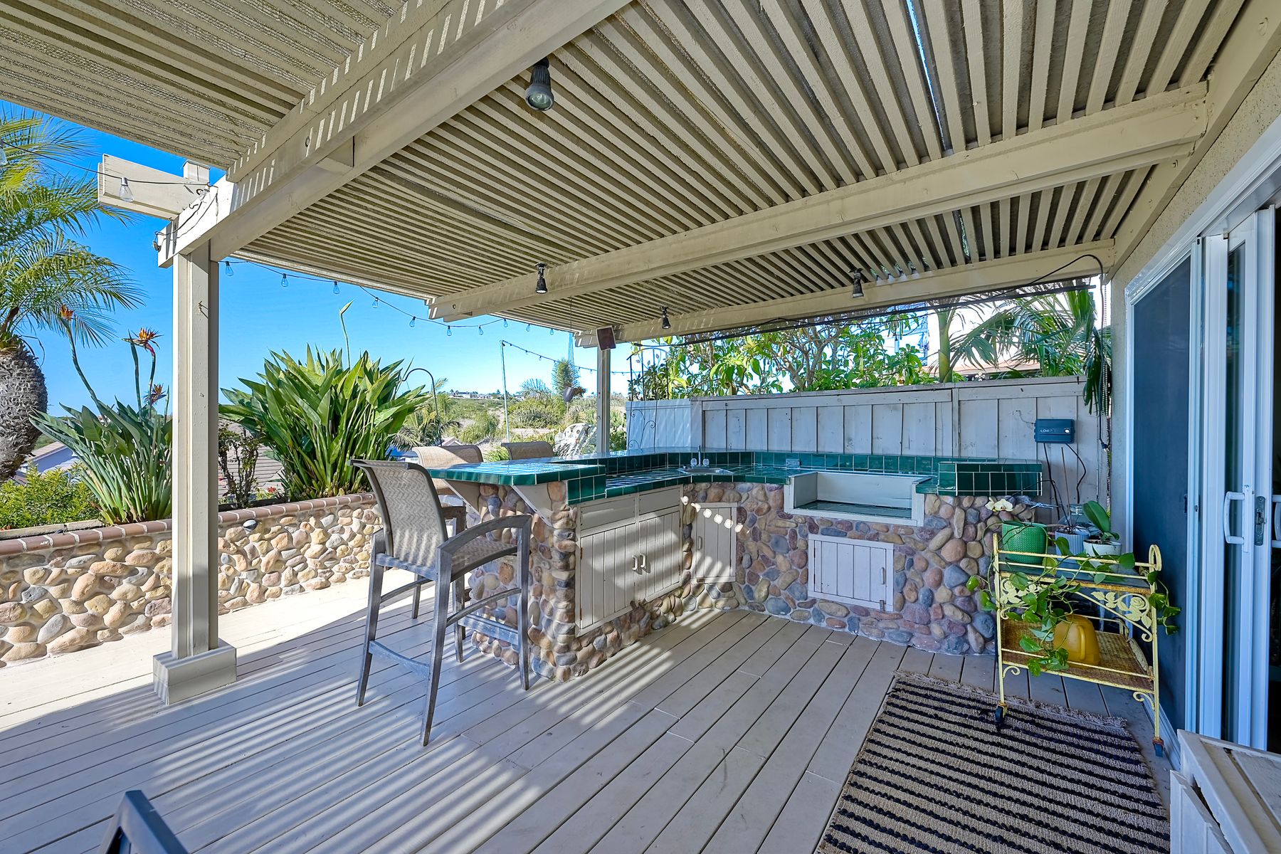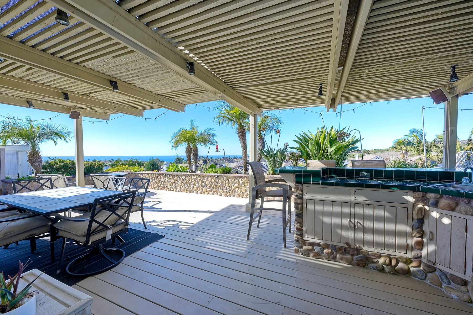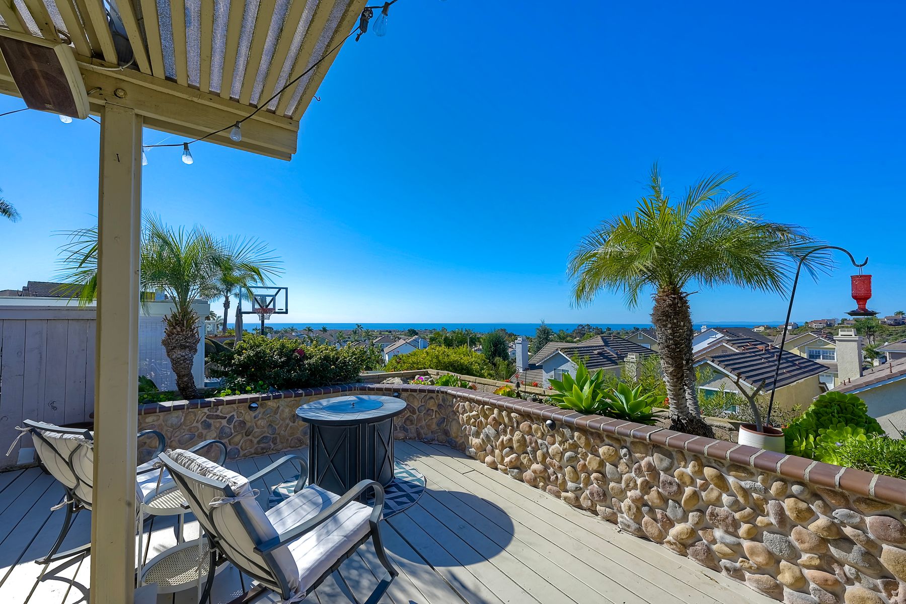 MESMERIZING & PANORAMIC 180 DEGREE SIT-DOWN OCEAN VIEWS FROM ALL MAIN LIVING AREAS, KITCHEN & PRIMARY BEDROOM! INCREDIBLE & UNBLOCKABLE OCEAN, CATALINA ISLAND, SAN CLEMENTE ISLAND, HILLSIDES & CITY LIGHT VIEWS! DRAMATIC & ENTRANCING SUNSETS WILL BE YOUR’S EVERY EVENING! ENJOY CA/COASTAL LIFESTYLE IN THIS ENTRANCING HOME. THE EXPANSIVE REAR YARD DECK PROVIDES A FULLY COVERED LANAI STYLE PATIO, COULD EASILY BE TRANSFORMED INTO AN OUTDOOR LIVING ROOM/KITCHEN. REAR YARD INCLUDES A SPARKLING & NEWLY REFURBISHED CUSTOM ISLAND W/SINK & ROOM FOR BARSTOOLS, CUSTOM LIGHTING, PEBBLE FACED RAISED GARDENS, AMPLE ROOM FOR ENTERTAINING, ALL WITH OCEAN VISTAS. THE REAR YARD WRAPS AROUND TO LARGE SIDE YARD WITH DECK & SLIDING SIDE DOOR INTO HOME, A CONVENIENT AREA FOR BBQ. SIDE YARD STRETCHES FORWARD TO THE CAPTIVATING FRONT COURTYARD, OFFERING A GATED & VERY PRIVATE SHADED ENTRY PATIO, OFFERING TROPICAL STYLE ROCK SURROUNDED POND & GARDEN. FROM THIS TRANQUIL SETTING, STEP INTO THE HOME WITH ENTRANCING OCEAN VIEWS SETTING THE MOOD FOR A HARMONIOUS & RELAXING LIFESTYLE. THE INVITING LIVING ROOM PROVIDES A DRAMATIC STACKED STONE FIREPLACE & IS ADJACENT TO A LARGE DINING ROOM, BOTH AREAS OFFER EXPANSIVE NEARLY FLOOR TO CEILING WINDOWS, FILLED WITH BLUE PACIFIC VIEWS. A SLIDING DOOR OPENS TO THE REAR PATIO & BOTH ROOMS OPEN TO THE WELL DESIGNED KITCHEN, YIELDING GRANITE COUNTERS*CUSTOM CABINETRY* GLASS FRONT ACCENT CABINETS*STONE TILE BACKSPLASH*STAINLESS APPLIANCES*CONVENIENT PANTRY & LARGE BREAKFAST BAR. ALL AREAS CREATE ONE SPECTACULAR LIVING SPACE! BEYOND KITCHEN FIND LAUNDRY ROOM WITH DIRECT ACCESS GARAGE. THE VERY PRIVATE PRIMARY BEDROOM SITS APART FROM THE 2 GUEST ROOMS & PROVIDES ENSUITE BATH, WALK-IN WARDROBE & VERY STRIKING OCEAN VISTAS. GENEROUS SECONDARY BEDROOMS OFFER FULL GUEST BATH ALL BATHS OFFER GRANITE COUNTERS, NEWER HARDWARE & CABINETRY & LIGHTING.