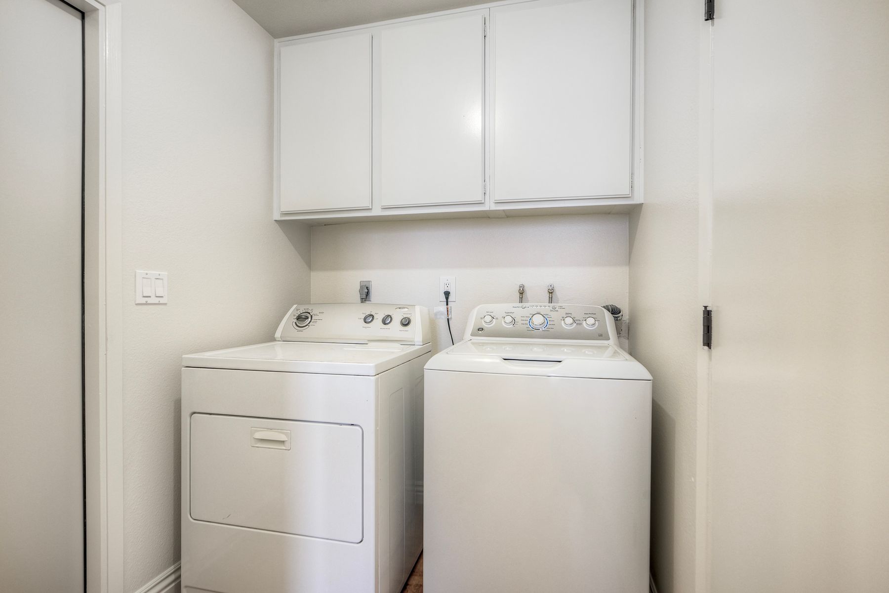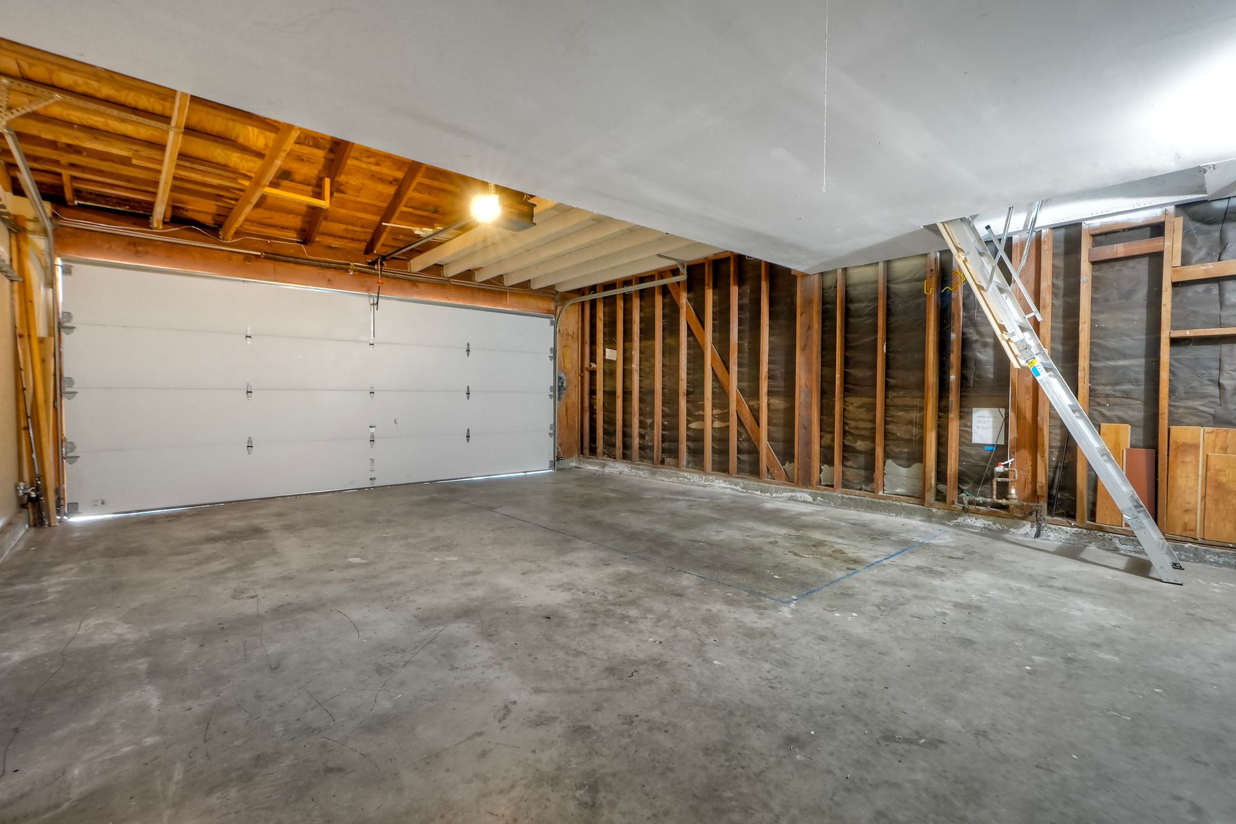 The two-car garage has a pull-down storage area that can also double as a playroom.
