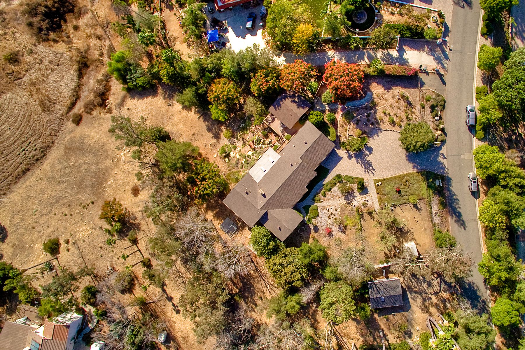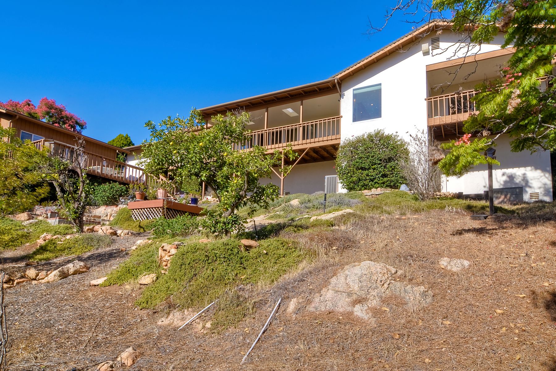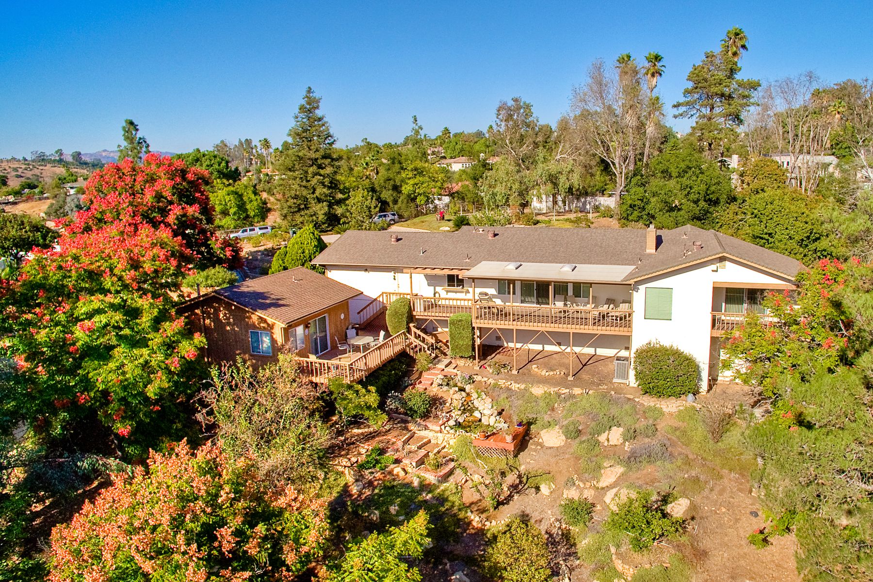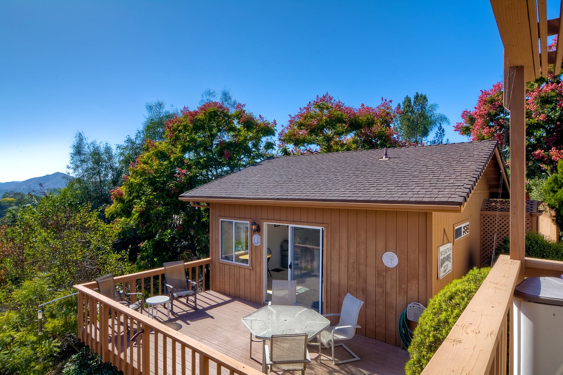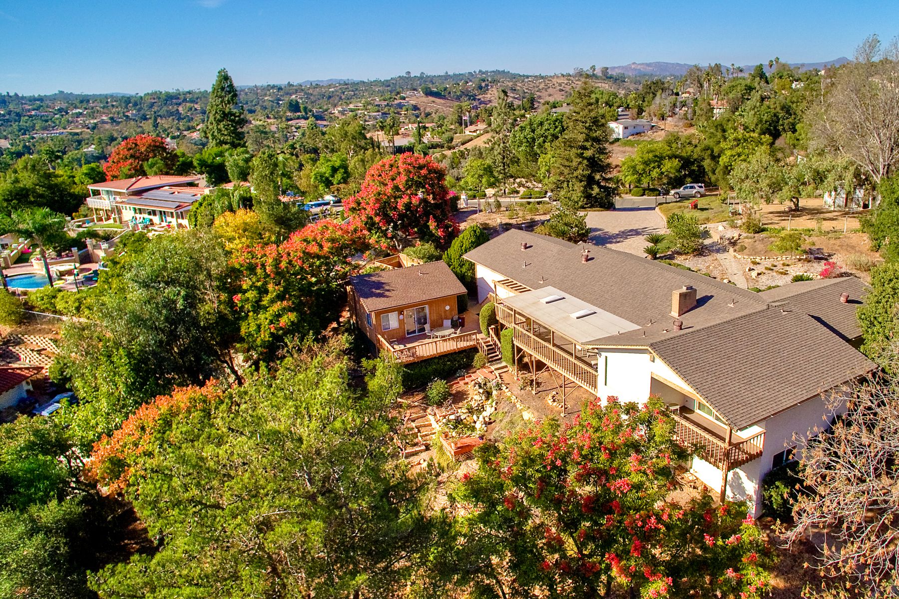 Panoramic Views! Set on over an acre of usable front and rear lot! This home is a gated estate with room for RV and off street parking! Exceptional yard has room for a pool! 3 bedrooms plus a Casita/Studio with private entrance. Home has been well maintained with newer HVAC system, updated bathrooms, lives like a single level with just a sunken formal living room! The subfloor hosts a workshop or possible wine cellar! Lots of exterior decking to take advantage of the private backyard! Very Clean Home! Estate like home set on over an acre! Don't miss this great opportunity! Well cared for home with Casita! Large usable front and back yard, RV parking, driveway finished in pavers! Fenced yard.