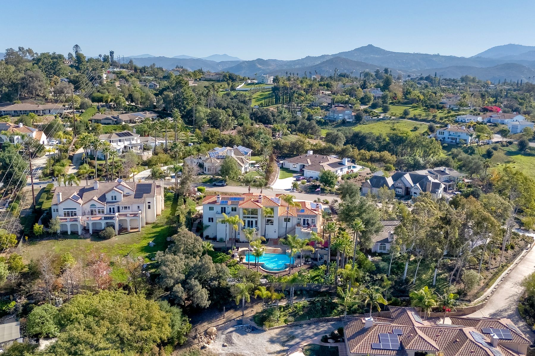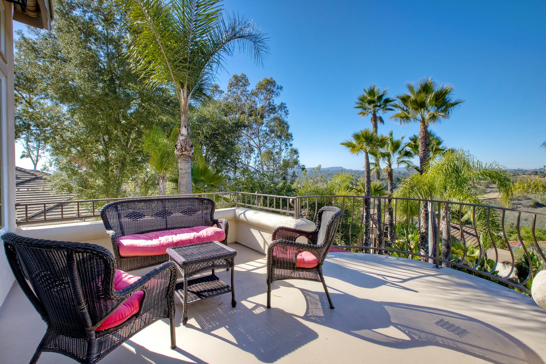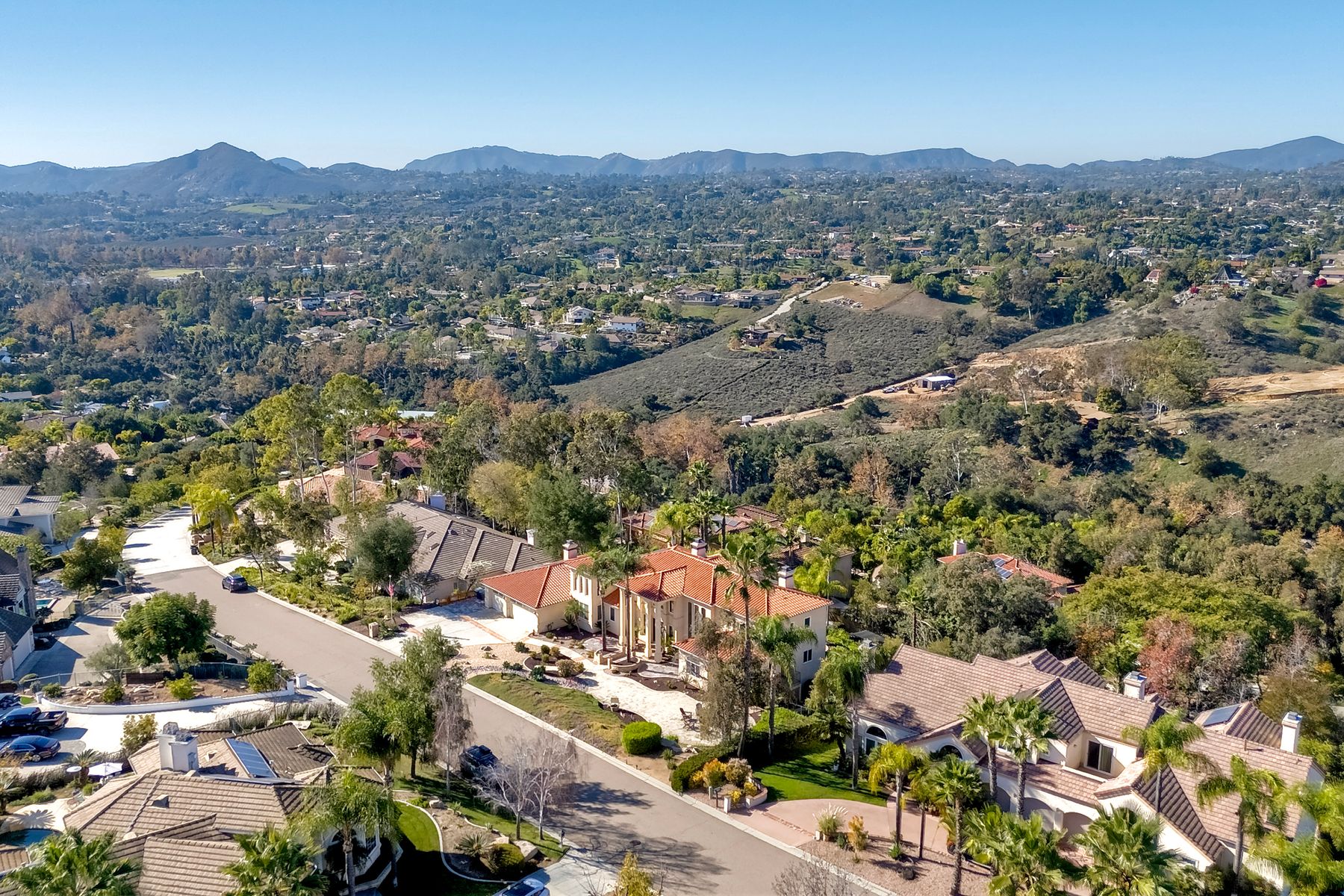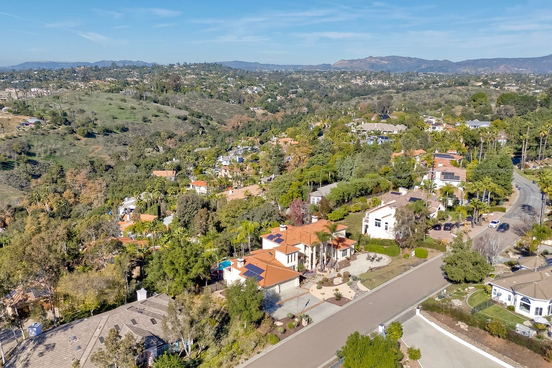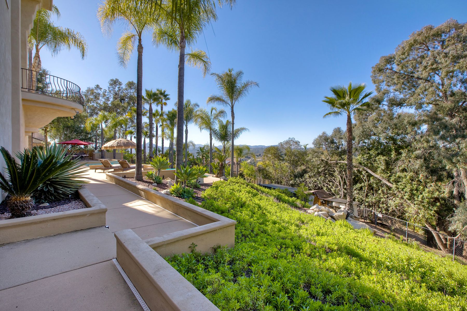 This Canyon View Estates home is situated on a ½-acre elevated premium lot, offering breathtaking panoramic sunset views. With over $250,000 in upgrades, this meticulously maintained residence is truly move-in ready. Notable improvements include a 27-panel owned solar system installed in 2018, newer windows, a new dual-fuel heat pump and air conditioning system, and new roof tiles and underlayment with added bird stops and fire-resistant paper installed July 2025. Additional highlights include split mini heat/air units in the primary bedroom and garage, solar window tinting to reduce summer heat, drought-tolerant landscaping, plantation shutters, travertine and hardwood flooring, granite countertops, a built-in refrigerator, wainscoting, and three fireplaces with glass doors. The home also features electric solar fabric blinds on rear windows, an awning over the kitchen deck, a bonus loft/office area, and a spacious triple garage with quiet motors and MyQ remote access. All garage doors are insulated. Upon entry, you’re greeted by soaring 19-foot ceilings, expansive living spaces, and large picture windows that flood the home with natural light. The primary suite is a true retreat, featuring vaulted ceilings with exposed beams, a dual-sided fireplace, private view balcony, generous walk-in closet, dual vanities, soaking tub, and a walk-in shower with frameless glass enclosure. The backyard is designed for resort-style living, showcasing a vanishing-edge salt water pool and spa, lush tropical landscaping, built-in barbecue, and expansive deck areas ideal for entertaining or relaxing. A downstairs bathroom provides convenient access for poolside enjoyment. Additional features include a fully wired alarm system, smart smoke detectors, and numerous smart-home upgrades throughout. Canyon View Estates is highly sought after for its scenic views, rolling topography, and generous lot sizes. Ideally located near Orfila Winery, San Diego Zoo Safari Park, Vineyards Golf Course, Lake Hodges, Kit Carson Park, shopping, and freeway access. Assigned schools include L.R. Green Elementary, Bear Valley Middle School, and San Pasqual High School.