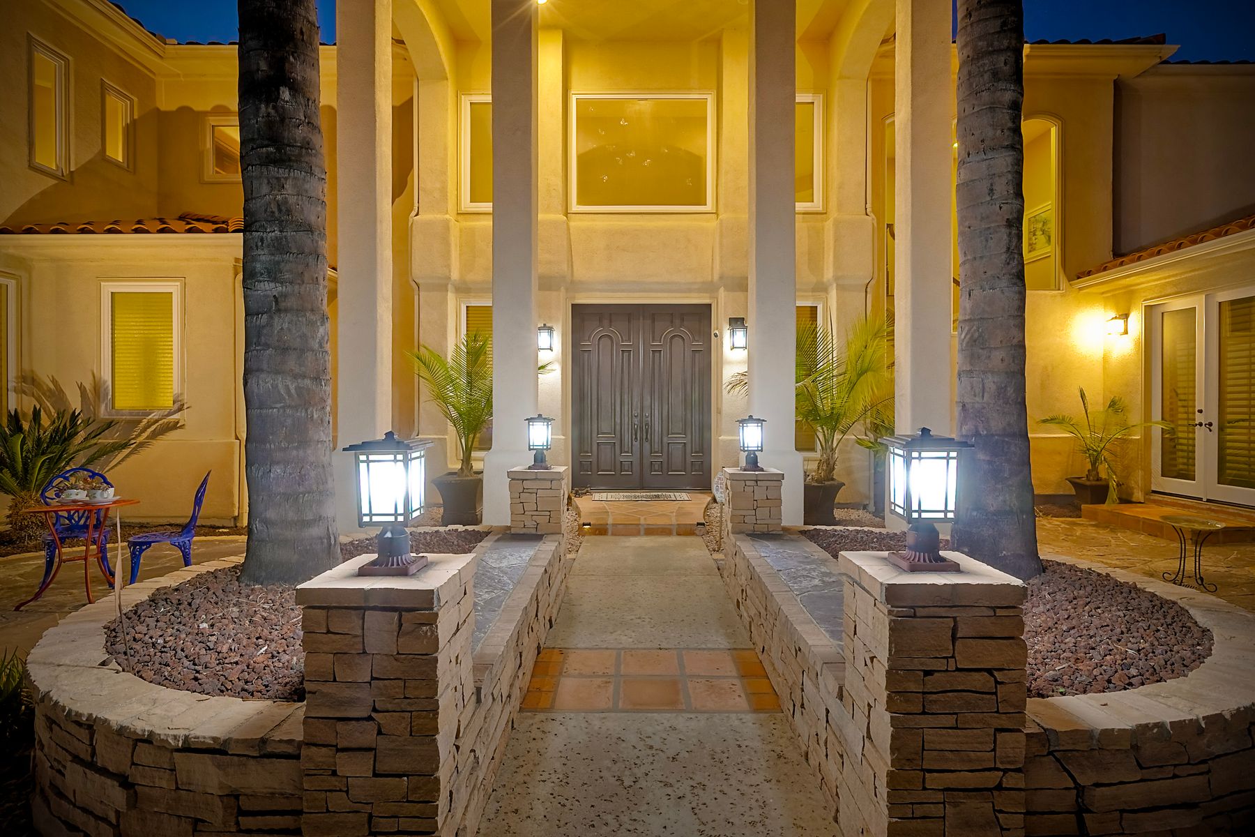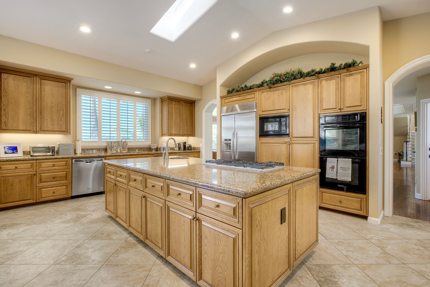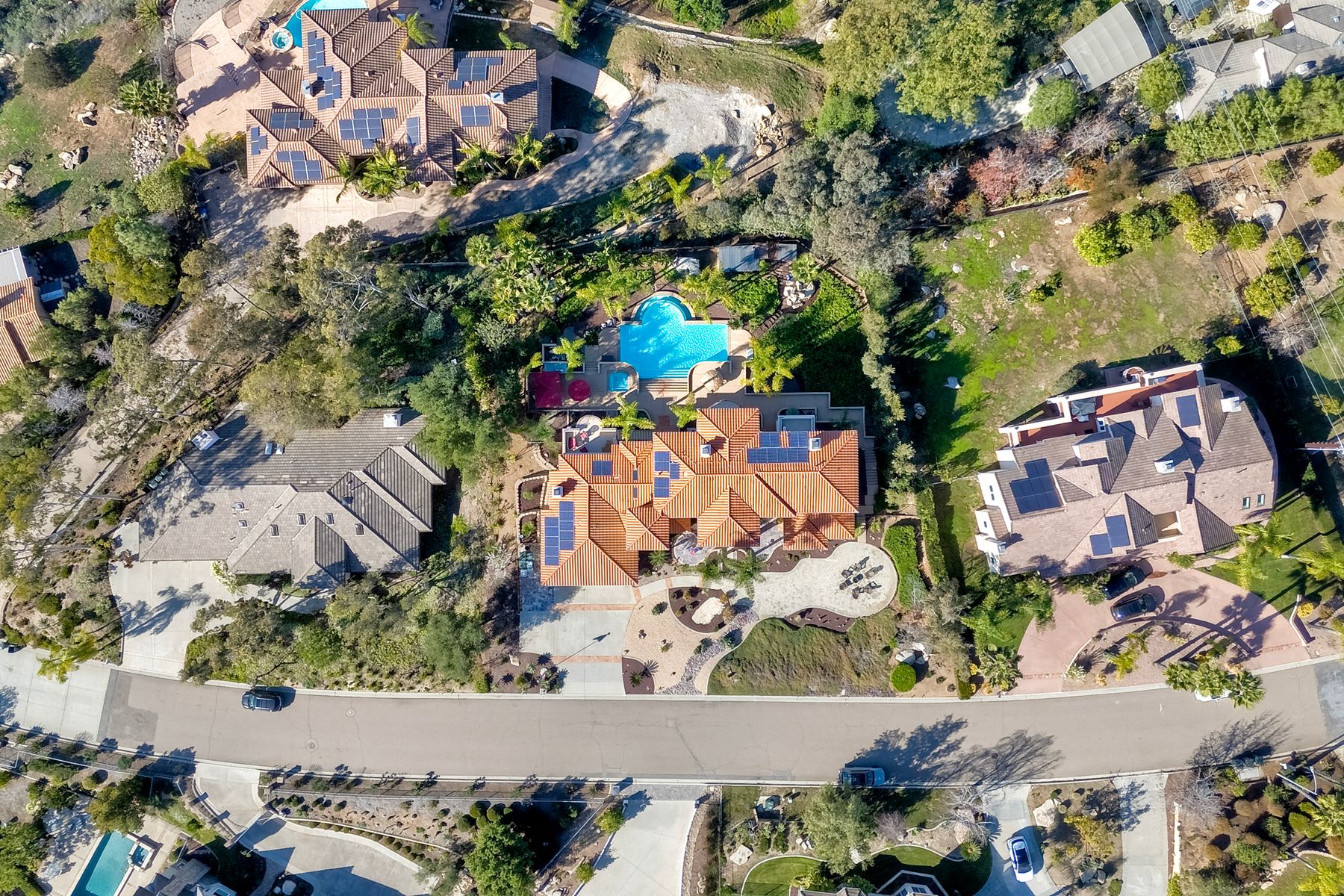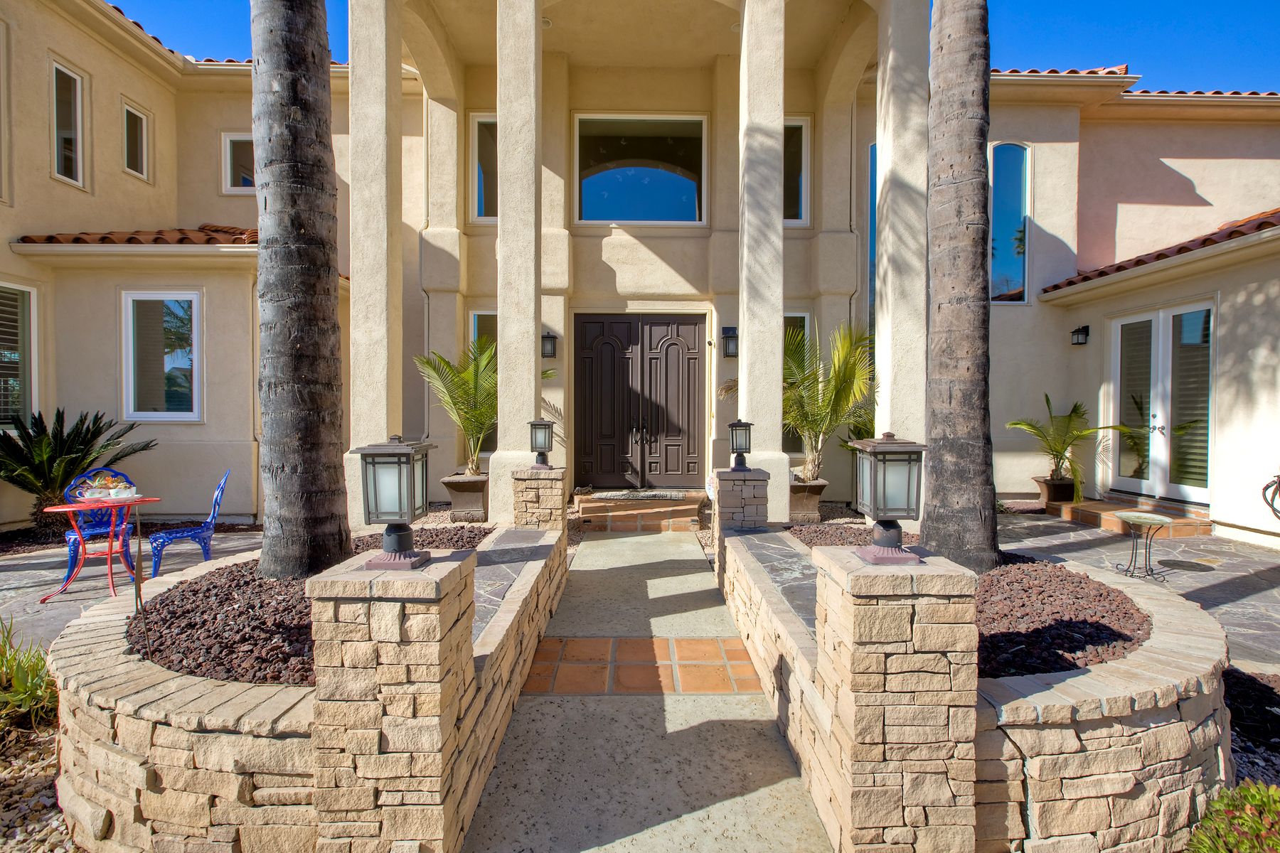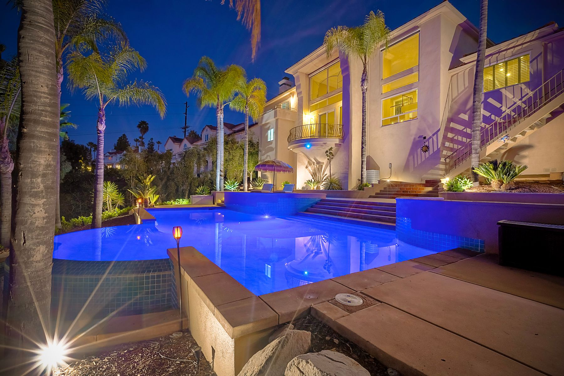 This Canyon View Estates home is situated on a ½-acre elevated premium lot, offering breathtaking panoramic sunset views. With over $250,000 in upgrades, this meticulously maintained residence is truly move-in ready. Notable improvements include a 27-panel owned solar system installed in 2018, newer windows, a new dual-fuel heat pump and air conditioning system, and new roof tiles and underlayment with added bird stops and fire-resistant paper installed July 2025. Additional highlights include split mini heat/air units in the primary bedroom and garage, solar window tinting to reduce summer heat, drought-tolerant landscaping, plantation shutters, travertine and hardwood flooring, granite countertops, a built-in refrigerator, wainscoting, and three fireplaces with glass doors. The home also features electric solar fabric blinds on rear windows, an awning over the kitchen deck, a bonus loft/office area, and a spacious triple garage with quiet motors and MyQ remote access. All garage doors are insulated. Upon entry, you’re greeted by soaring 19-foot ceilings, expansive living spaces, and large picture windows that flood the home with natural light. The primary suite is a true retreat, featuring vaulted ceilings with exposed beams, a dual-sided fireplace, private view balcony, generous walk-in closet, dual vanities, soaking tub, and a walk-in shower with frameless glass enclosure. The backyard is designed for resort-style living, showcasing a vanishing-edge salt water pool and spa, lush tropical landscaping, built-in barbecue, and expansive deck areas ideal for entertaining or relaxing. A downstairs bathroom provides convenient access for poolside enjoyment. Additional features include a fully wired alarm system, smart smoke detectors, and numerous smart-home upgrades throughout. Canyon View Estates is highly sought after for its scenic views, rolling topography, and generous lot sizes. Ideally located near Orfila Winery, San Diego Zoo Safari Park, Vineyards Golf Course, Lake Hodges, Kit Carson Park, shopping, and freeway access. Assigned schools include L.R. Green Elementary, Bear Valley Middle School, and San Pasqual High School.
