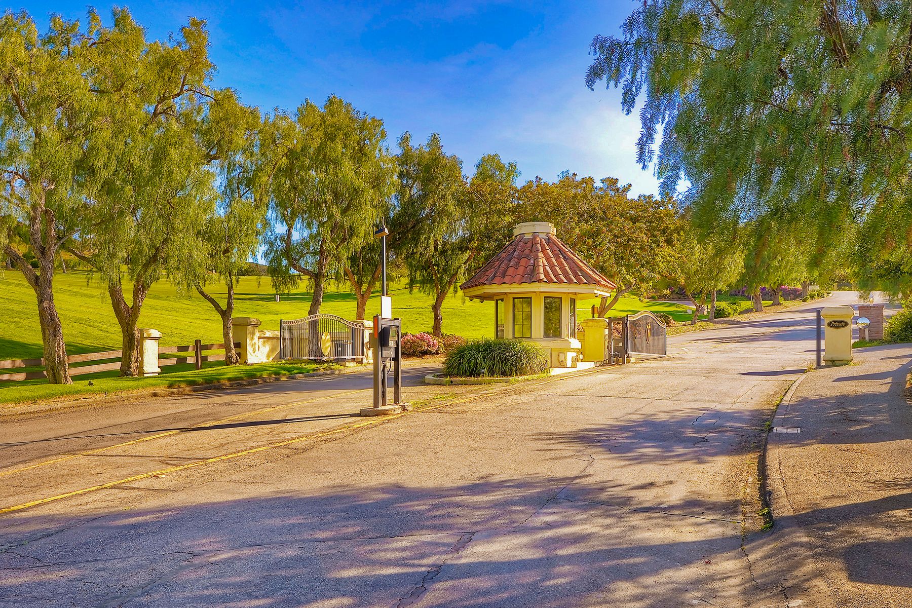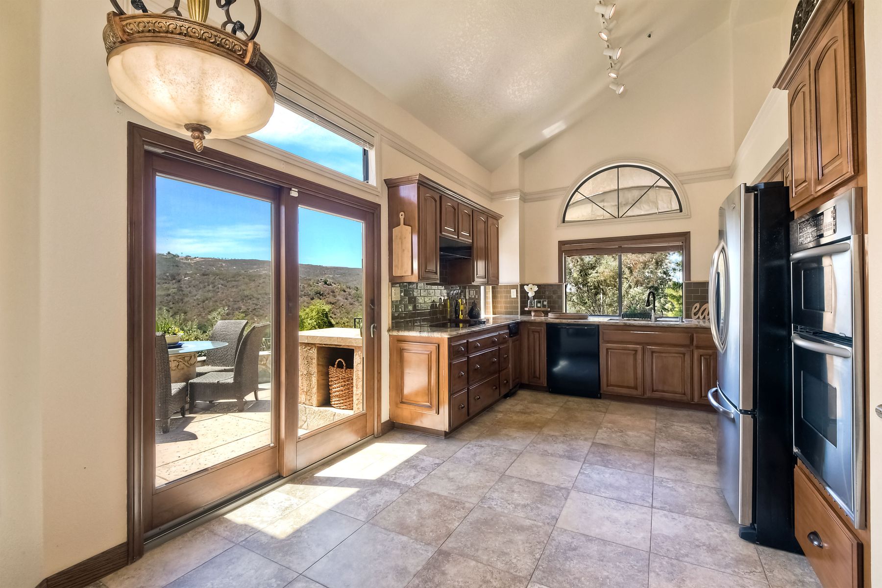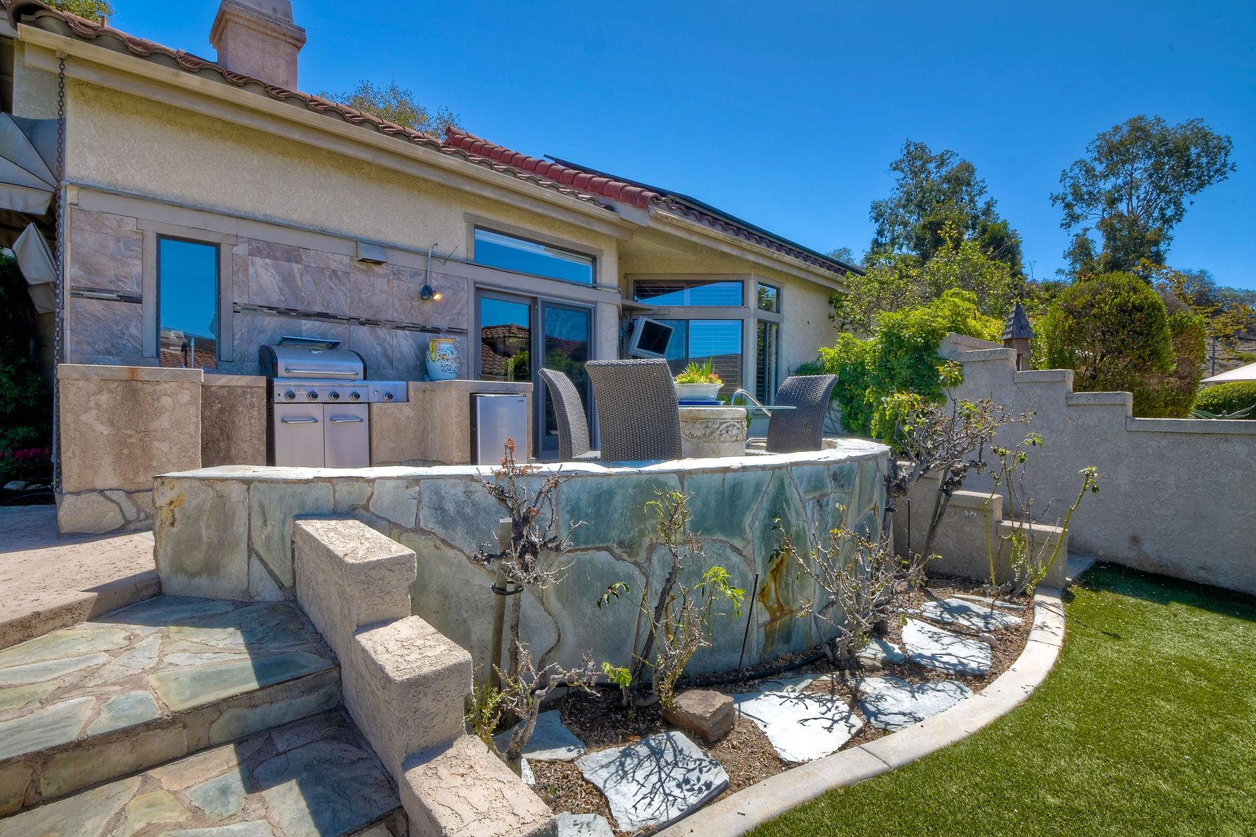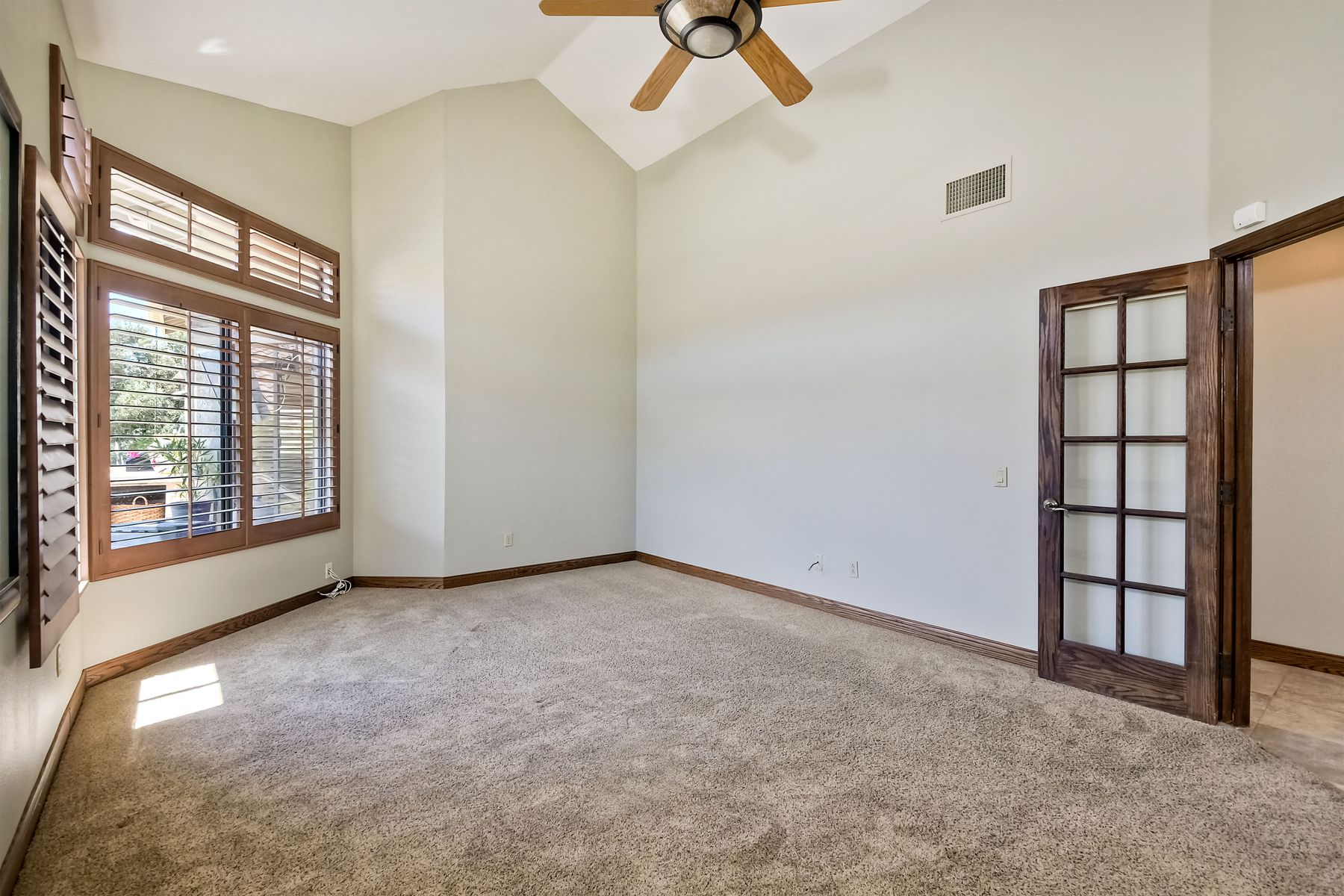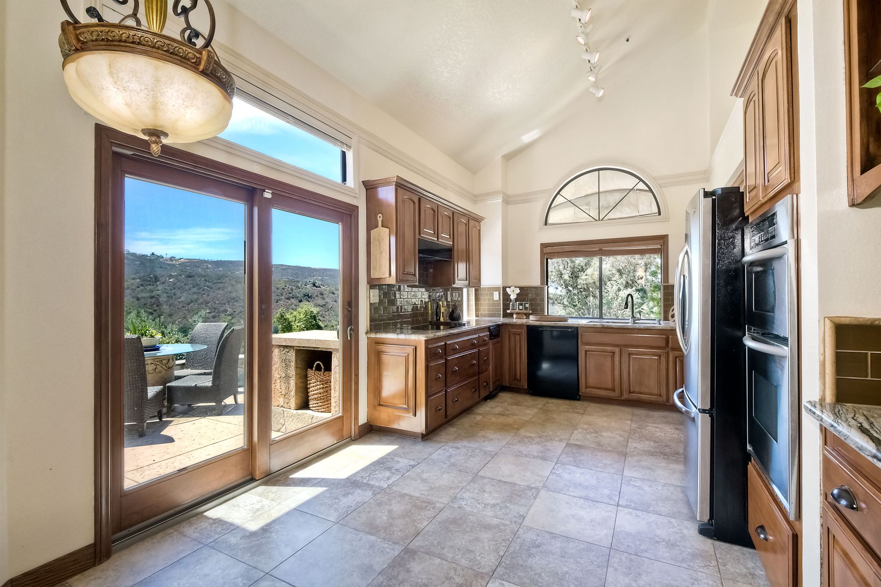 Located in the coveted gated golf community of Vista Valley Country Club, this 1730sf, 2 Bedroom, 2 Bath + Office, 2-car + Golf Cart Garage, one-level home, is situated on a quiet, corner lot with inspiring golf course and mountain VIEWS overlooking the 3rd fairway in the Villas at Vista Valley. This well-cared for property needs a little TLC but has many great features including paid solar! Welcoming gated courtyard entrance. Vaulted ceilings with arched windows and open layout to Dining and Living Room with brick fireplace, sliding doors to back yard and wired for surround sound. Kitchen has granite counters, subway tile backsplash and stainless Kitchen Aid appliances with double oven, Bosch dishwasher. Master Suite has double French door entry, double sink vanity, large walk-in closet with built-ins, custom steam shower plus separate travertine shower. Large En-Suite Bedroom with private Bath. Separate Office with double French Door entry, floor-to-ceiling built-in shelves/cabinets and hardwood flooring. Plantation shutters throughout. Separate Laundry Room with cabinets. Garage has epoxy flooring, golf cart garage, built-in cabinets and overhead storage. Whole house water filtration system and central vacuum. Exterior features include custom in-ground spa, outdoor TV, built-in BBQ, new mini-fridge, custom awnings and pergola over back yard patio with VIEWS! Community pool just across the street! Vista Valley Country Club is a championship golf course with newly renovated club house offering several membership options to include amenities - gym, pickleball, exercise and steam room, spa, classes and community activities with varying golf privileges whether for the avid golfer or just enjoying social gatherings. Just a few minutes to the 15 freeway. This property is perfect for relaxed living or weekend get-away! Won’t last long!