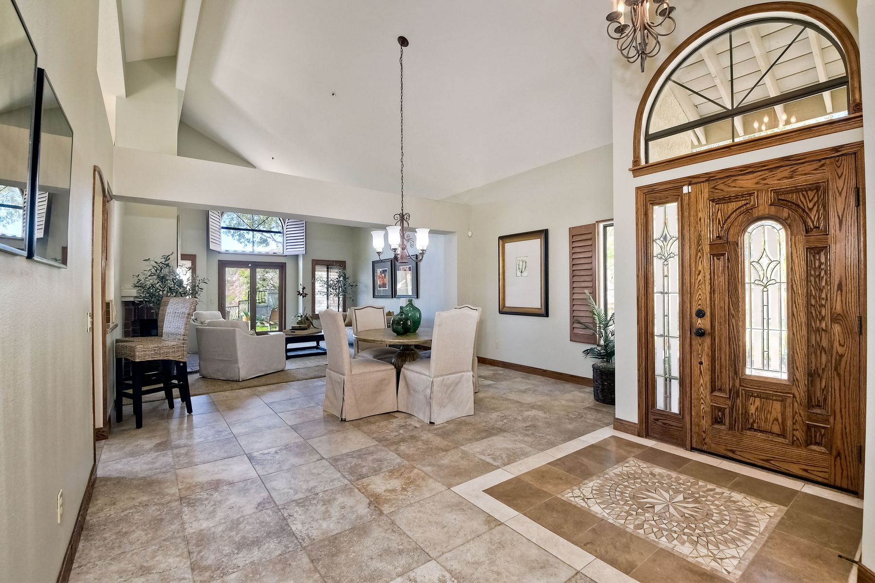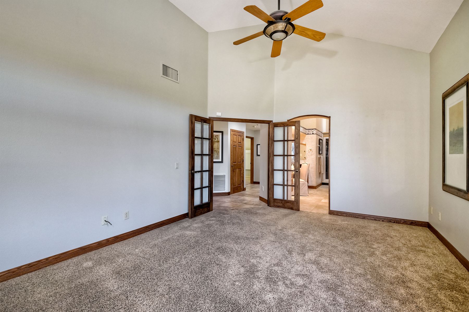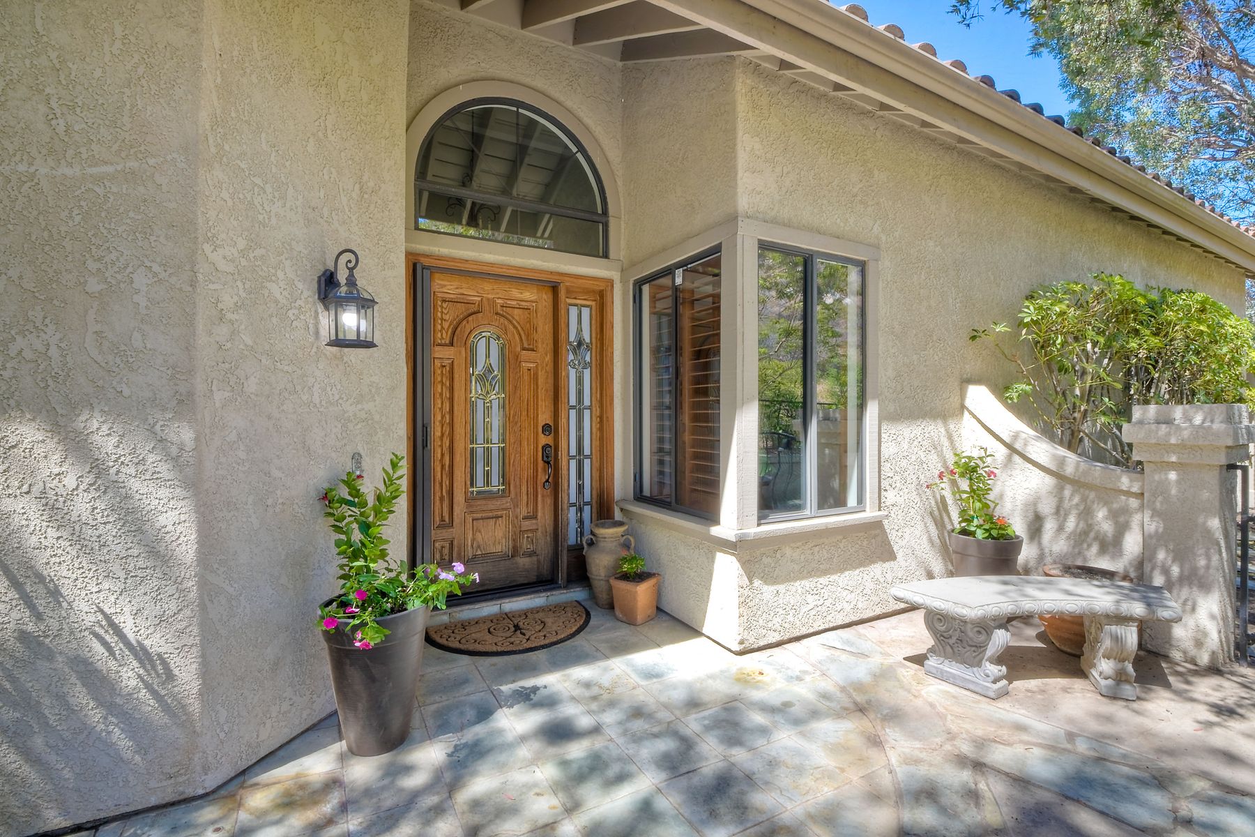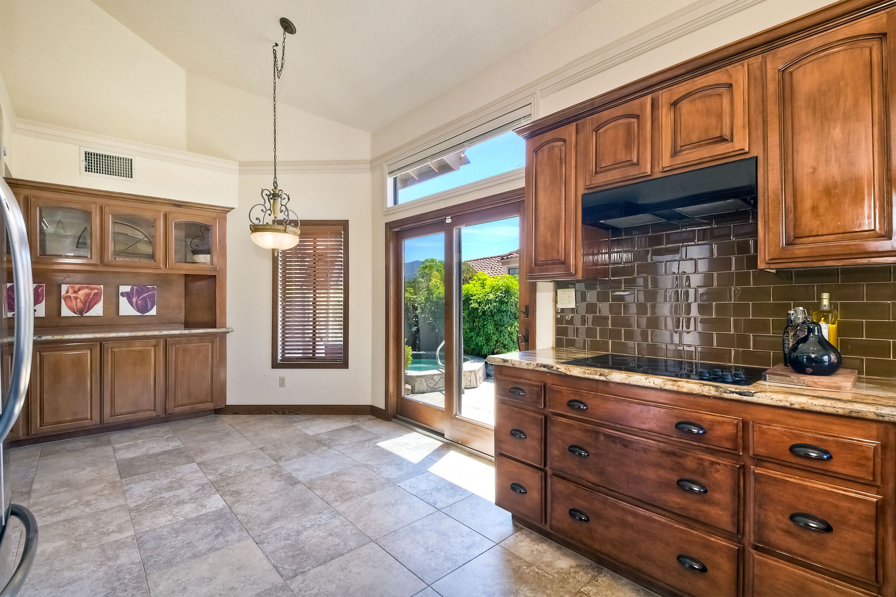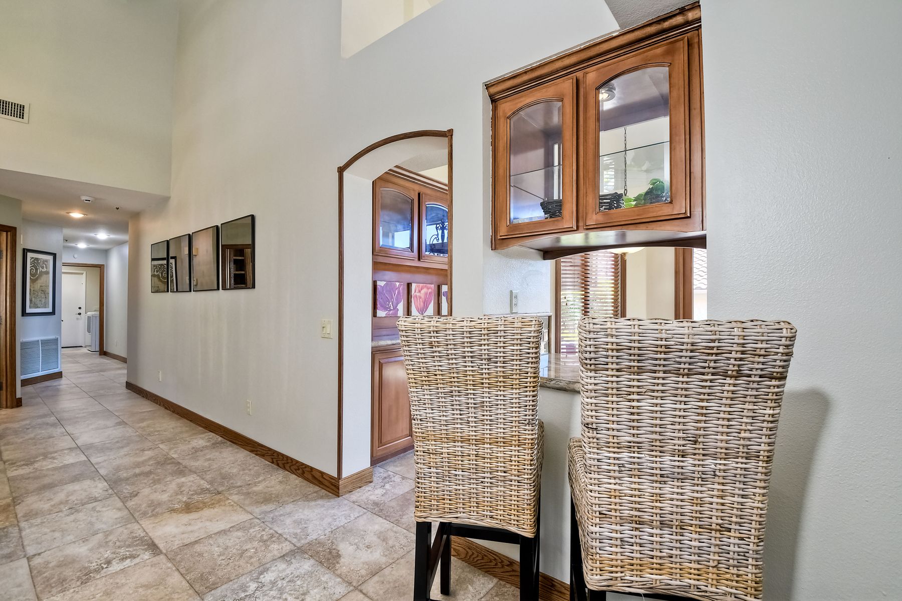 Located in the coveted gated golf community of Vista Valley Country Club, this 1730sf, 2 Bedroom, 2 Bath + Office, 2-car + Golf Cart Garage, one-level home, is situated on a quiet, corner lot with inspiring golf course and mountain VIEWS overlooking the 3rd fairway in the Villas at Vista Valley. This well-cared for property needs a little TLC but has many great features including paid solar! Welcoming gated courtyard entrance. Vaulted ceilings with arched windows and open layout to Dining and Living Room with brick fireplace, sliding doors to back yard and wired for surround sound. Kitchen has granite counters, subway tile backsplash and stainless Kitchen Aid appliances with double oven, Bosch dishwasher. Master Suite has double French door entry, double sink vanity, large walk-in closet with built-ins, custom steam shower plus separate travertine shower. Large En-Suite Bedroom with private Bath. Separate Office with double French Door entry, floor-to-ceiling built-in shelves/cabinets and hardwood flooring. Plantation shutters throughout. Separate Laundry Room with cabinets. Garage has epoxy flooring, golf cart garage, built-in cabinets and overhead storage. Whole house water filtration system and central vacuum. Exterior features include custom in-ground spa, outdoor TV, built-in BBQ, new mini-fridge, custom awnings and pergola over back yard patio with VIEWS! Community pool just across the street! Vista Valley Country Club is a championship golf course with newly renovated club house offering several membership options to include amenities - gym, pickleball, exercise and steam room, spa, classes and community activities with varying golf privileges whether for the avid golfer or just enjoying social gatherings. Just a few minutes to the 15 freeway. This property is perfect for relaxed living or weekend get-away! Won’t last long!