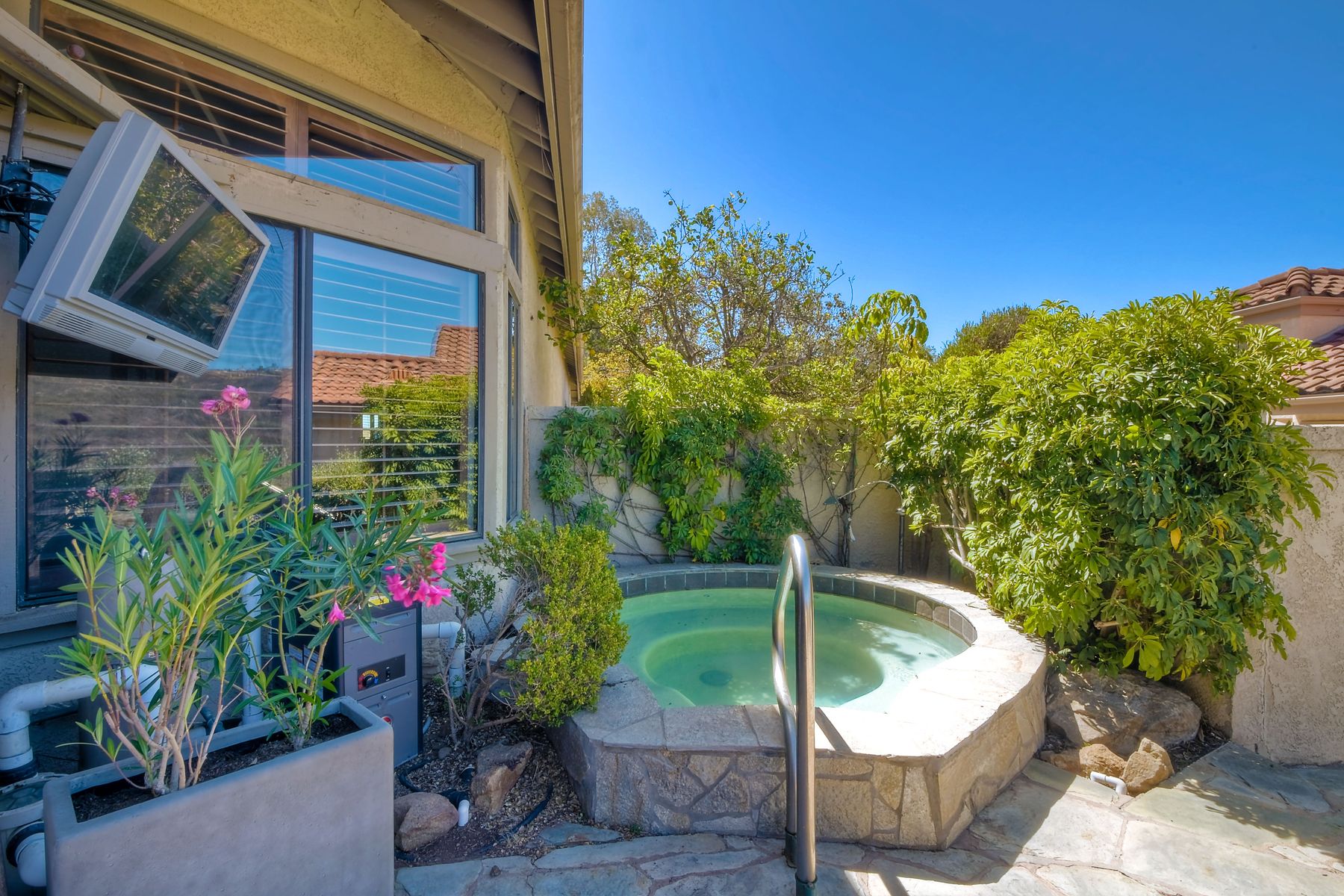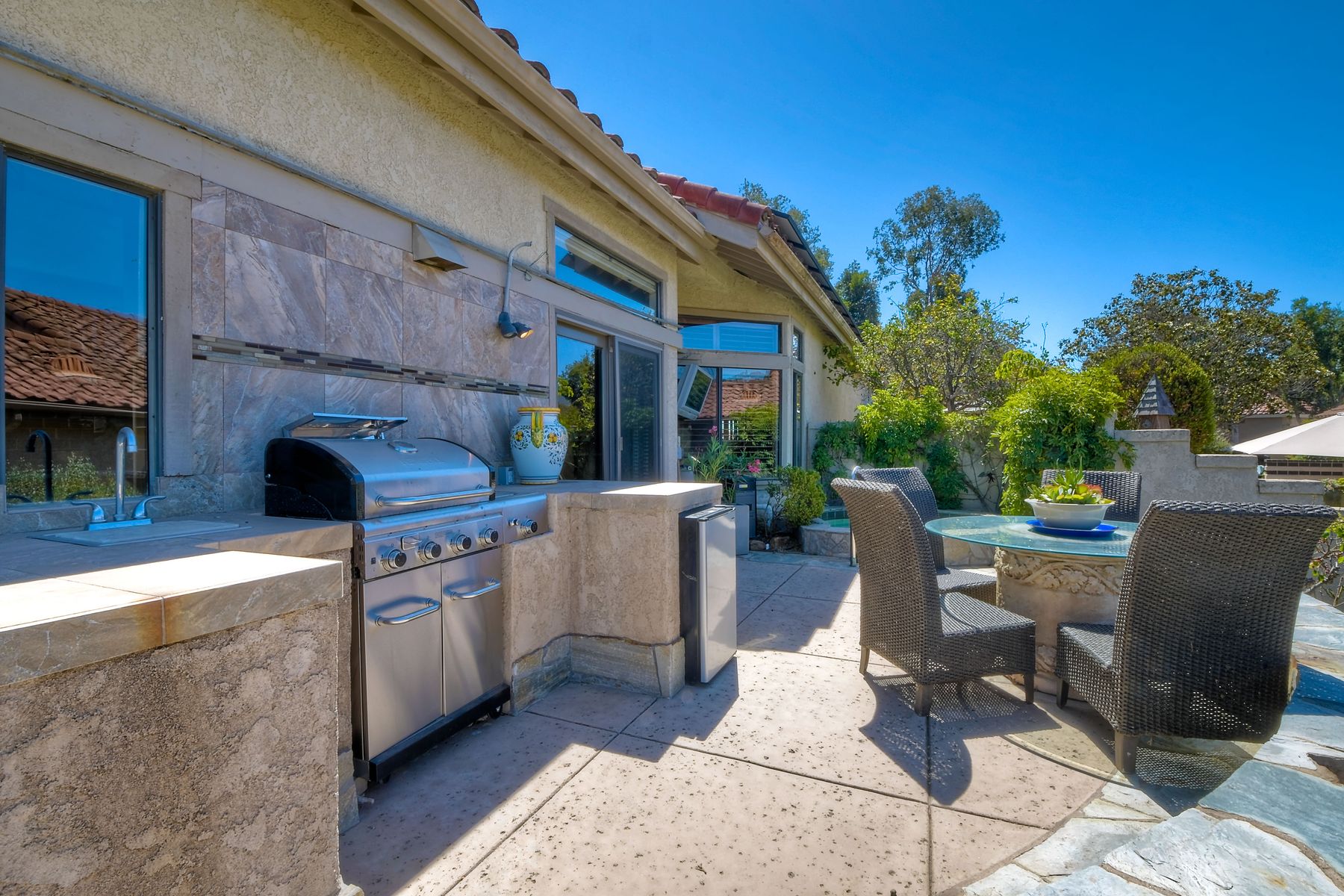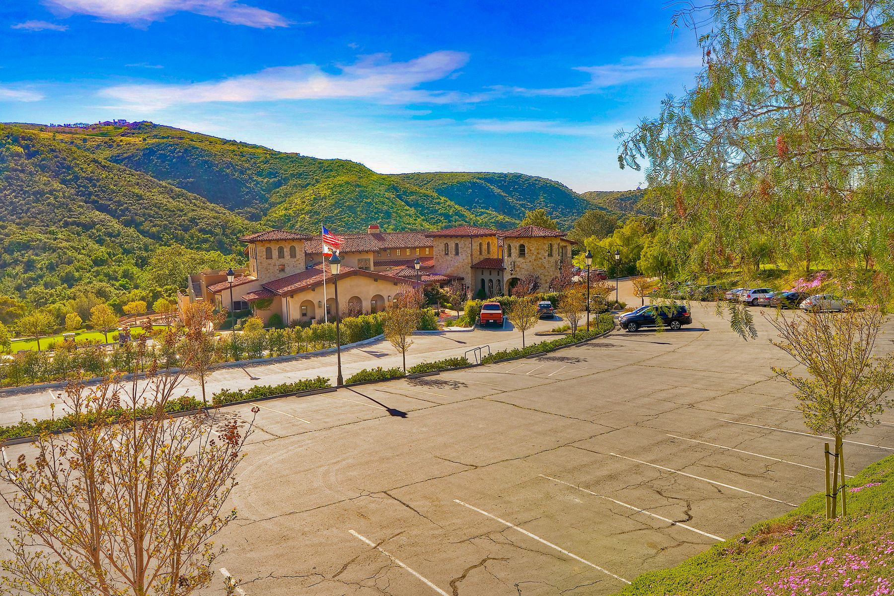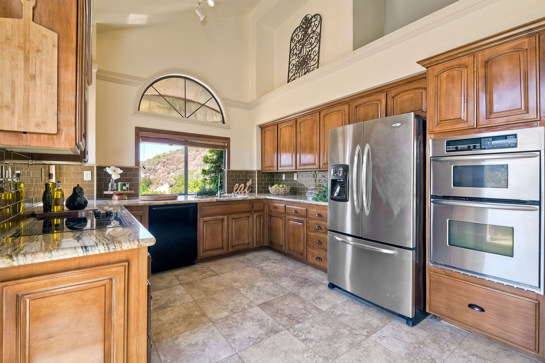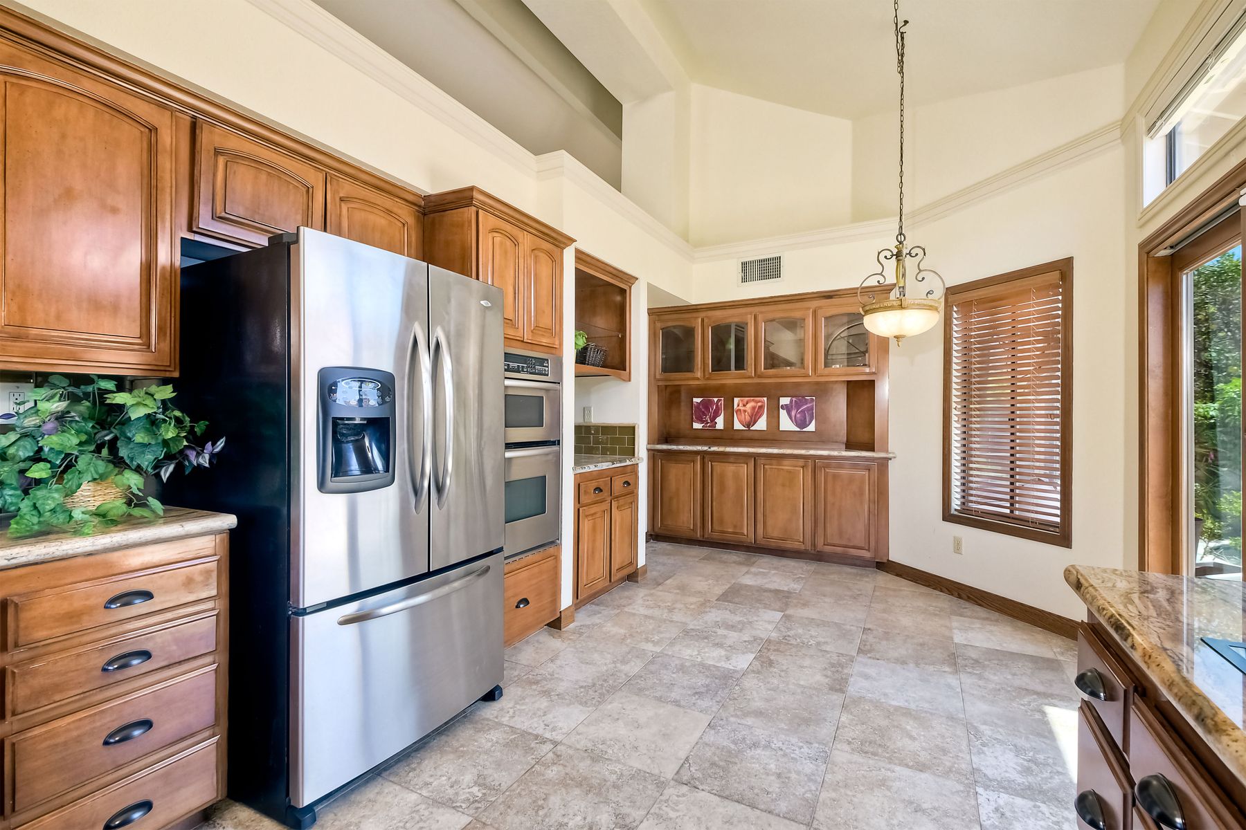 Located in the coveted gated golf community of Vista Valley Country Club, this 1730sf, 2 Bedroom, 2 Bath + Office, 2-car + Golf Cart Garage, one-level home, is situated on a quiet, corner lot with inspiring golf course and mountain VIEWS overlooking the 3rd fairway in the Villas at Vista Valley. This well-cared for property needs a little TLC but has many great features including paid solar! Welcoming gated courtyard entrance. Vaulted ceilings with arched windows and open layout to Dining and Living Room with brick fireplace, sliding doors to back yard and wired for surround sound. Kitchen has granite counters, subway tile backsplash and stainless Kitchen Aid appliances with double oven, Bosch dishwasher. Master Suite has double French door entry, double sink vanity, large walk-in closet with built-ins, custom steam shower plus separate travertine shower. Large En-Suite Bedroom with private Bath. Separate Office with double French Door entry, floor-to-ceiling built-in shelves/cabinets and hardwood flooring. Plantation shutters throughout. Separate Laundry Room with cabinets. Garage has epoxy flooring, golf cart garage, built-in cabinets and overhead storage. Whole house water filtration system and central vacuum. Exterior features include custom in-ground spa, outdoor TV, built-in BBQ, new mini-fridge, custom awnings and pergola over back yard patio with VIEWS! Community pool just across the street! Vista Valley Country Club is a championship golf course with newly renovated club house offering several membership options to include amenities - gym, pickleball, exercise and steam room, spa, classes and community activities with varying golf privileges whether for the avid golfer or just enjoying social gatherings. Just a few minutes to the 15 freeway. This property is perfect for relaxed living or weekend get-away! Won’t last long!