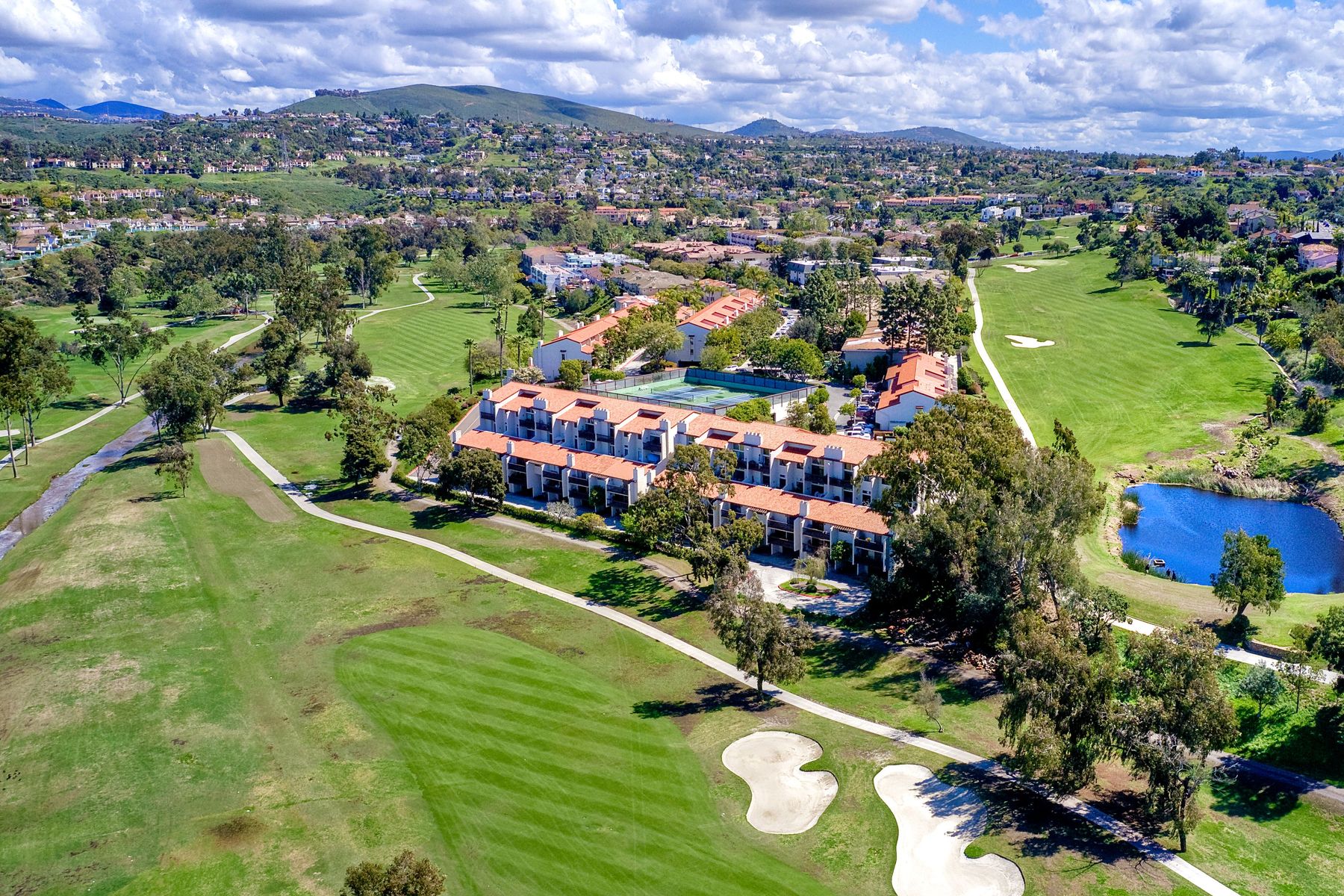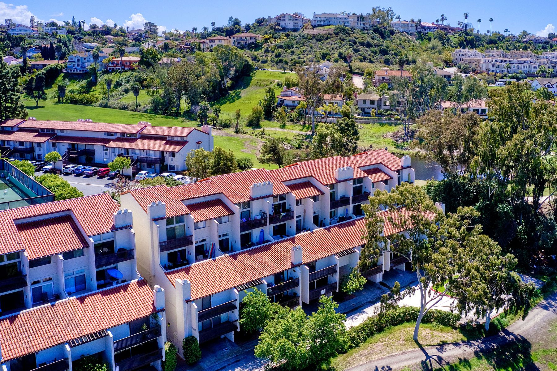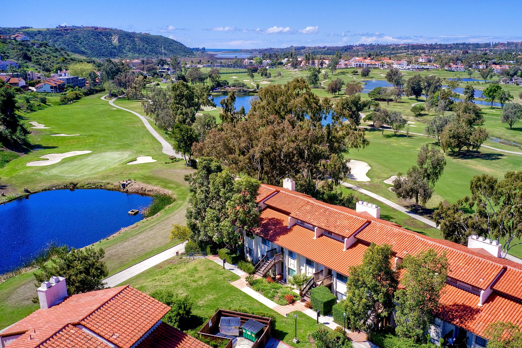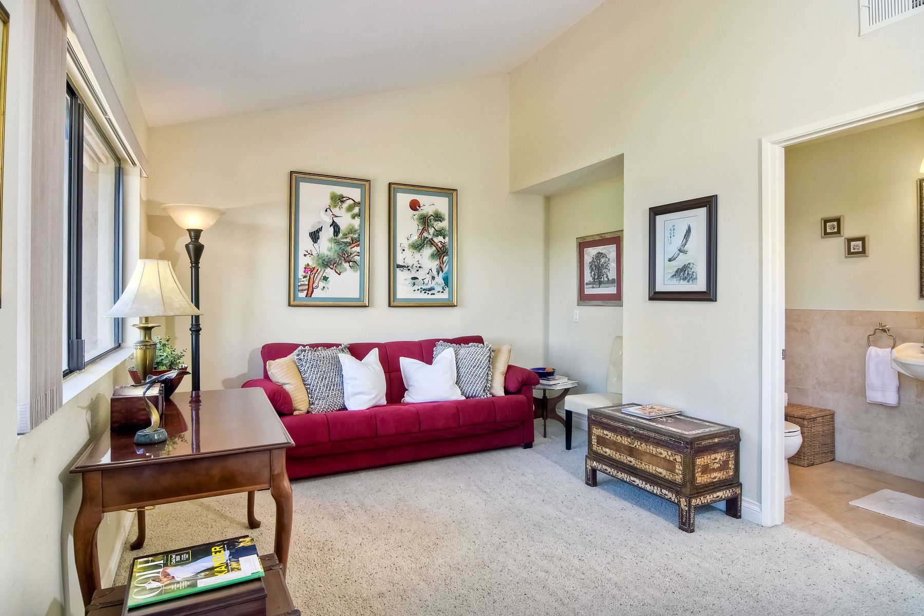 Picture yourself on your private balcony overlooking the 17th fairway of the Omni Resort golf course enjoying the magnificent sunset and the far reaching ocean views. Linger awhile before heating up the bbq for a scrumptious dinner. Take a dip in the community pool/spa/sauna or play a game of tennis to further your experience in paradise. This beautiful condo has vaulted ceilings and newer upgrades, lots of light. Close to Carlsbad beaches restaurants, shopping. Please see supplement for more details. Upon entering this amazing condo you will see the views straight in front of you overlooking the 17th fairway of the Omni Resort golf course and beyond. There are two master bedrooms with one on the main level with an ensuite bathroom with tub/shower and walk in closet. The upstair's loft has been configured into a masterbedroom with a sliding screen that can be used for privacy. Or you can leave it open and enjoy the wonderful view every morning as you awake. There is a full bath and large walk in closet located here. Some of the upgrades include: New roof, newer balcony, newer glass sliding door to the balcony, newer shower fixtures, newer renovated powder room. Kitchen has granite counter tops with stainless steel appliances. Upgraded tile flooring in foyer, kitchen and bathrooms.