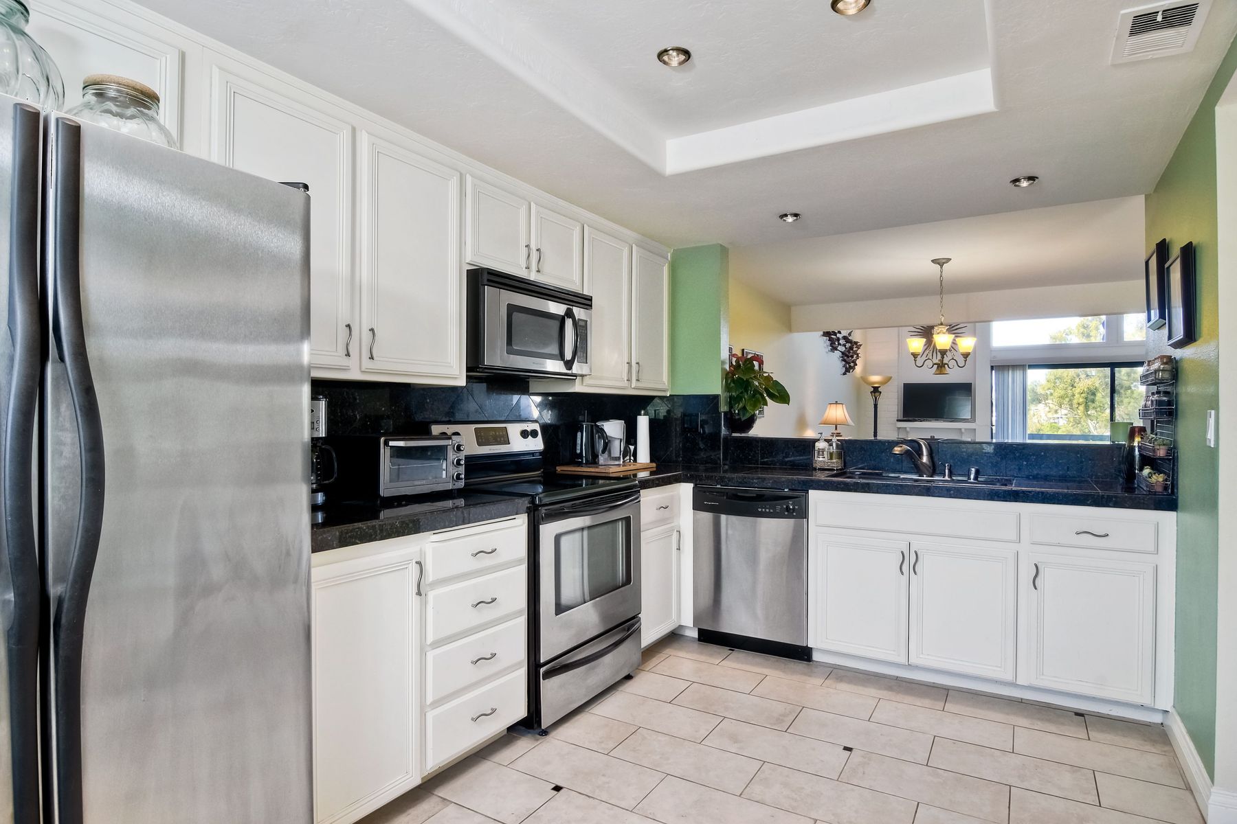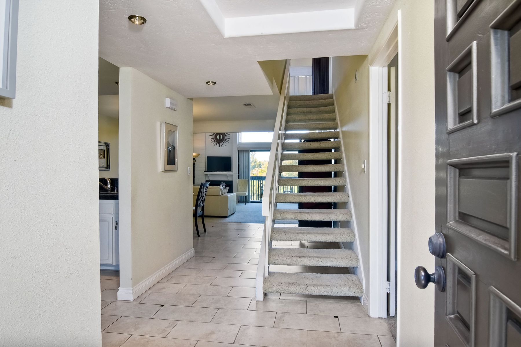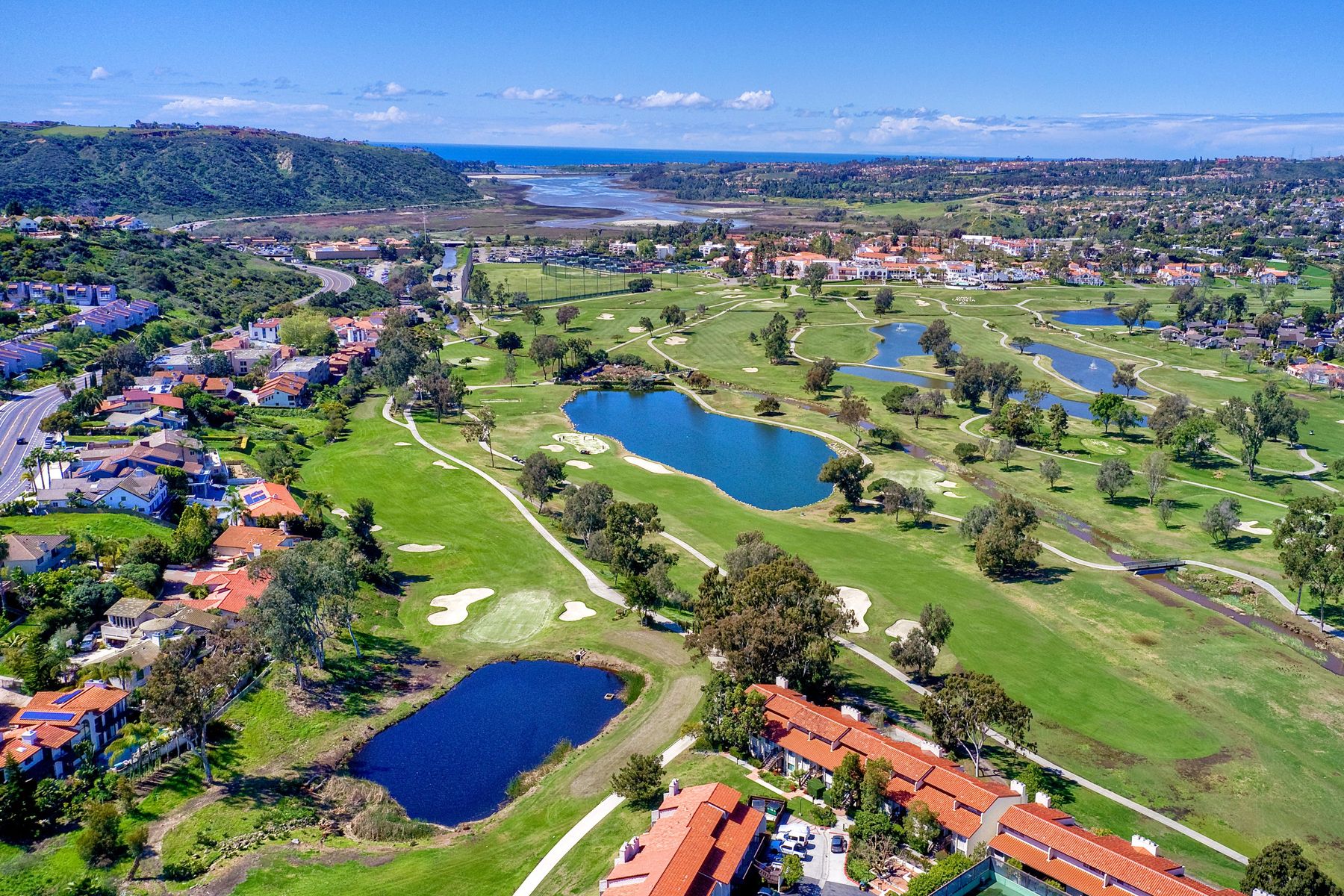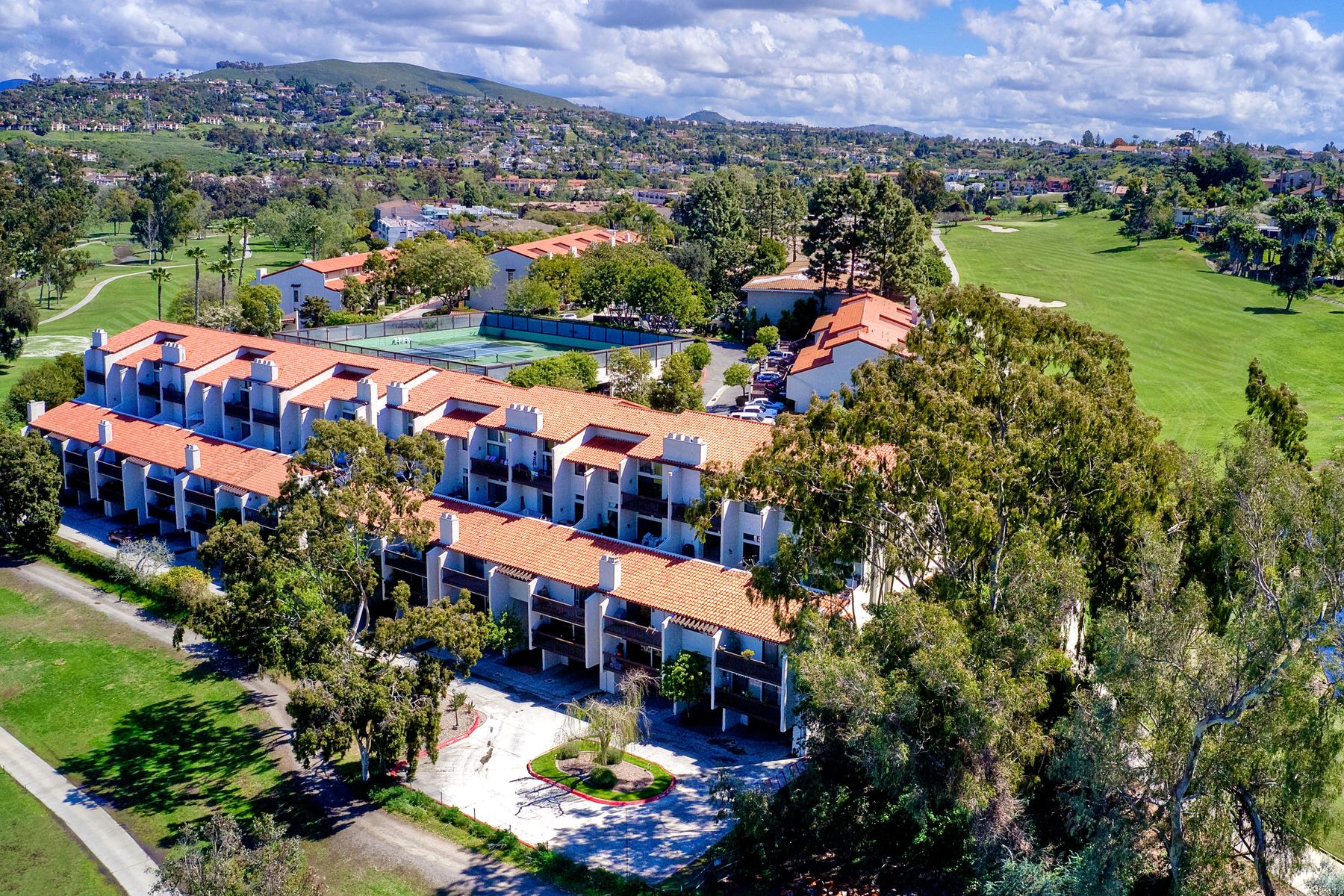 Picture yourself on your private balcony overlooking the 17th fairway of the Omni Resort golf course enjoying the magnificent sunset and the far reaching ocean views. Linger awhile before heating up the bbq for a scrumptious dinner. Take a dip in the community pool/spa/sauna or play a game of tennis to further your experience in paradise. This beautiful condo has vaulted ceilings and newer upgrades, lots of light. Close to Carlsbad beaches restaurants, shopping. Please see supplement for more details. Upon entering this amazing condo you will see the views straight in front of you overlooking the 17th fairway of the Omni Resort golf course and beyond. There are two master bedrooms with one on the main level with an ensuite bathroom with tub/shower and walk in closet. The upstair's loft has been configured into a masterbedroom with a sliding screen that can be used for privacy. Or you can leave it open and enjoy the wonderful view every morning as you awake. There is a full bath and large walk in closet located here. Some of the upgrades include: New roof, newer balcony, newer glass sliding door to the balcony, newer shower fixtures, newer renovated powder room. Kitchen has granite counter tops with stainless steel appliances. Upgraded tile flooring in foyer, kitchen and bathrooms.