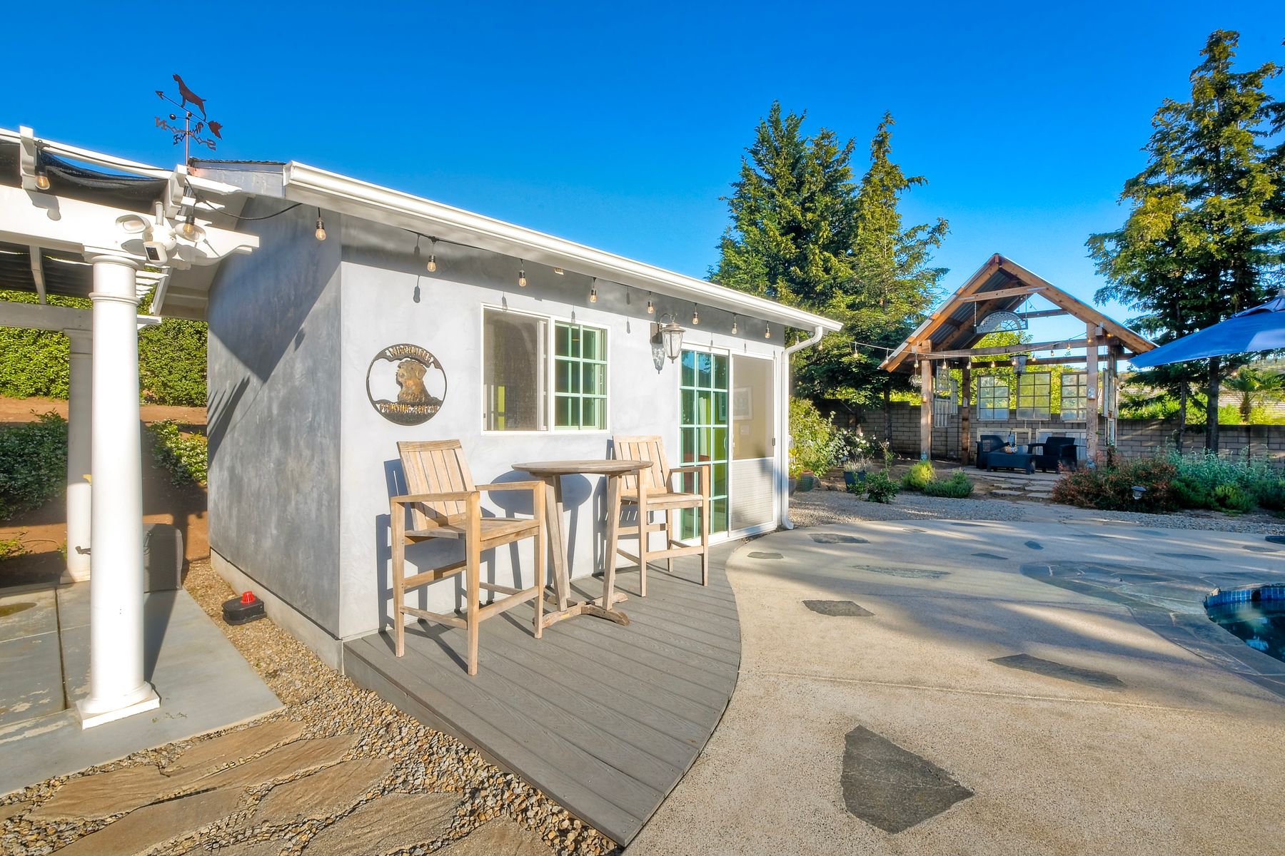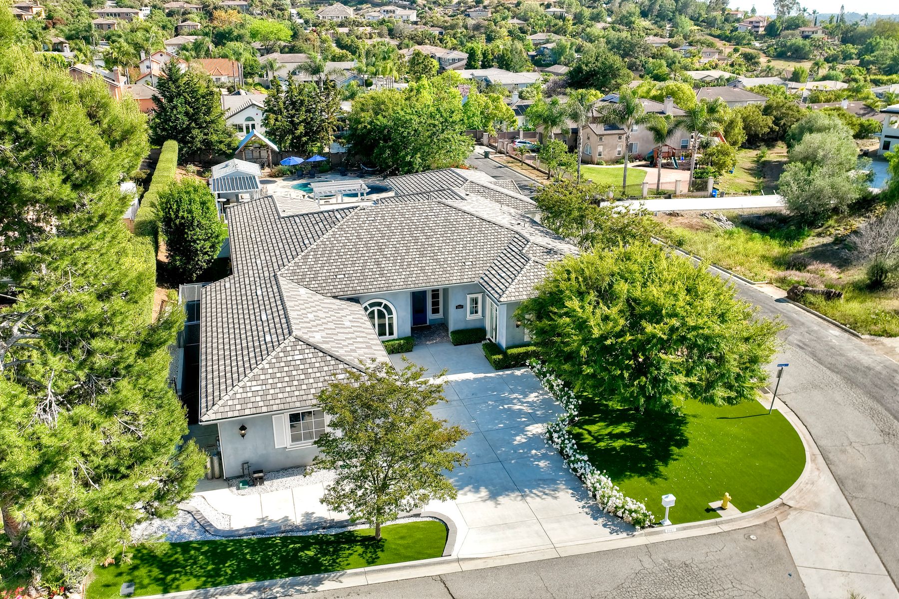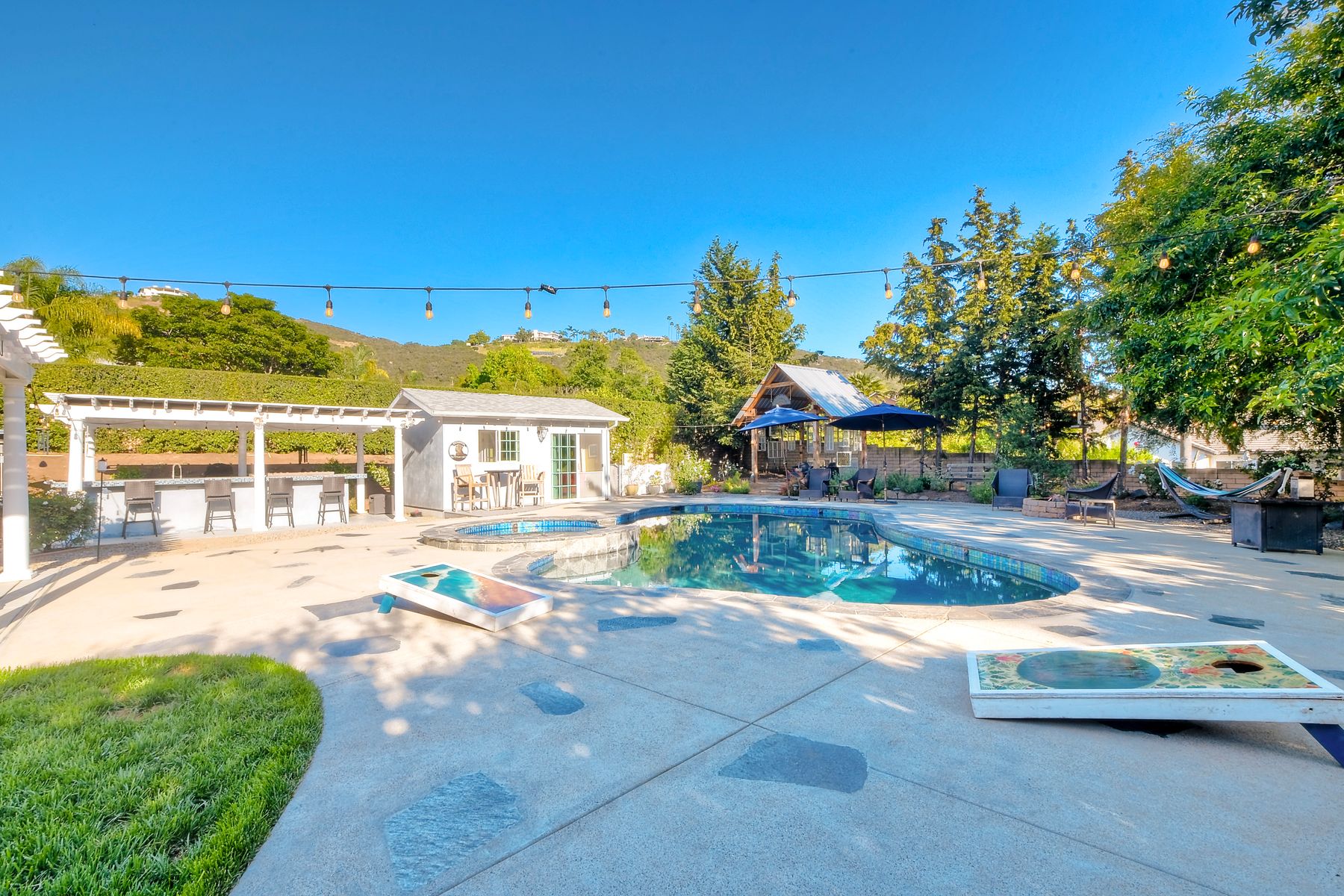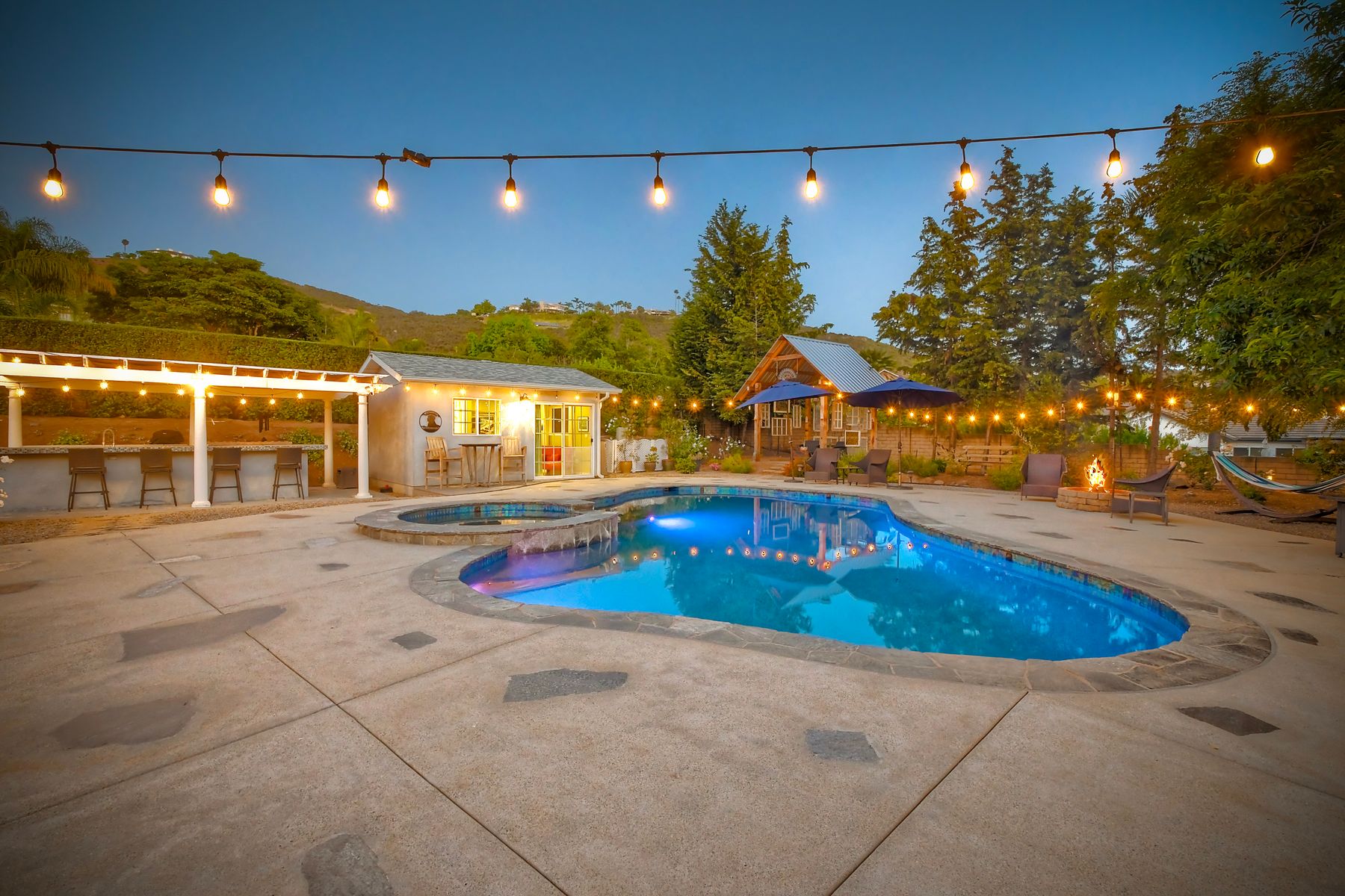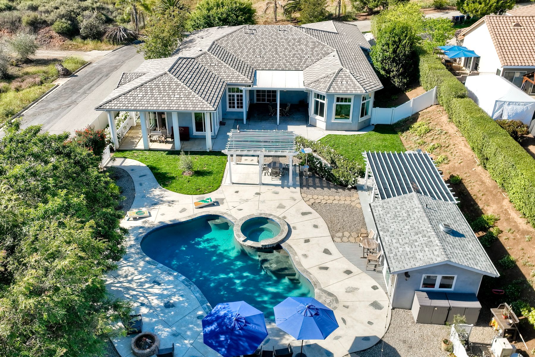 This is the custom Vista country single-story dream home with resort-style backyard, pool, & all the incredible care & craftsmanship you've been waiting for! With so many incredible features that are almost too numerous to name, like the reclaimed brick flooring from the original Carlsbad Marie Callender’s & matching stained glass in the living room, do not miss the chance to tour this property. Originally built in 2012 by a sought-after design/build duo as their own personal residence, every inch reflects exceptional craftsmanship & intentional living. Set on a huge flat corner lot on a peaceful street in one of Vista’s most desirable neighborhoods, enjoy watching the sun set over the hills, take in the community fireworks this 4th of July, or stroll to Moonlight Amphitheater for summer concerts. Step inside to soaring 12-foot ceilings, oversized windows that flood the home with natural light, & 13-inch crown molding. The flexible floor plan features 4 bedrooms, 3 full baths, 1 3/4 bath, an executive-style paneled office perfectly positioned on the cooler north side of the home, a dedicated media room with 100" 4K projector & surround sound, & versatile laundry/hobby room. The fourth bedroom and full bath are tucked away with a private entrance—ideal for guests, multigenerational living, or a home business setup. The heart of the home is a chef’s kitchen with ample cabinet storage, stainless steel appliances, & a charming “morning room” wrapped in windows. Enjoy coffee as you look out over the lush backyard, where you’ll find a custom saltwater pool with pebble finish & spa, market lights for ambiance, a 192 sf pool house with bathroom/shower, outdoor kitchen, bar, & a peaceful covered patio that makes the perfect retreat on rainy days. The primary suite is its own wing—private, spacious, & thoughtfully oriented with garden views to the south & generous walk-in closets. Spa-like features include a soaking tub, separate walk-in shower, & dual vanities. Additional features you'll love include Omada Enterprise class mesh WiFi with closet rack & 6 APs/2 gigs from Cox, Nest 2-zone HVAC with excellent insulation for year-round comfort, a dog washing station in garage, epoxy garage floors, & Rachio water saving automatic AI system with Hunter Professional heads. The interior has all new paint & the color feels so fresh-like you can breathe more easily inside-you must experience it for yourself! All this plus you're just a short walk or drive from excellent trails, parks, revitalized downtown Vista, shopping, dining, entertainment, annual fairs & festivals, freeways, & the beach! Whether you're soaking in the spa under the stars, doing yoga in the pool house after a swim, or rocking gently on the back porch as the sun sets over the hills, this home invites you to live beautifully—indoors & out.
