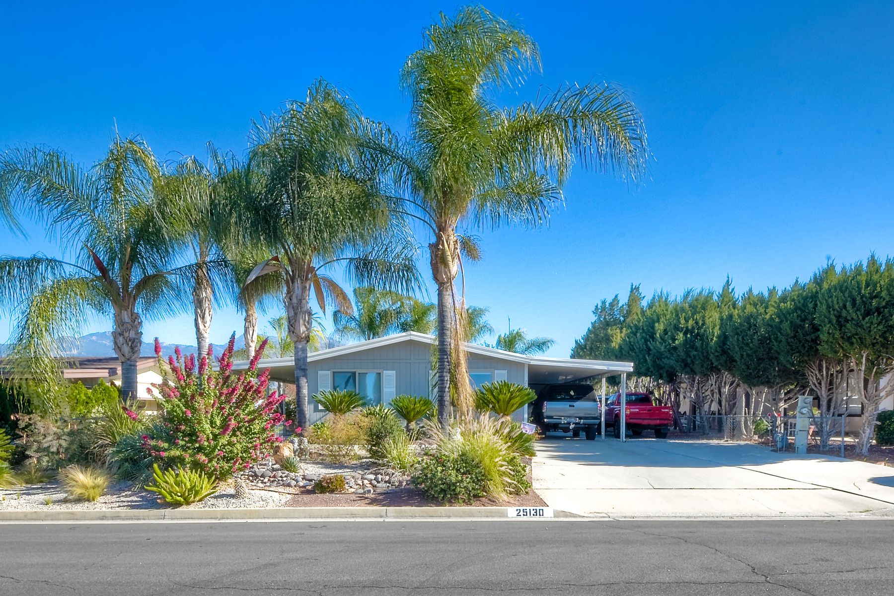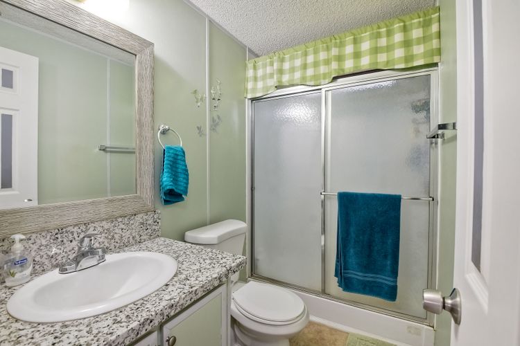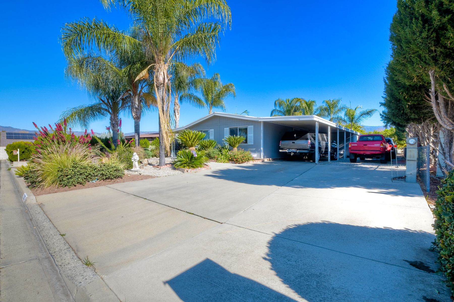 Lovely 2 bed/2 bath manufactured home on your own land in the beautiful 55+ Senior Community of Monte Vista Estates. Beautifully landscaped with plenty of parking including RV parking. Master bedroom provides access to the back patio. Very large storage shed located out back for additional storage. Quiet location in a cul de sac with beautiful mountain views. Very low HOA fee paid once a year.