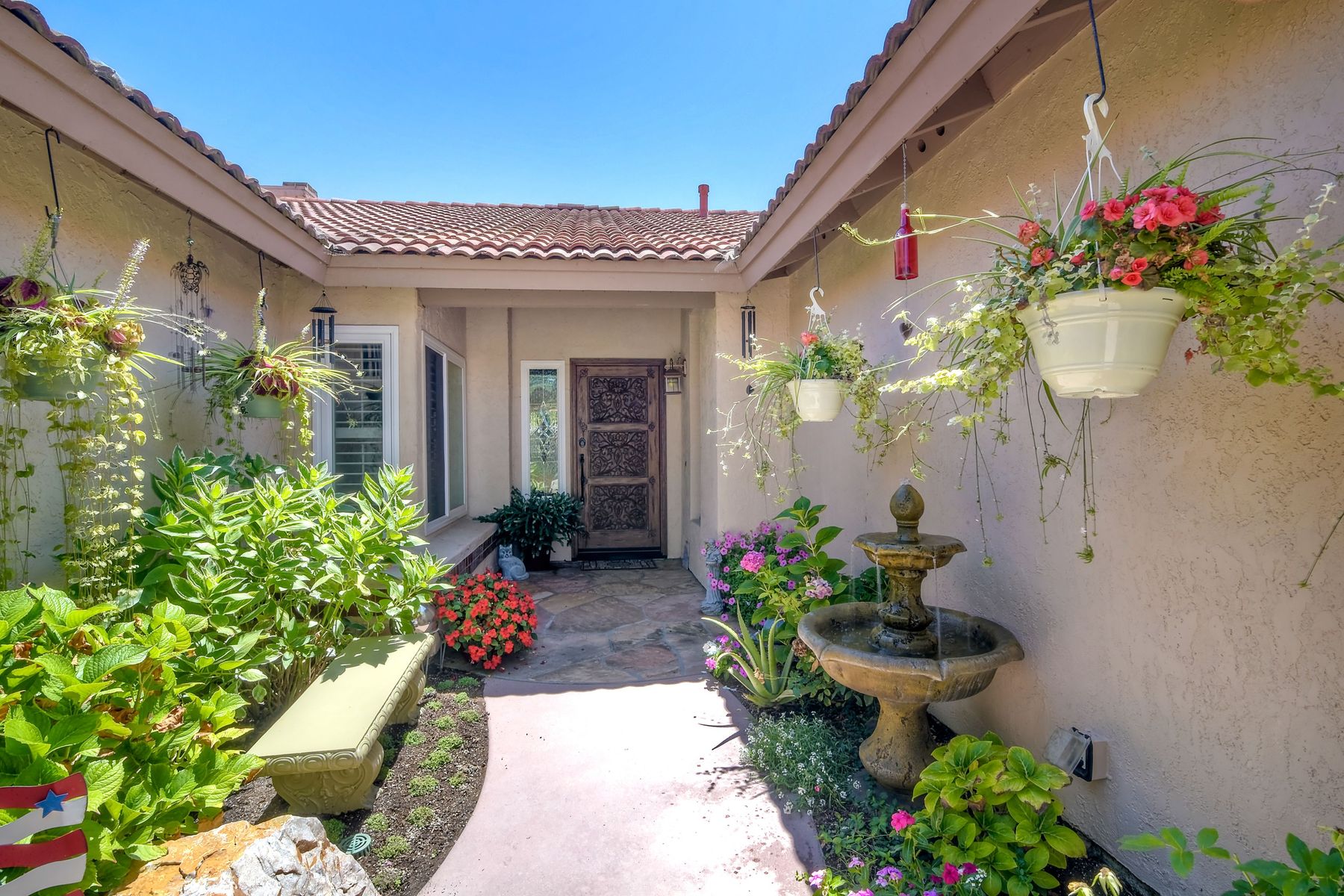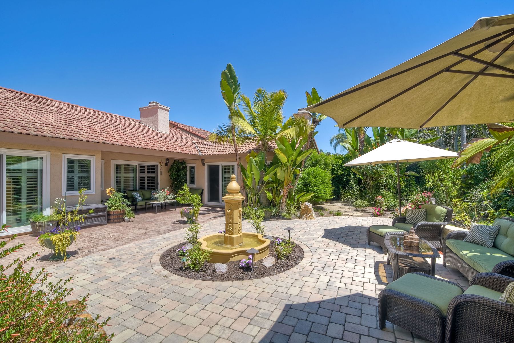 Spectacular remodeled single level home in one of the finest neighborhoods in Shadowridge! Agents...don't miss this home! Dramatic courtyard entrance with Brazilian Mahogony custom wood carved front door! Upgraded kitchen with stainless appliances, cherrywood cabbinetry, convection ovens, vaulted ceilings,Permitted family room with 2 gas fireplaces, stunning private backyard with a beautiful centerpiece fountain! Plantation shutters- Approx. $275K in upgrades!! A turn key home your buyers will Love!! Rarely on market! Fabulous single level in one of the finest neighborhoods in Shadowridge. Meticulously maintained is turn key and ready to move in. Property shows pride of ownership starting with a courtyard entrance and a Brazilian Mahogany custom carved front door! Inside find remodeled kitchen and baths, (cast iron soaking tub in master!) walk-in closet, cherrywood cabinetry, stainless appliances, spacious floorplan, permitted family room addition with gas fireplace opening out into a very private backyard with a centerpiece fountain-this is a must see-buyers will not be disappointed!!. Neighborhoods: Shadowridge Equipment: Garage Door Opener Other Fees: 0 Sewer: Sewer Connected Topography: LL