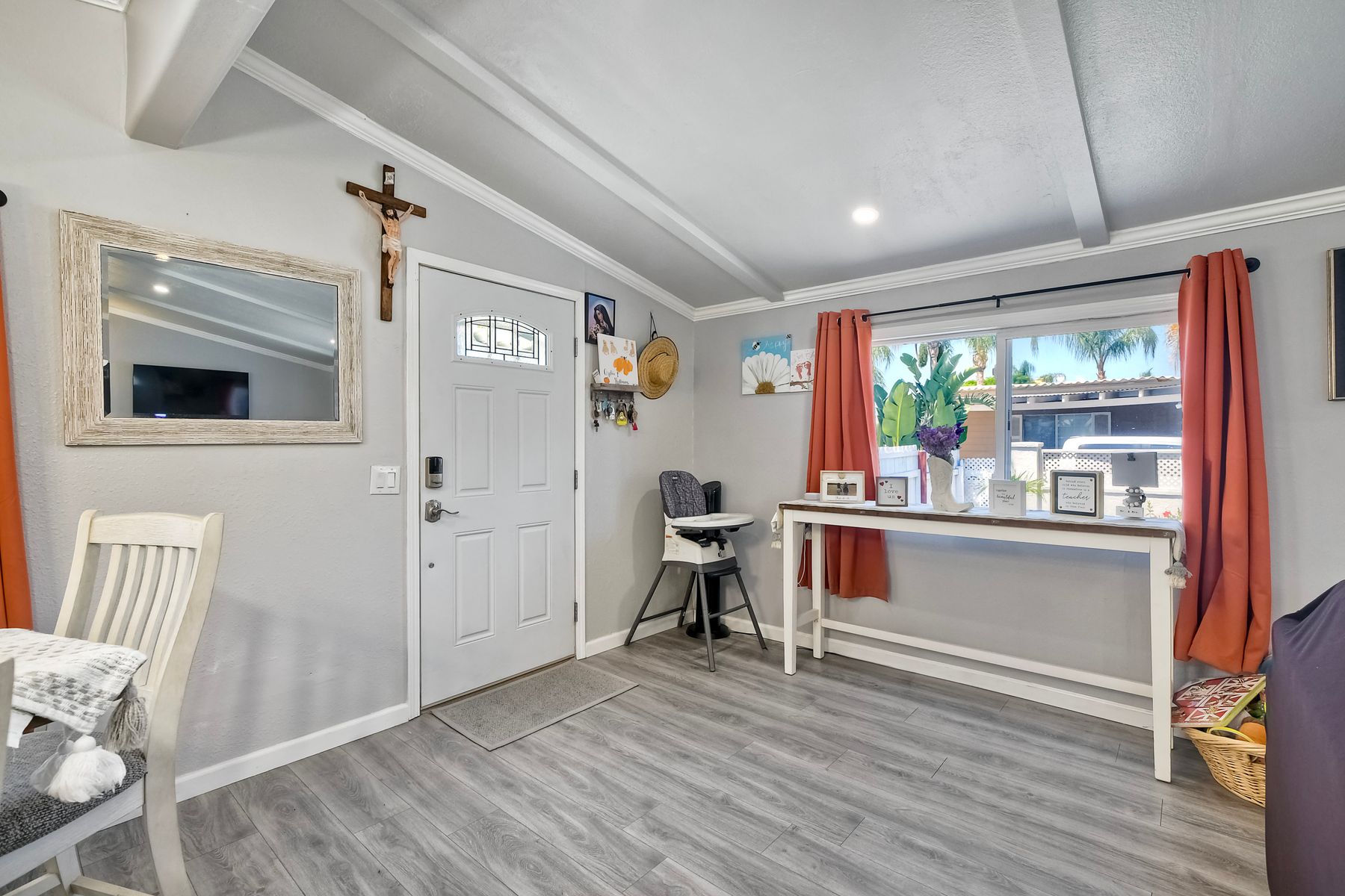 Outside, discover your private outdoor oasis! The spacious yard features custom, low-maintenance landscaping and a wonderful covered patio – perfect for weekend BBQs, morning coffee, or simply unwinding under the California sun. Plus, with dedicated RV parking, there's ample space for all your recreational toys.