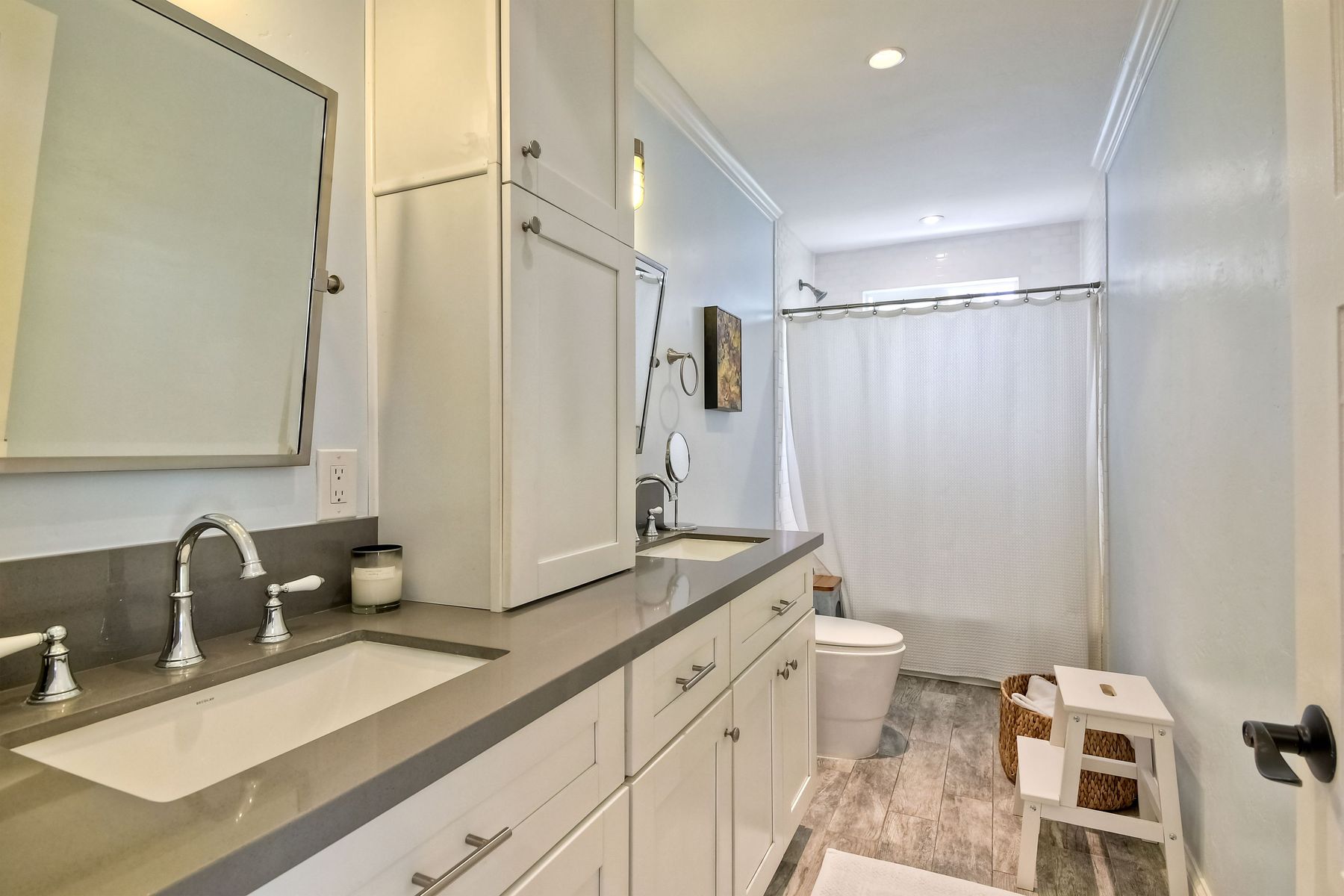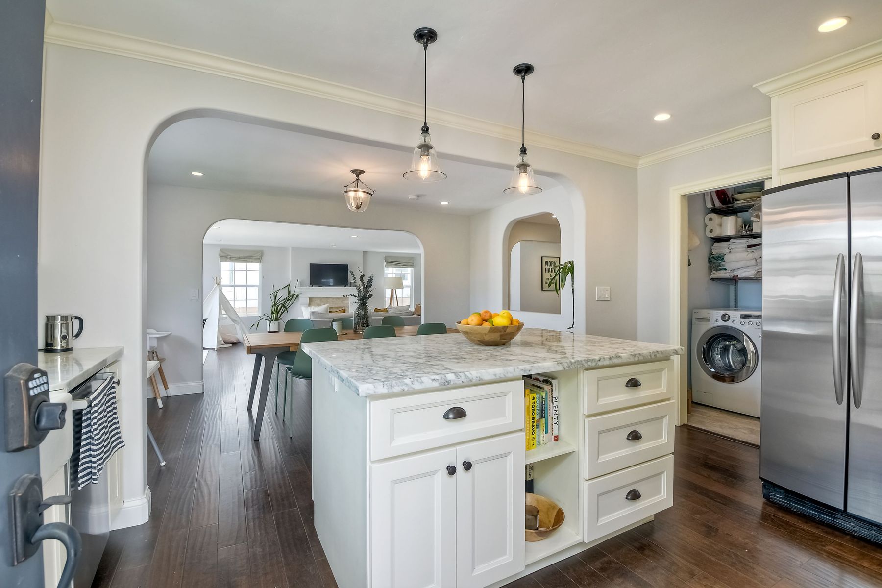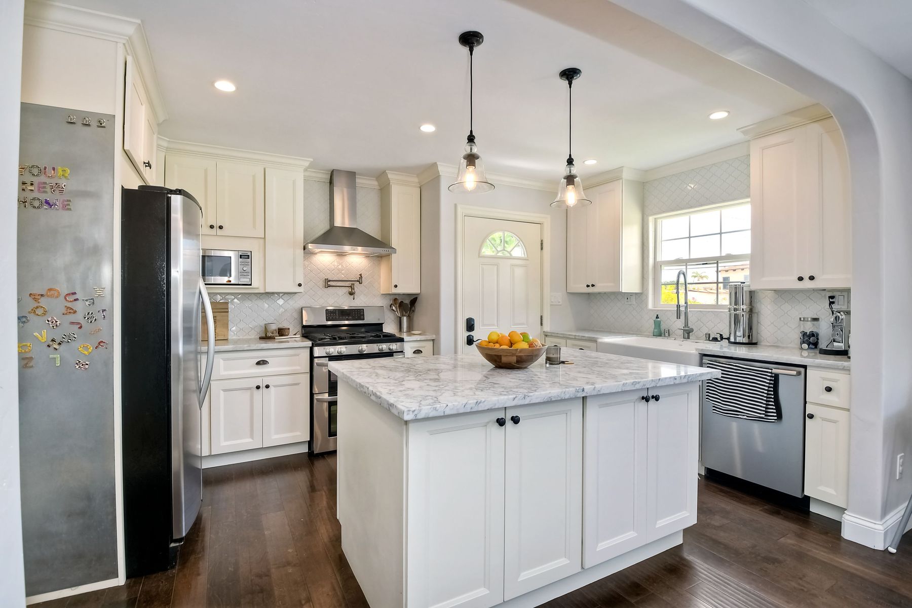 Located in the desirable neighborhood of Plumosa Park. Open plan with detached 2 car garage. Elegant updates in kitchen and bathrooms with beautiful wood floors throughout. This home has a perfect flow with a current feel maintaining the original charm. Light and bright kitchen is the focal point with large eat in island that opens out to dining room and adjoining large living room. Bonus office space or den off the living room. Fire place in master bedroom adds cozy charm. Backyard is a private oasis. Alley access/walking distance to Plumosa Park. Enjoy this serene neighborhood with easy access to Liberty Station, Shelter Island, Downtown and many San Diego beaches.