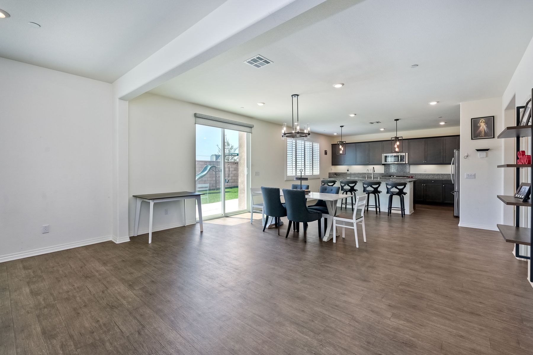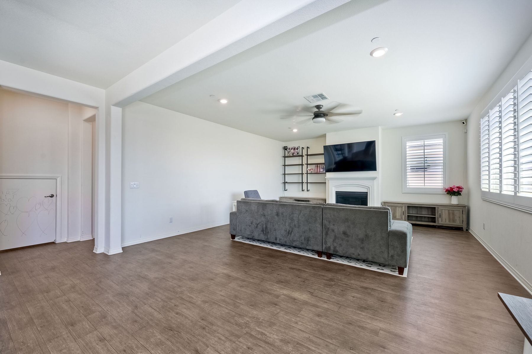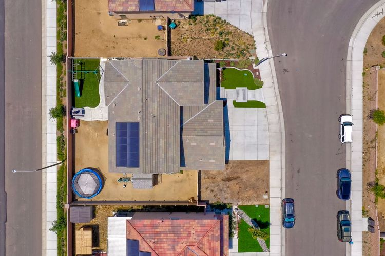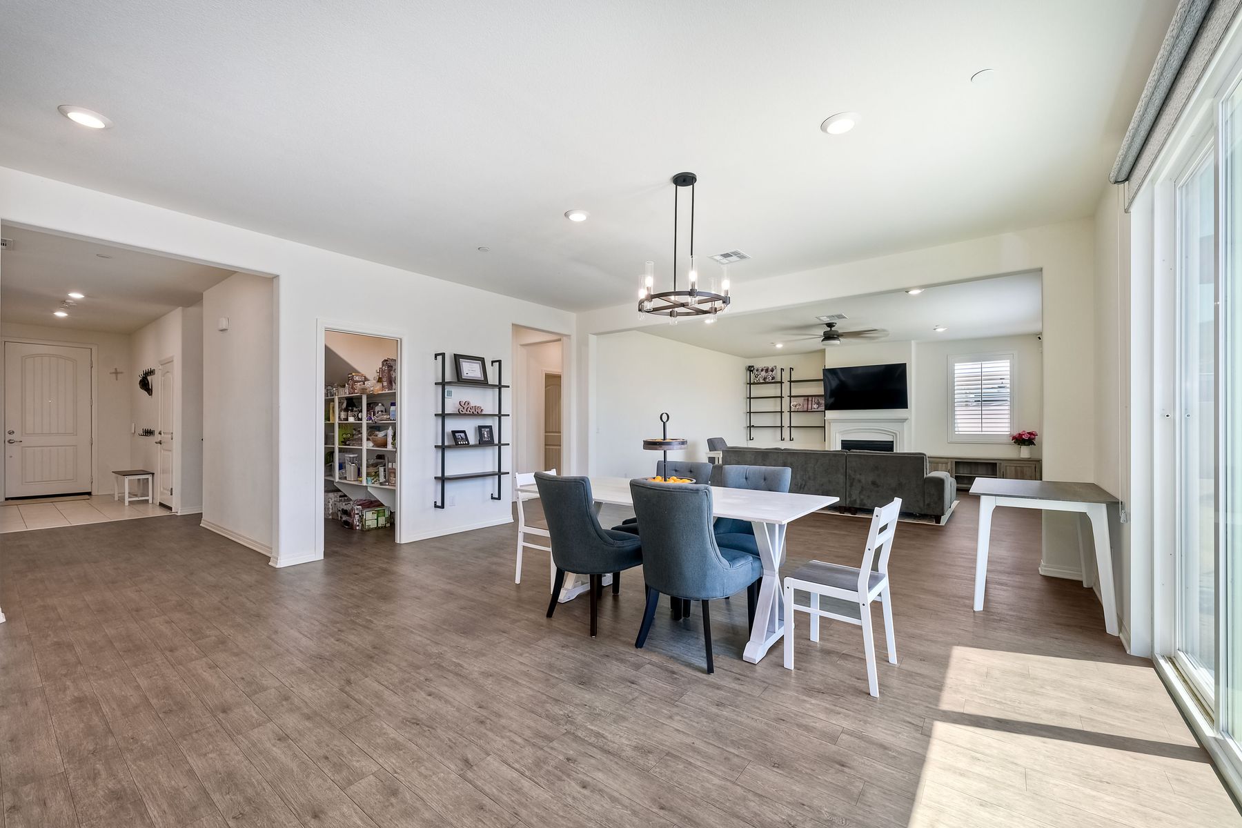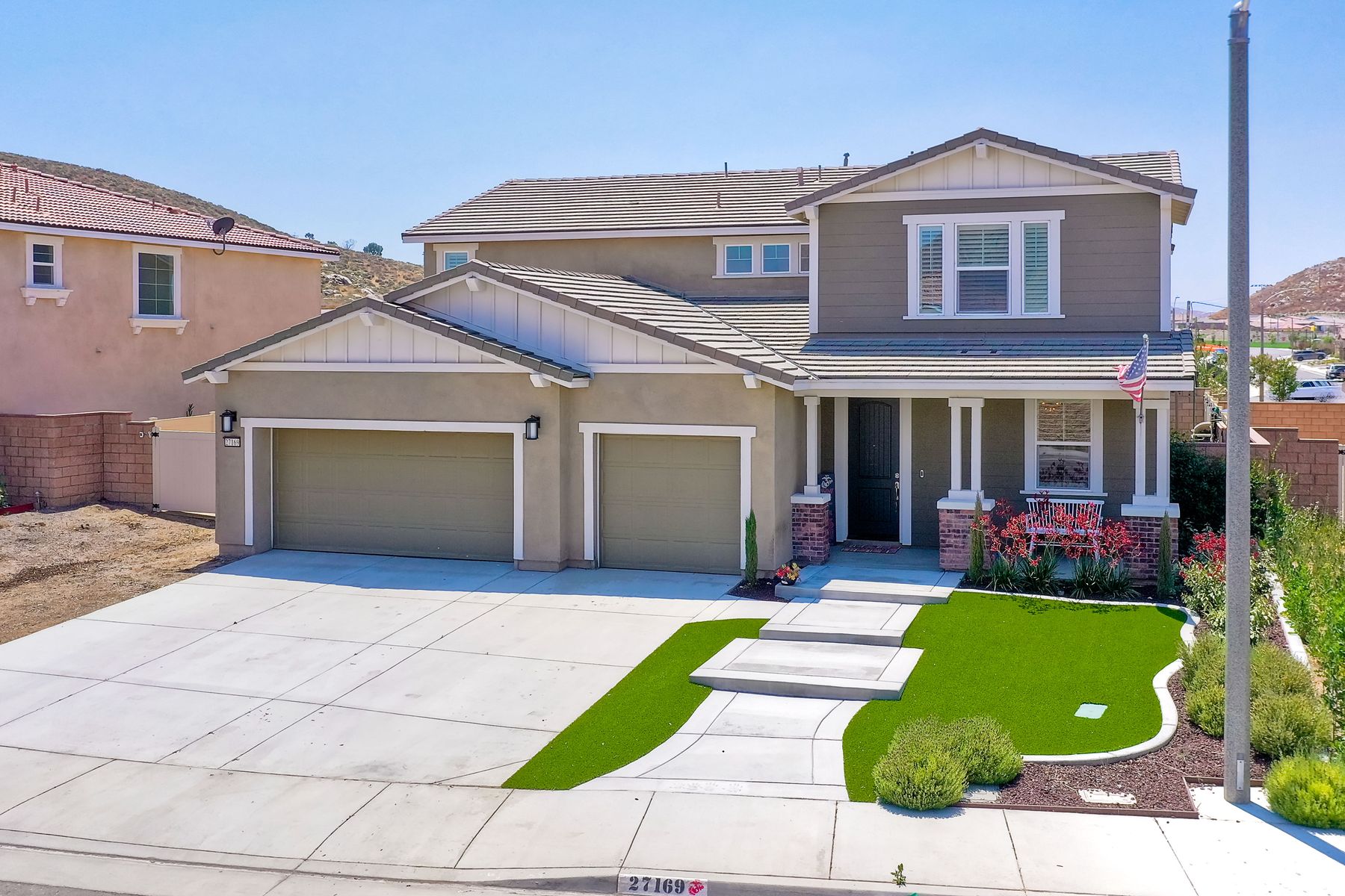 With terrific curb appeal, luxury vinyl flooring, vaulted ceilings, and plantation shutters, this stunning residence offers a bedroom and full bath on the 1st floor, formal dining room, a private office, and loft. The great room delights with a beautiful kitchen, granite countertops, upgraded stainless steel appliances, double ovens, and a large walk-in pantry. The backyard beckons with cement hardscape and turf, ready for BBQs and potential to build out your dream pool. No HOA, solar panels, 3-car garage, room for RV, and close proximity to Remington Park, Boulder Ridge Elementary School, and 215 freeway, this is truly a remarkable home.