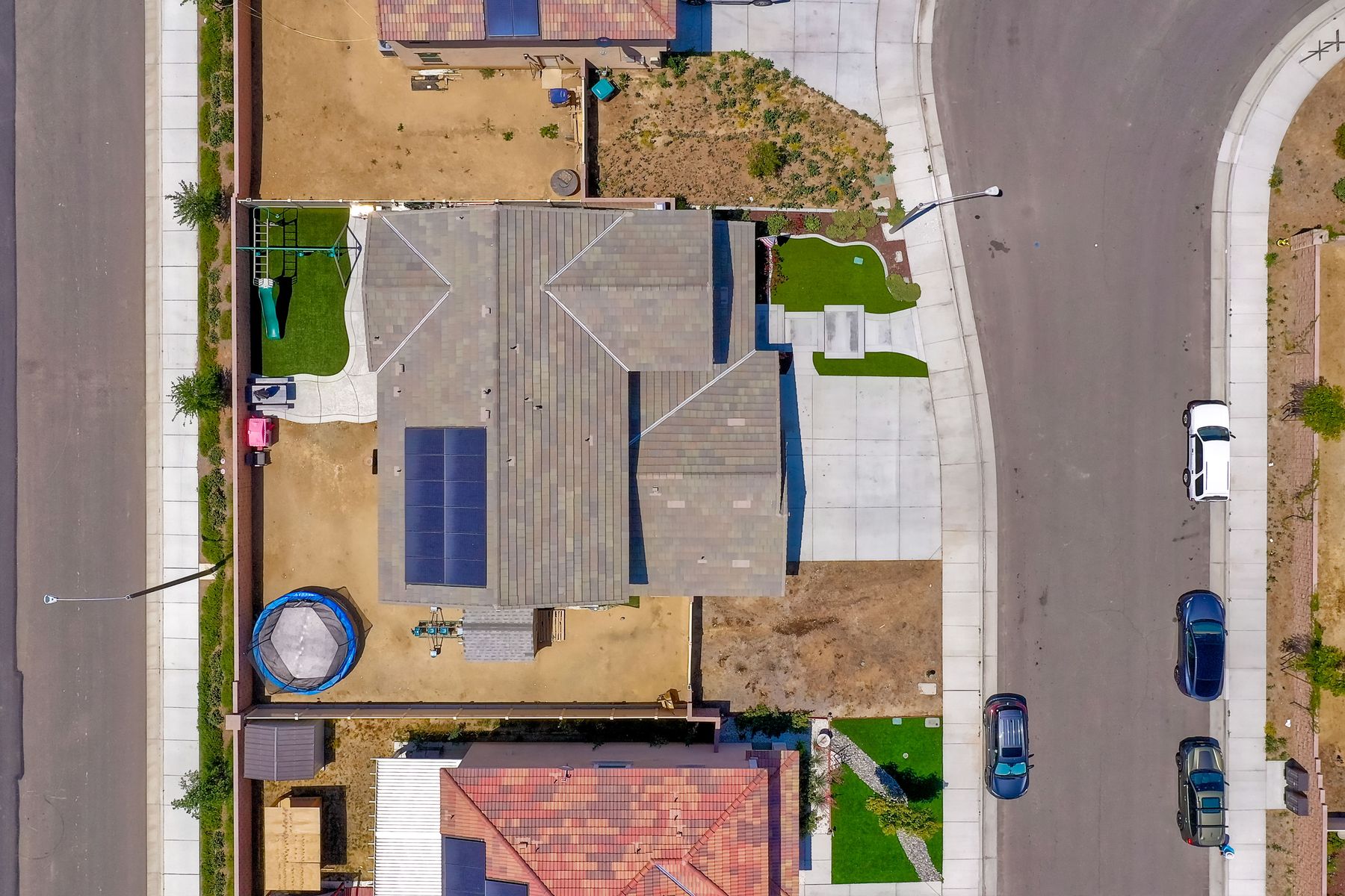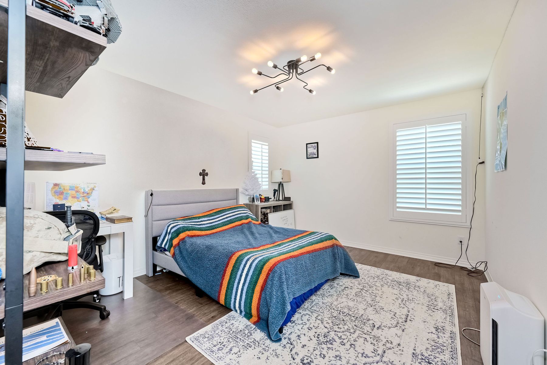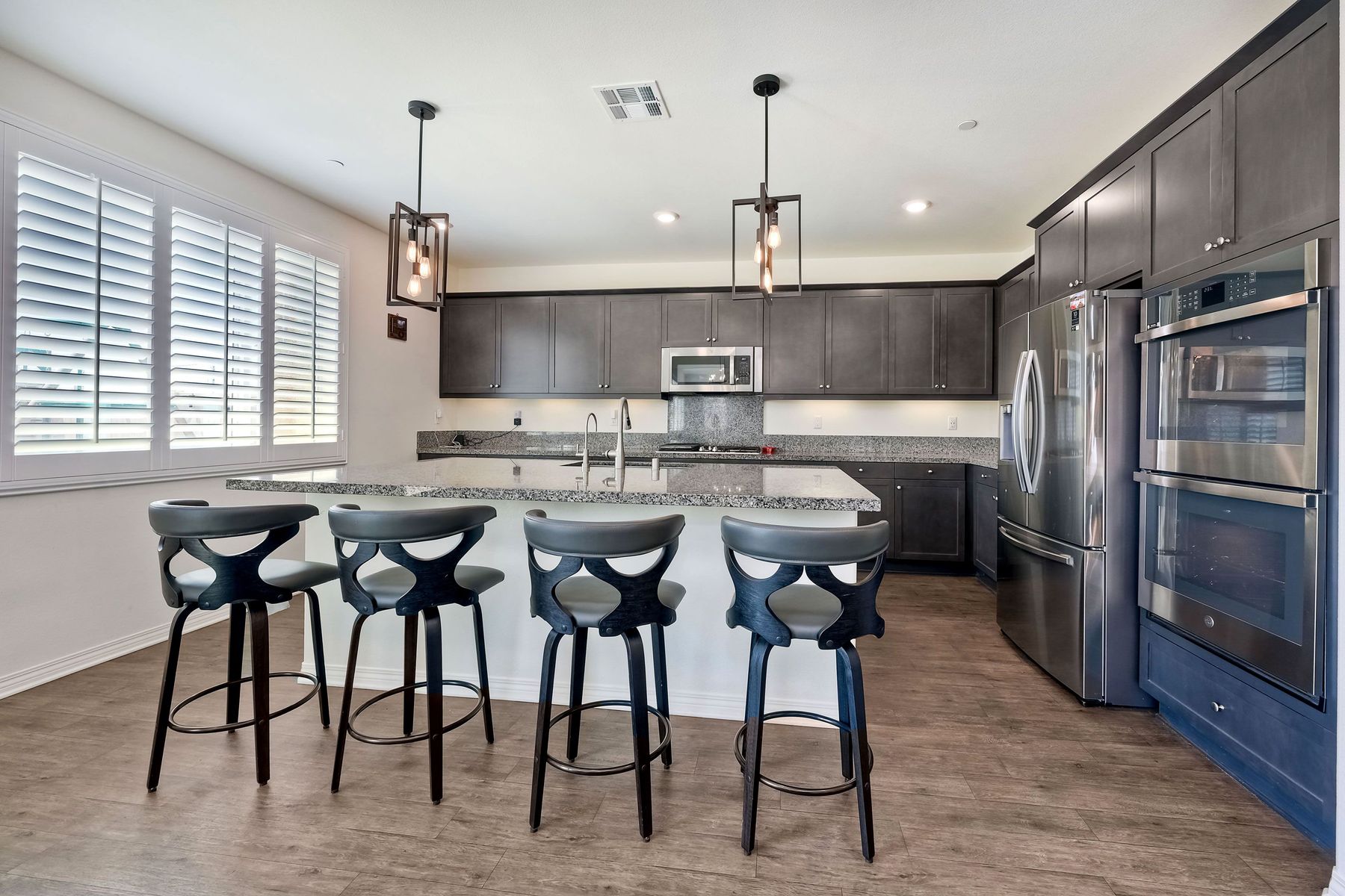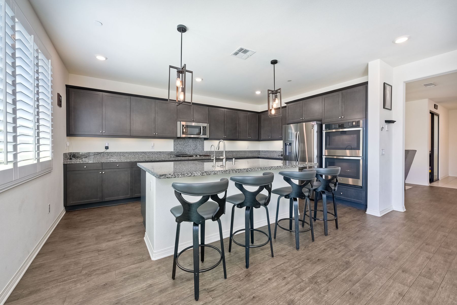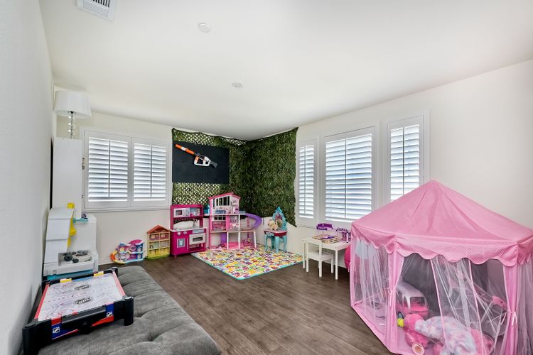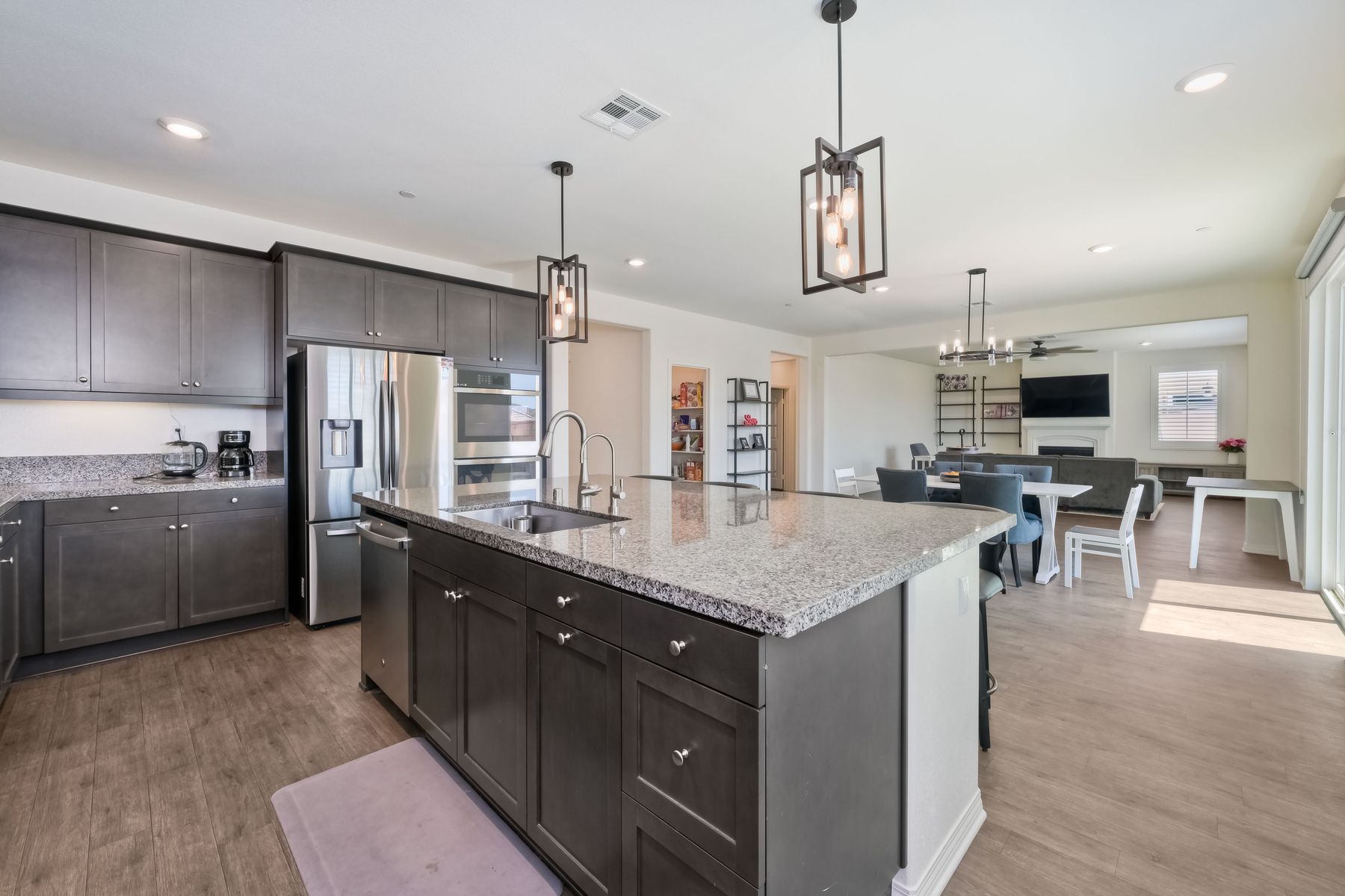 With terrific curb appeal, luxury vinyl flooring, vaulted ceilings, and plantation shutters, this stunning residence offers a bedroom and full bath on the 1st floor, formal dining room, a private office, and loft. The great room delights with a beautiful kitchen, granite countertops, upgraded stainless steel appliances, double ovens, and a large walk-in pantry. The backyard beckons with cement hardscape and turf, ready for BBQs and potential to build out your dream pool. No HOA, solar panels, 3-car garage, room for RV, and close proximity to Remington Park, Boulder Ridge Elementary School, and 215 freeway, this is truly a remarkable home.