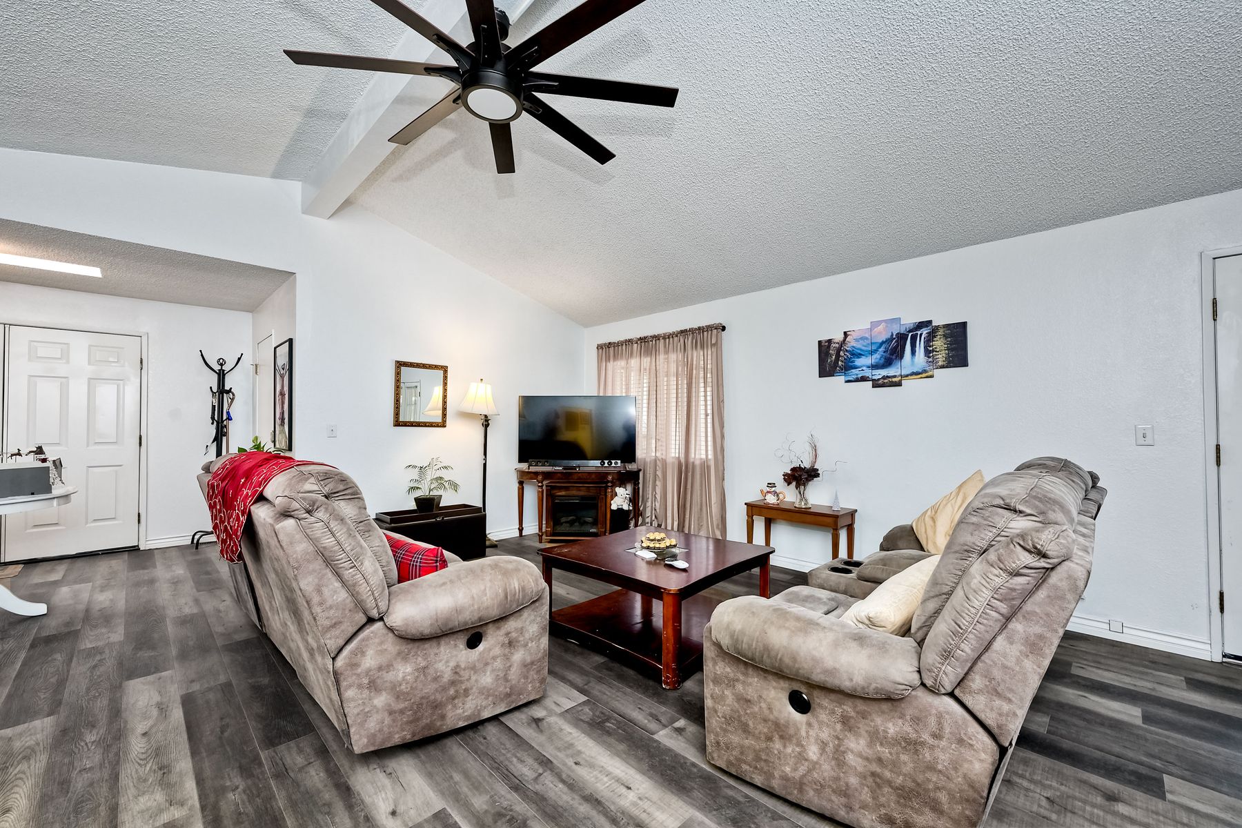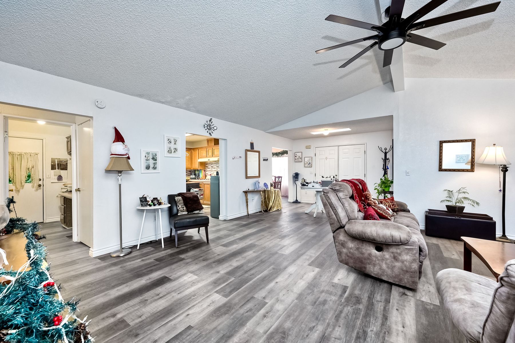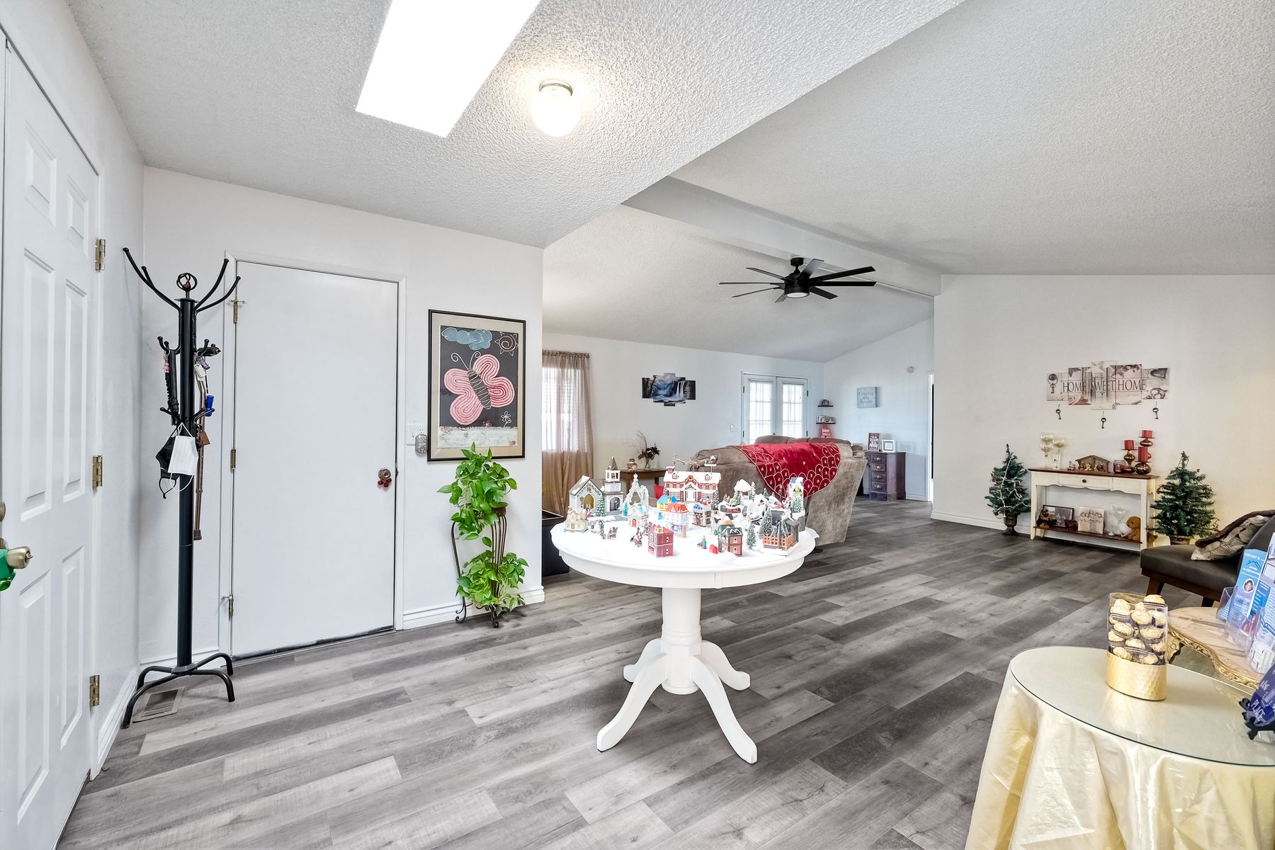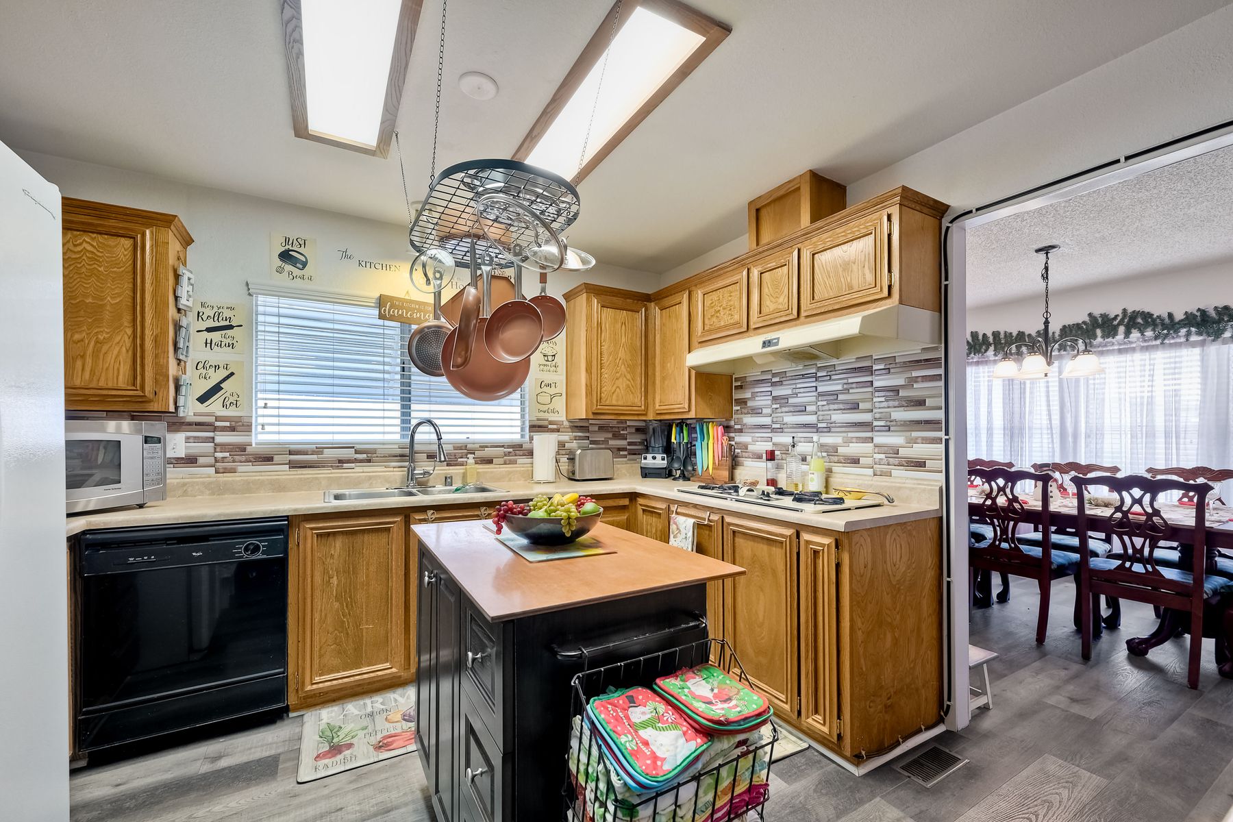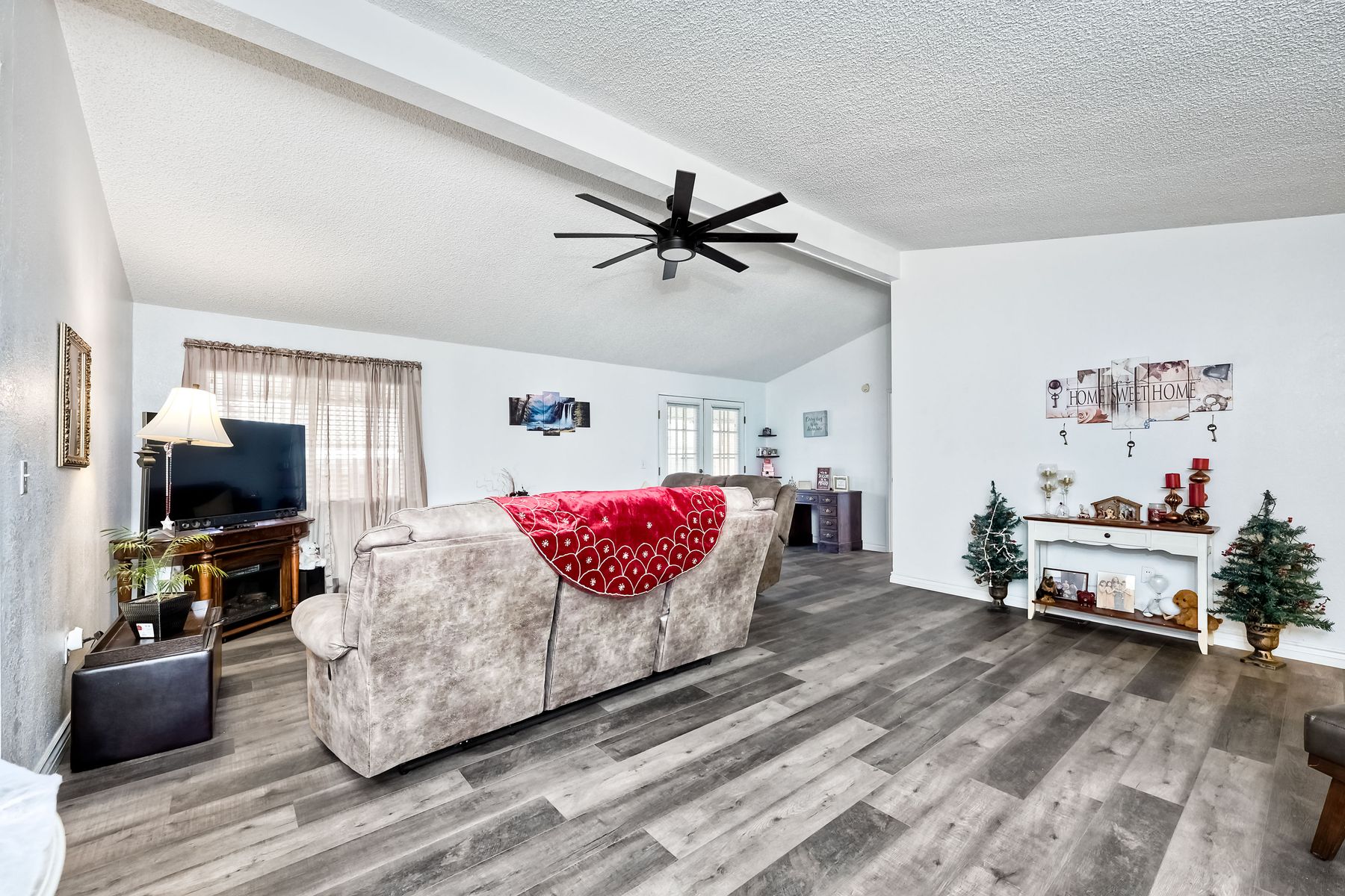 Welcome to Sun Meadows 55+ community. This charming home boasts 1570 Sq. Living Space, 2 Bed/2 Bath, Street Level Entry and No Stairs. The Open Floor Plan shows a welcoming extra Large Living Room, A separate Formal dining room, Vaulted Ceilings, Chandeliers, Ceiling fans and Laminate flooring. Large Walk-in closets, A 2 Car Attached garage with built in cabinets for additional storage space. Stepping through the sliding door leads to a Full Length Covered Patio. All appliances of Stove, Refrigerator, Washer, Dryer and Dishwasher convey. This home has been immaculately maintained. A pet-friendly Community. The Clubhouse amenities include Putting green, Horseshoe pits, Tennis court, Swimming Pool, Gym, Billiard tables, Conference room and Dining hall with Dance floor! This home is Turn key and move in ready.