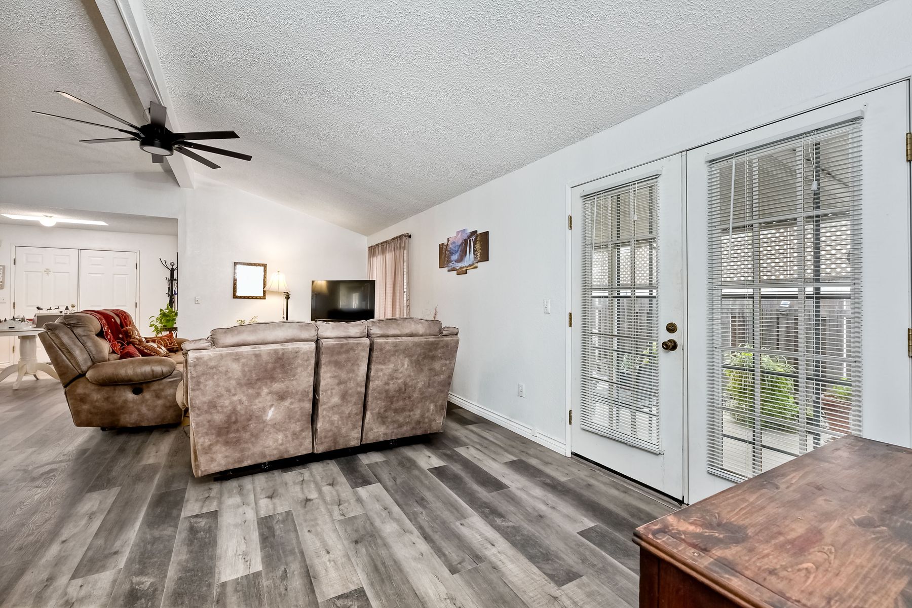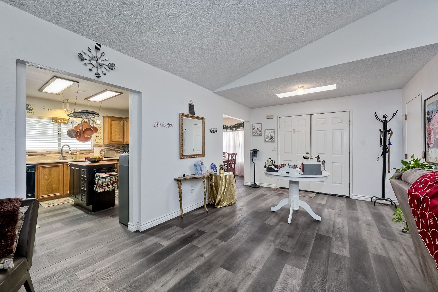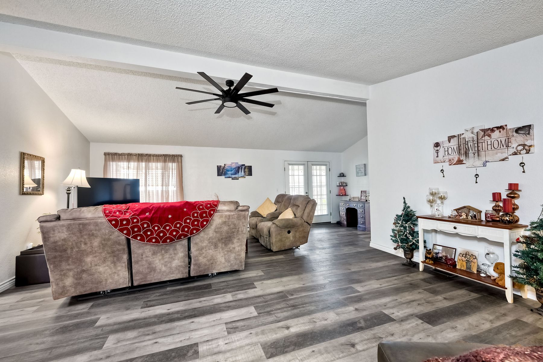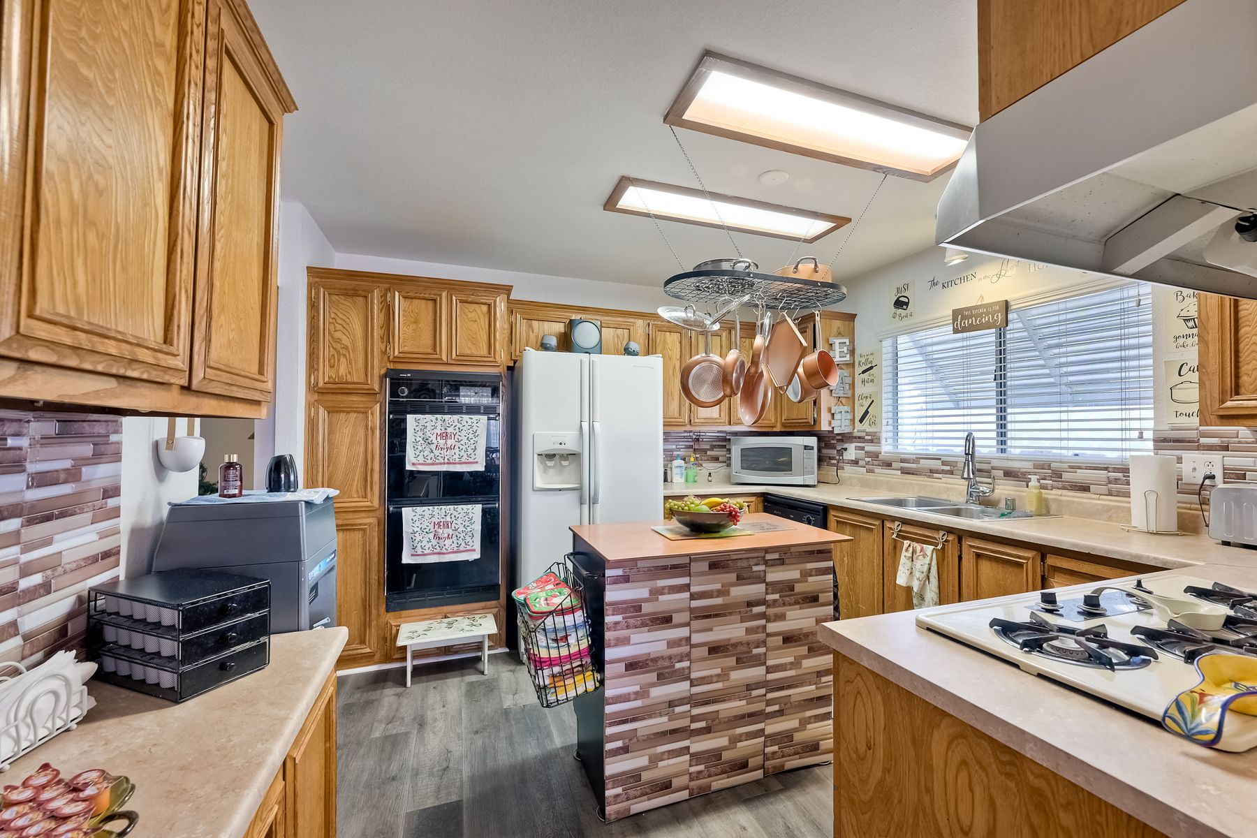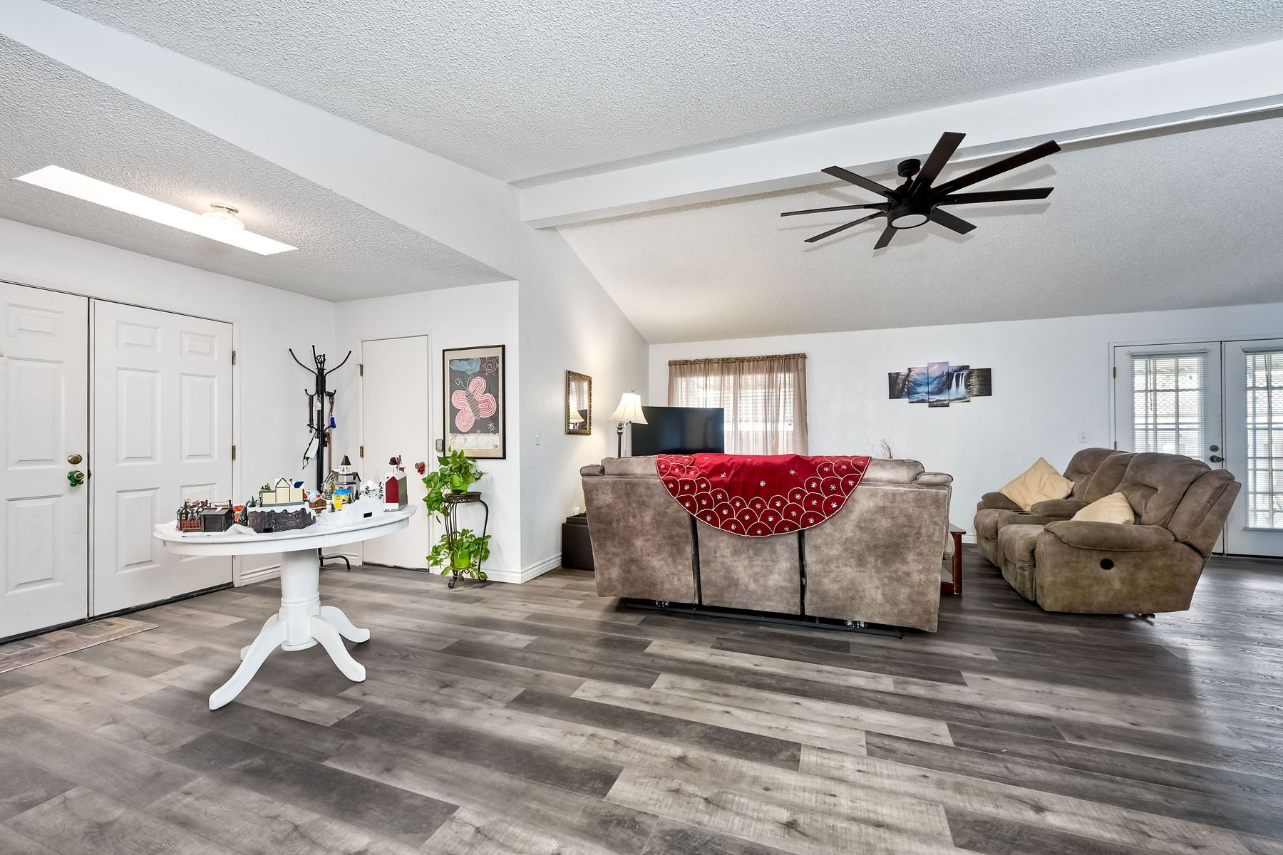 Welcome to Sun Meadows 55+ community. This charming home boasts 1570 Sq. Living Space, 2 Bed/2 Bath, Street Level Entry and No Stairs. The Open Floor Plan shows a welcoming extra Large Living Room, A separate Formal dining room, Vaulted Ceilings, Chandeliers, Ceiling fans and Laminate flooring. Large Walk-in closets, A 2 Car Attached garage with built in cabinets for additional storage space. Stepping through the sliding door leads to a Full Length Covered Patio. All appliances of Stove, Refrigerator, Washer, Dryer and Dishwasher convey. This home has been immaculately maintained. A pet-friendly Community. The Clubhouse amenities include Putting green, Horseshoe pits, Tennis court, Swimming Pool, Gym, Billiard tables, Conference room and Dining hall with Dance floor! This home is Turn key and move in ready.