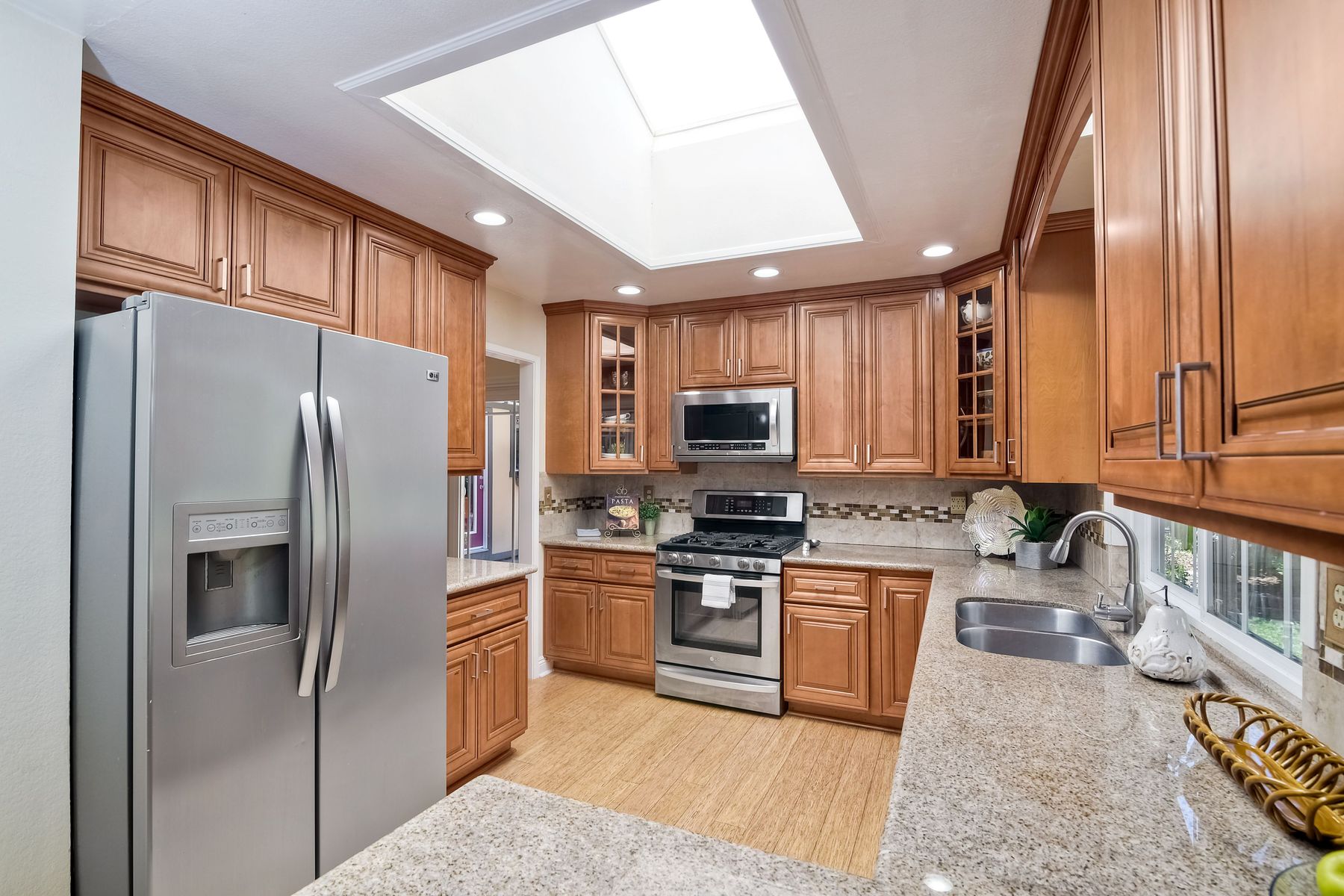 Serene Park Setting, beautifully landscaped, large lot adjacent to natural open space, garden vignettes & fruit trees. 4 BR/3 full BA, 2190 s.f. home w/a bed & full bath down. 3 add'l bedrooms upstairs--one has a private loft. Light & bright formal Living & Dining areas w/large windows showing the gardens. Work@home in the exterior home office (not part of SF). Kitchen features beautiful backyard views, granite counters, stainless applcs and flows to the Nook & Family Rm w/ fireplace. No HOA/Mello Roos. Beautiful home in the sought-after coastal city of Carlsbad. Open and tropical feel throughout. This home sits on a private large lot, surrounded by nature, truly an oasis in the neighborhood. Garden vignettes, fruit trees, tropical plants--all in a tranquil setting. The home feels like being at a peaceful resort with Birds, Butterflies, and nature beyond. If you are looking for privacy and indoor / outdoor living, this is your place. You will love the Exterior Office/Casita (no plumbing) situated in the garden area next to the fire ring. A new central AC unit, upgraded flooring and other upgrades are featured throughout this home. Don't miss this one. It is move in ready! Visit the Matterport floor plan walk through and virtual tour including aerials to get a full tour of this home. Located convenient to Carlsbad beaches; restaurants; beach towns; and local shopping and highways. Sage Creek HS & Calavera Schools.. Neighborhoods: Carlsbad Equipment: Dryer, Washer Other Fees: 0 Sewer: Sewer Connected Topography: LL,SSLP