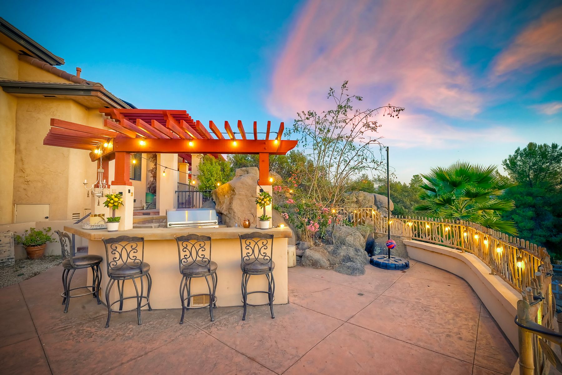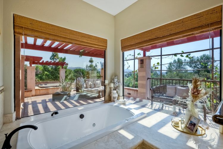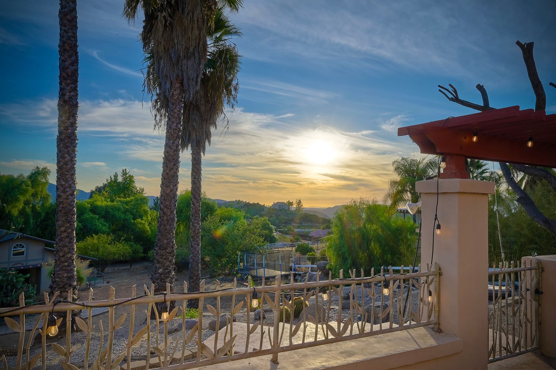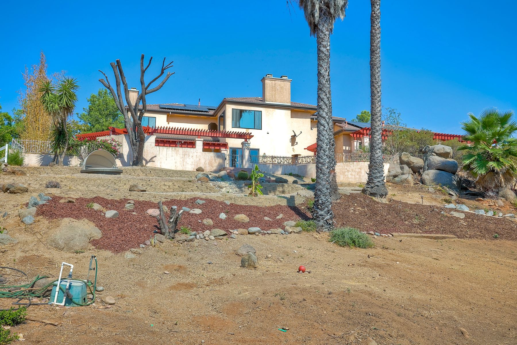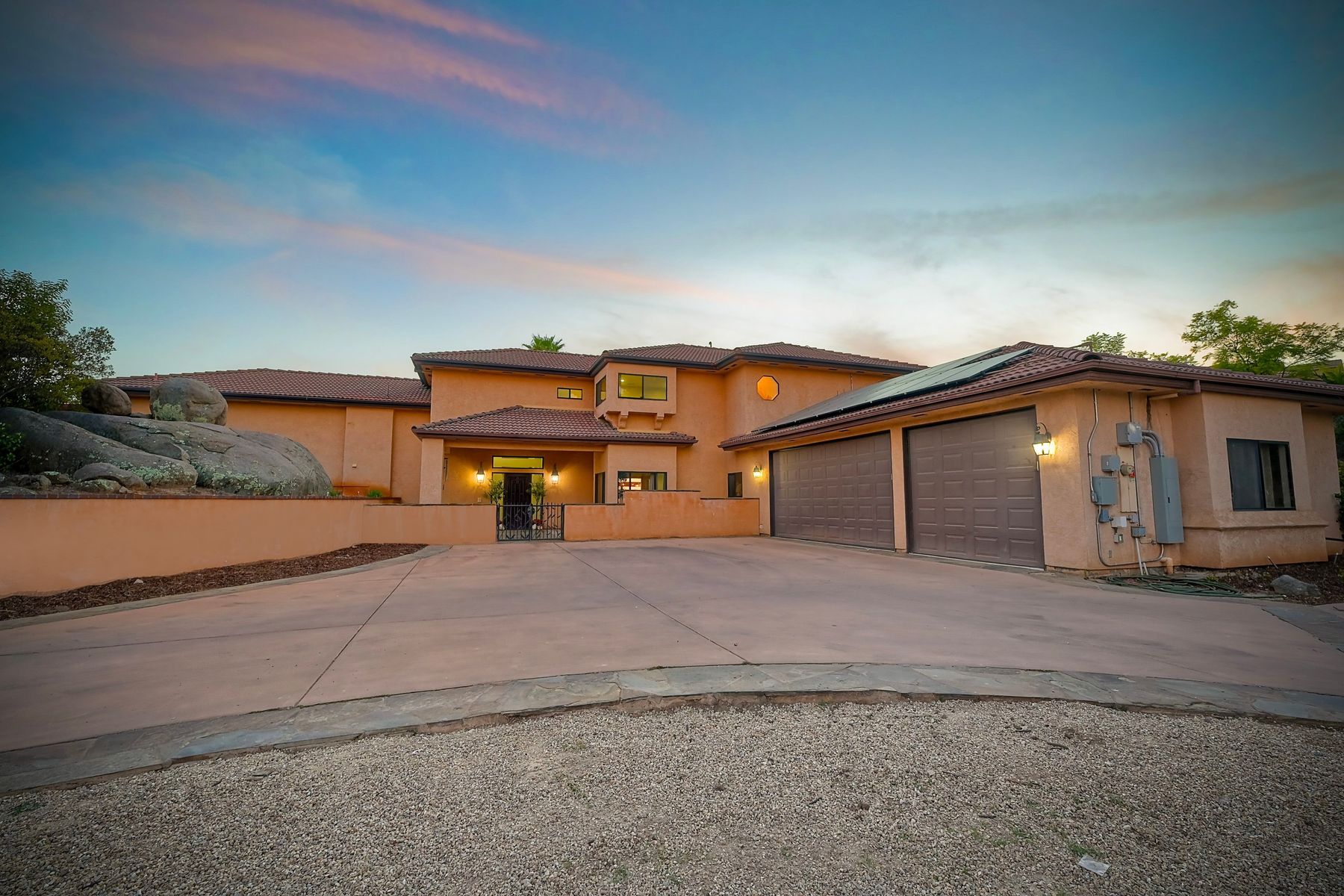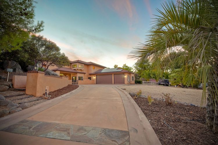 Well maintained custom home in highly sought after guarded, gated community of Rancho Palo Verde. This 5 bed 4.5 bath home sits on over 2 acres with a private 2 stall barn, horse arena and orchard. Property features custom cabinets throughout the home. Private veranda with spa off the primary suite with heated floors in primary bath. Built in BBQ in the larger outdoor entertaining area, outdoor fireplace, 2 Catalina doors, 2 living rooms, 5 fireplaces, 3 car garage, solar, circular driveway and even its own walking paths!! Well maintained custom Tuscan home in highly sought after guarded, gated community of Rancho Palo Verde, with access to Palo Verde Lake! This 5 bed 4.5 bath home sits on over 2 acres with a private 2 stall barn, horse arena and orchard. The orchard has mature lemon, lime, orange and pomegranate trees. The home features custom cabinets in the kitchen, both living rooms and primary bedroom. There is a private veranda off the primary suite with its own remote control spa. Heated tile floors in the primary bath, along with his and her walk in closets. Also, a built in BBQ with sink in the larger outdoor entertaining area, along with fans and an outdoor fireplace. Two Catalina doors open the living room to the outside. There are 2 living rooms, one downstairs and one upstairs, both with their own fireplace. Amazing views to Point Loma and Coronado from all over the house. Also a 3 car garage, circular driveway, 47 solar panels, and even its own walking paths through the property. And you have Palo Verde Lake access!! This home has it all!!